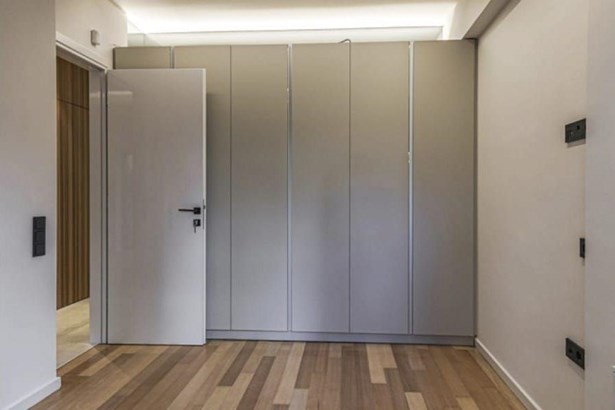 In addition to the bedrooms, the apartment also has one bathroom and an additional WC. It is equipped with natural gas heating and cooking, which offers a more efficient and cost-effective way of heating and cooking compared to other methods. The property also features an alarm system and cameras for added security.
