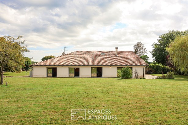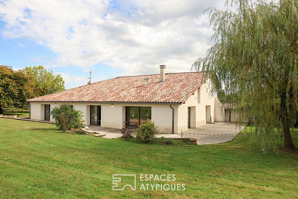 Ideally located between Bourg-en-Bresse and Macon, this renovated old building seduces with its generous volumes and exceptional brightness, in the heart of a rural environment of 2.6 hectares of land.