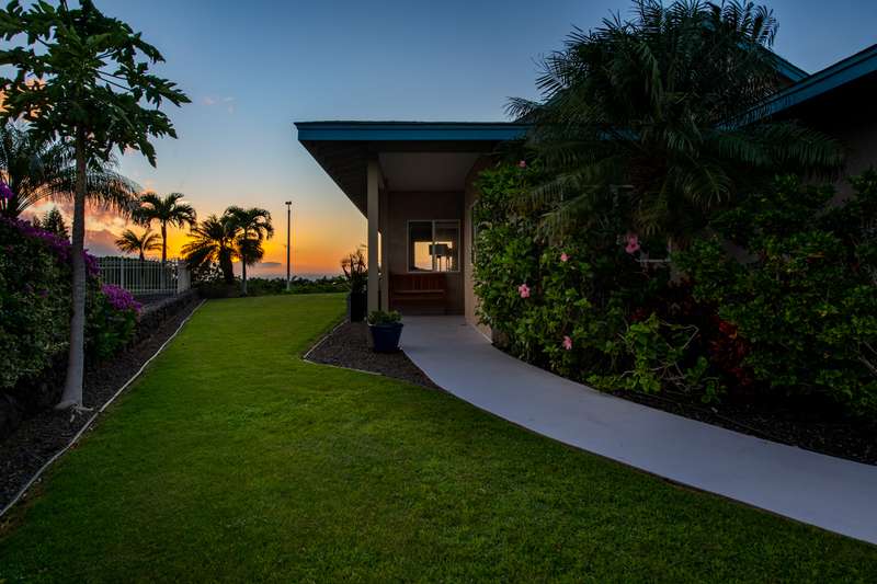 Located in Waikoloa Village, this Sunset Ridge home sits on a quiet cul-de-sac surrounded by wide streets and sidewalks. Residents enjoy access to the 18-hole Golf Course, tennis courts, and a community pool, adding to the relaxed lifestyle of the neighborhood.