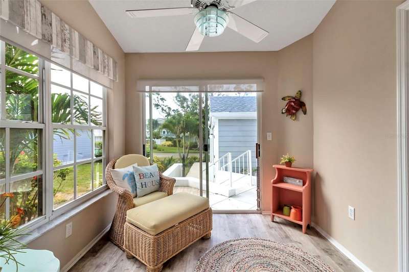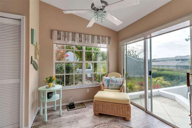 Coastal living at its best. Located in a gated community, this 2/2 villa features open spaces, high ceilings, a den, and a sunny Florida room! The owners' suite features windows overlooking the preserve with a huge walk-in closet, additional storage, a double sink vanity, and an enclosed shower. The kitchen and appliances have been totally updated. The guest bedroom overlooks the front courtyard, and the bath includes a beautiful vanity with a ceramic tile floor and backsplash. Occupied just three months a year, it includes engineered floors, updates throughout, and endless opportunities to enjoy your home. The owners have thoroughly redecorated every room and corner. The pictures accurately demonstrate the unique updates and floor plan. Going room to room, you will feel right at home- open floor plan, lots of storage, and a deck overlooking the preserve. Beautifully decorated, with lots of unique extras. There are additional bonuses- a two-car garage, indoor washer and dryer, nice-size pantries, and lots of closet space.There are two pools- one close to the villa and the other is part of the clubhouse, which is the heart of the community. An area for kayak storage and tennis/pickleball courts, luncheons, and parties.Location is the key to any real estate venture and this is one of the best. Close to Robinson Preserve, the Islands of Anna Maria and Longboat Key, great fishing, boating, and golf are all within driving distance. Dining? The possibilities are endless. Restaurants overlooking the water, small cafes, and fine dining are all available and close by. Don't miss the opportunity to purchase this beautiful villa-coastal living at it's best. ALL INFORMATION BELIEVED TO BE ACCURATE BUT NEEDS TO BE VERIFIED.