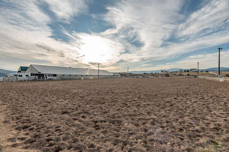 Welcome to the Triple Take Arena and Event Center! Opportunity abounds with this equestrian facility! The property consists of a 26,000 sqft indoor arena with a 40' x 204' hay shed, a 30' x 50' vet building, 10,640 sqft of high end warehouse space (radiant floor heating!) with additional 1/1 apartment, a 2bed/1bath manufactured home, and more. The 150' x 250' outdoor arena, a 60 x 120 dressage arena and 21 paddocks, 4 pastures and 4 other holding pens with shelters sit on 27 acres in 2 parcels with access off of Morning View Drive and Hwy 2 Exposure. The indoor arena features 28 indoor stalls, a tack room, a viewing room, kids play room, bathrooms as well as laundry and extra separate space for whatever you may envision.