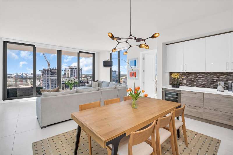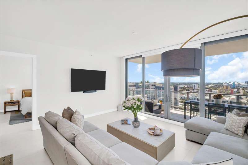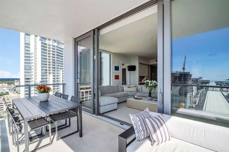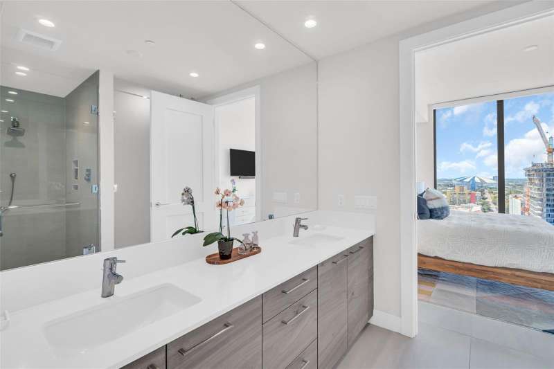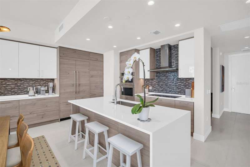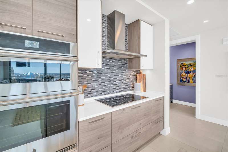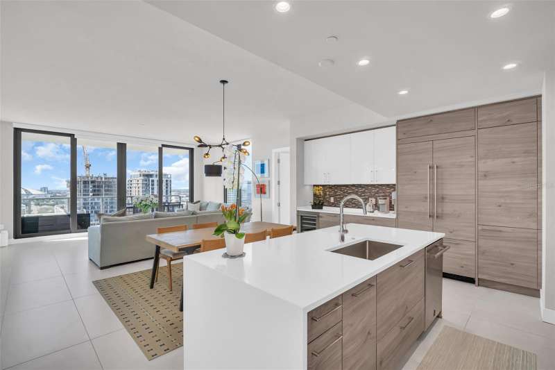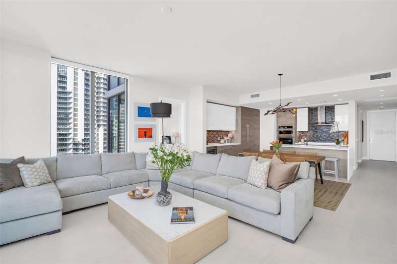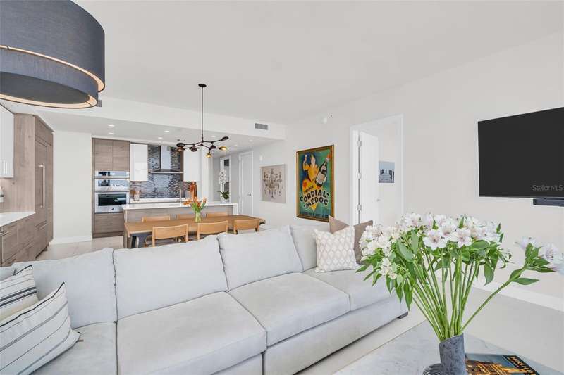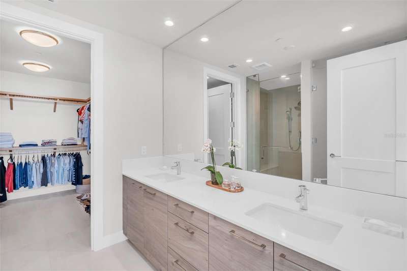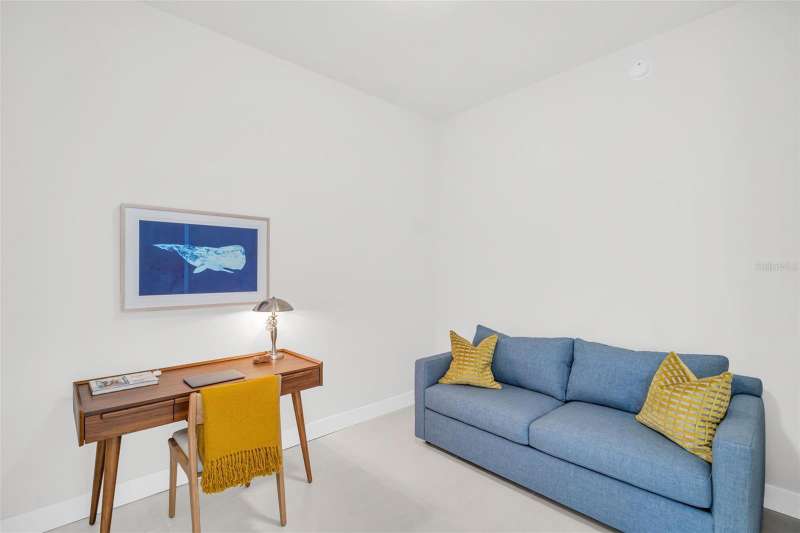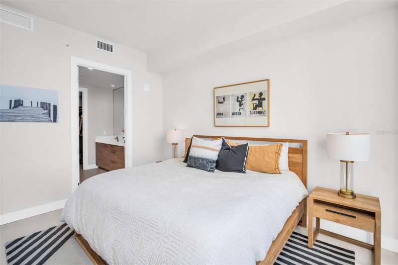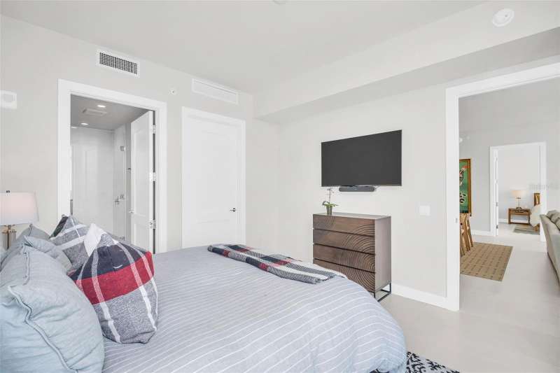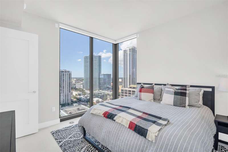 Experience luxurious downtown living high above the city in this stunning 2-bedroom + den, 2.5-bath residence at Saltaire St. Petersburg. Spanning 1,663 square feet, this south-facing condo captures sweeping views from Tampa Bay to the Gulf of Mexico, offering an ever-changing backdrop from sunrise to sunset. Inside, the open-concept layout is filled with natural light and designed for both comfort and sophistication. The gourmet kitchen features sleek cabinetry, premium appliances, and an expansive island perfect for entertaining. The primary suite is a private retreat with direct balcony access and unobstructed bay views, complemented by a spacious walk-in closet and a spa-inspired ensuite bath. The guest bedroom also offers its own walk-in closet and private bath, while the versatile den is ideal for a home office or reading nook. A well-appointed laundry room and a convenient powder bath complete the thoughtful layout. This home includes two coveted parking spaces and a climate-controlled storage unit, ensuring effortless living. Saltaire's resort-style amenities are unmatched, featuring a 7th-floor pool terrace with panoramic vistas, state-of-the-art fitness center, elegant club rooms, and a dedicated dog park. With the security of a builder's warranty and 24-hour concierge service, every detail of this residence has been curated for ease, luxury, and peace of mind. Perfectly situated in the heart of downtown St. Petersburg, you're just steps from waterfront parks, world-class dining, boutique shopping, and the city's vibrant arts and entertainment scene. This is modern coastal living at its finest, welcome home to Saltaire.