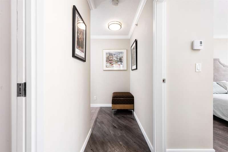 Welcome to Coopers Lookout, a standout residence in Vancouver’s coveted neighbourhood. This northwest-facing Jr 2Bed corner unit offers a bright, open layout with expansive windows and refined Euro-style finishes, including granite countertops, stainless steel appliances, laminate flooring throughout. Whether you're a young professional seeking a vibrant urban lifestyle, an investor looking for a high-demand low maintenance property, this unit delivers. Residents enjoy exclusive access to Esprit City Club’s resort-style amenities: a fully equipped gym, yoga and Pilates studio, two ten-pin bowling lanes, a Hollywood-style theatre, and a gourmet kitchen ideal for entertaining. Just steps from the seawall, the location invites an active outdoor lifestyle. This is city living at its best.