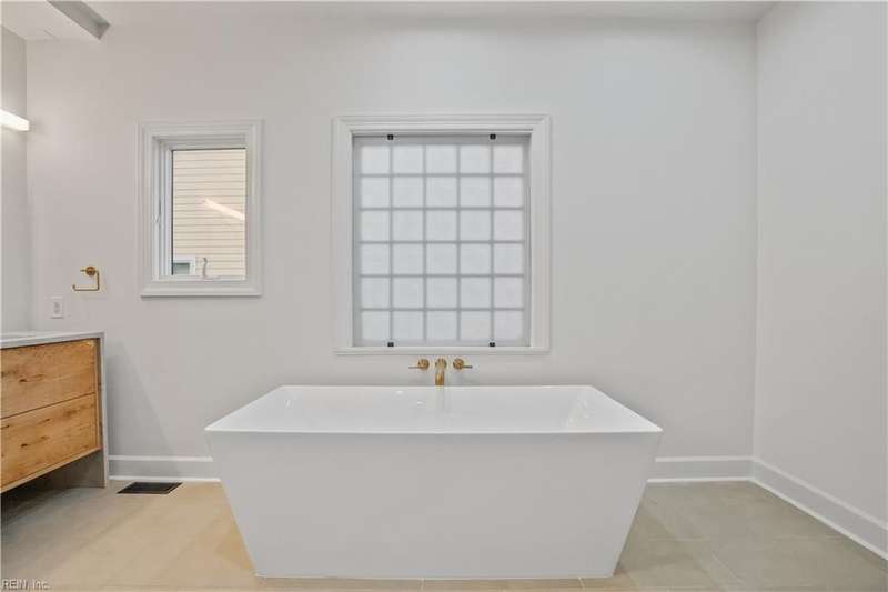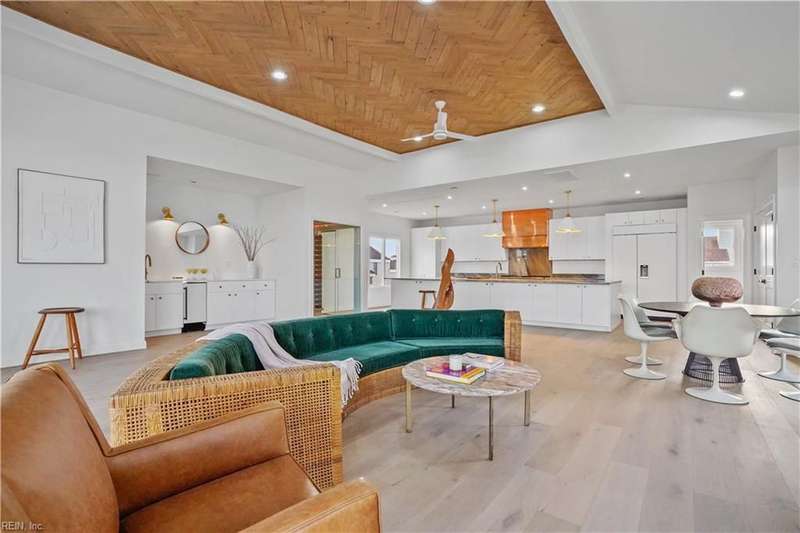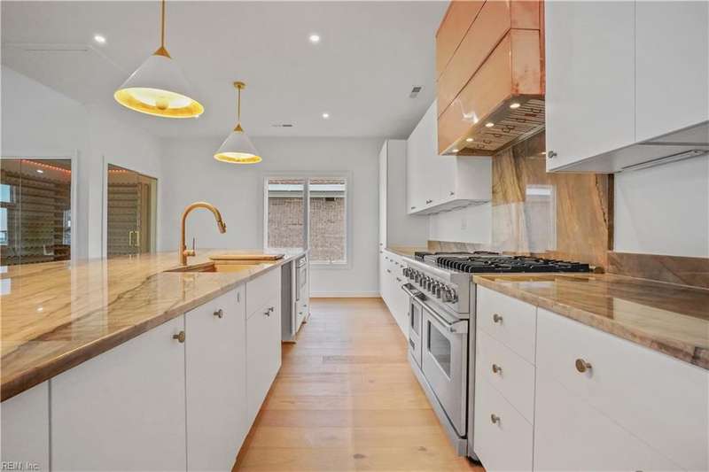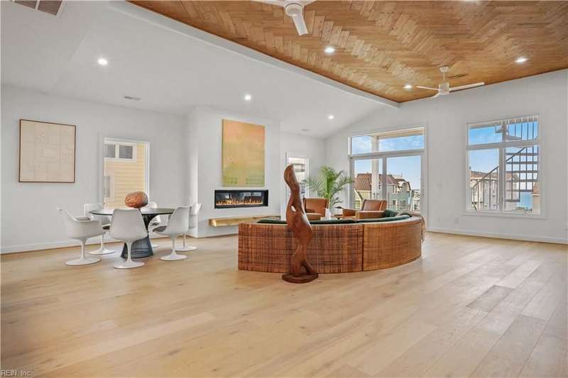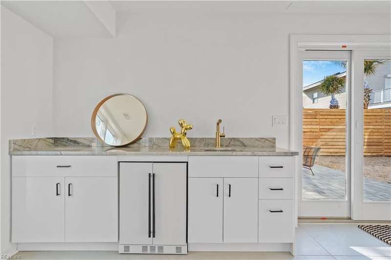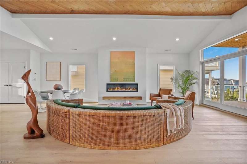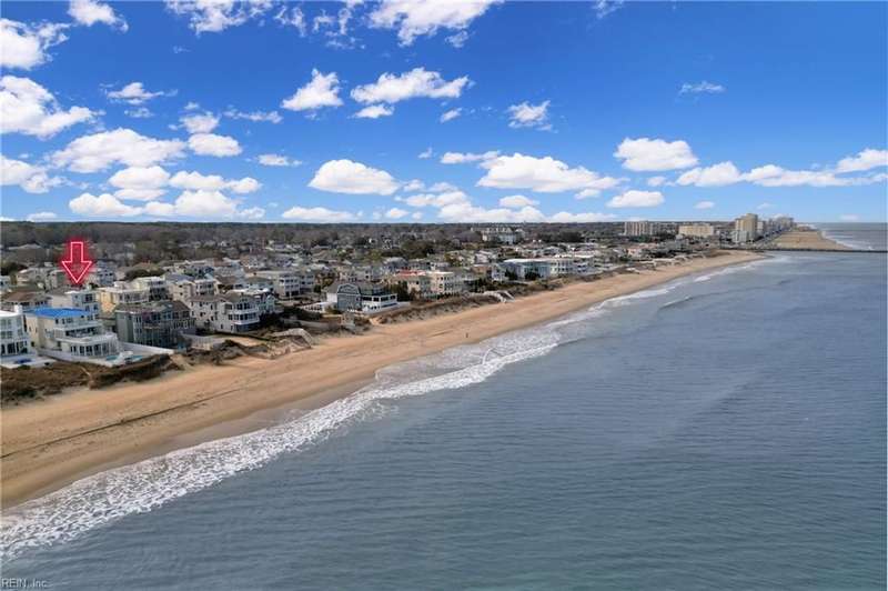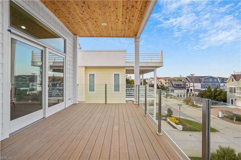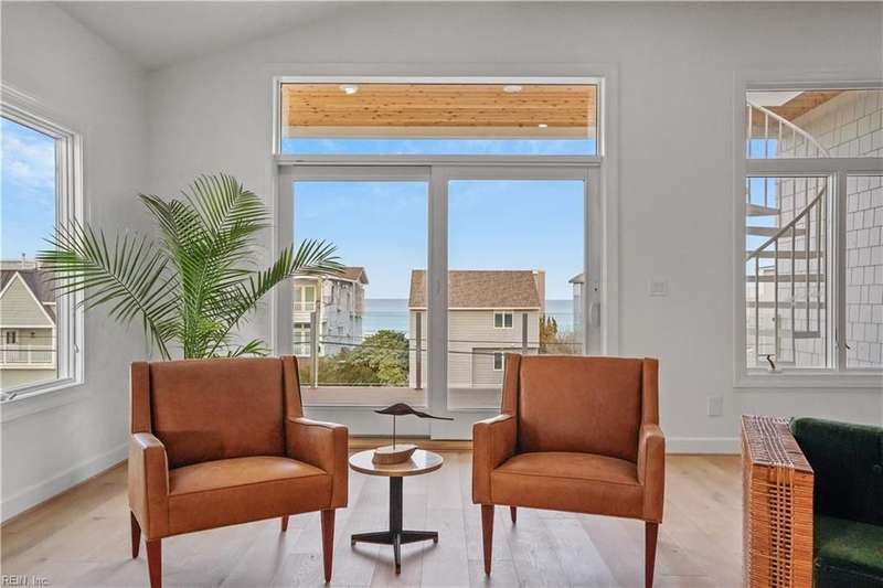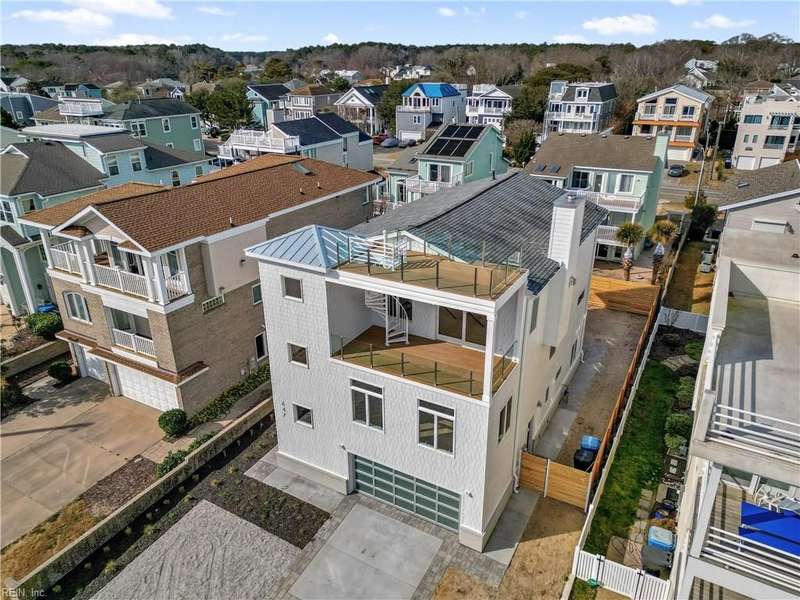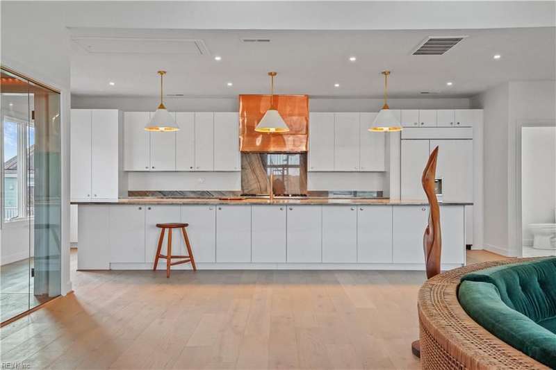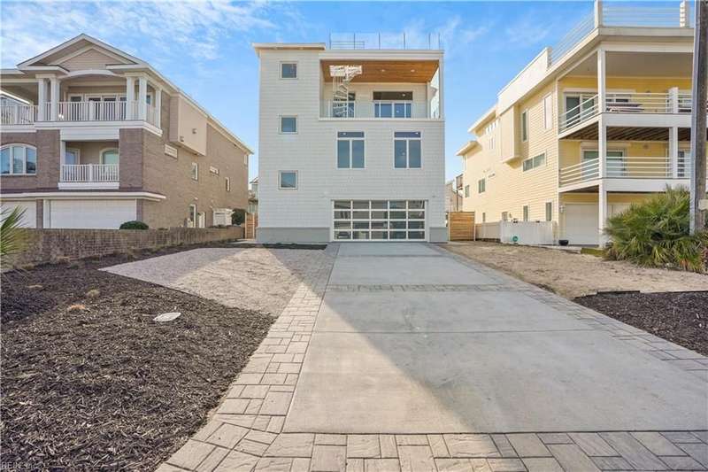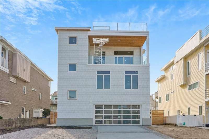 Completely renovated, modern, coastal dream house w/ ocean views. This 5 bedroom, 3.5 bath, semi-oceanfront property was designed for inspired living: open concept, high ceilings, under-lit quartzite bar, 192 bottle wine room, 19 ft quartzite island, custom copper hood, designer light fixtures, open stairway w limestone treads, modern gas fireplace, elevator ready, white oak engineered hardwood floors, modern exterior glass railings, 1st floor bedroom/rec room w bar, huge walk-in primary closet, primary bath XL soaking tub w custom double vanity, large balcony w ocean views, rooftop crows nest, floating stone sink in powder bath, herringbone wood detail on 3rd floor ceiling, 48" Viking Double Oven gas range, Sub Zero paneled fridge, new Hardie siding, new tankless water heater, new 3 unit HVAC and much more. Prepare to be wowed!!