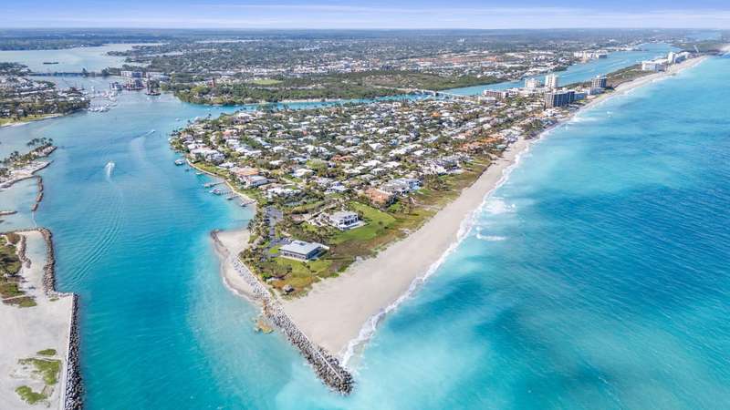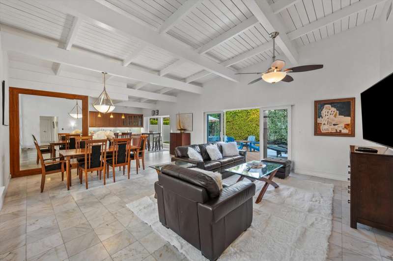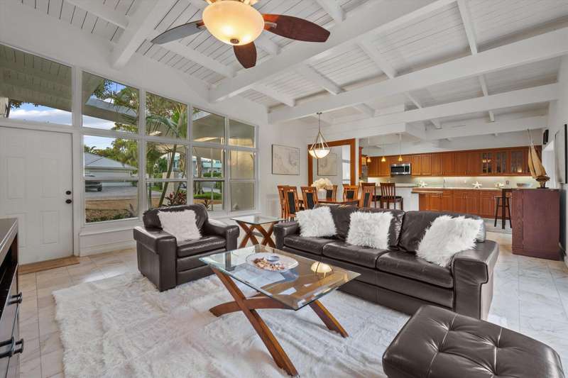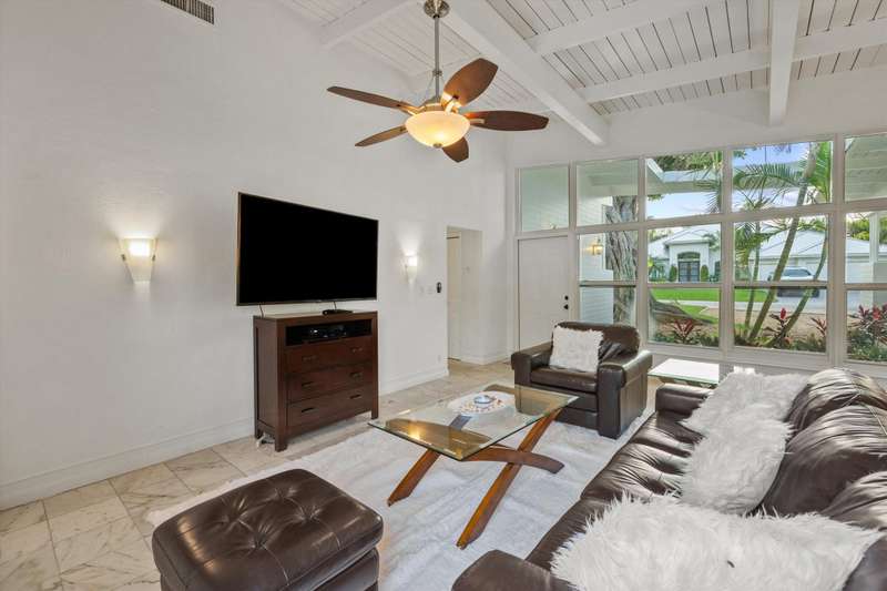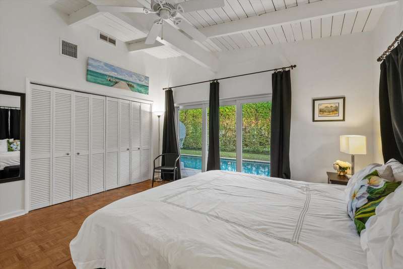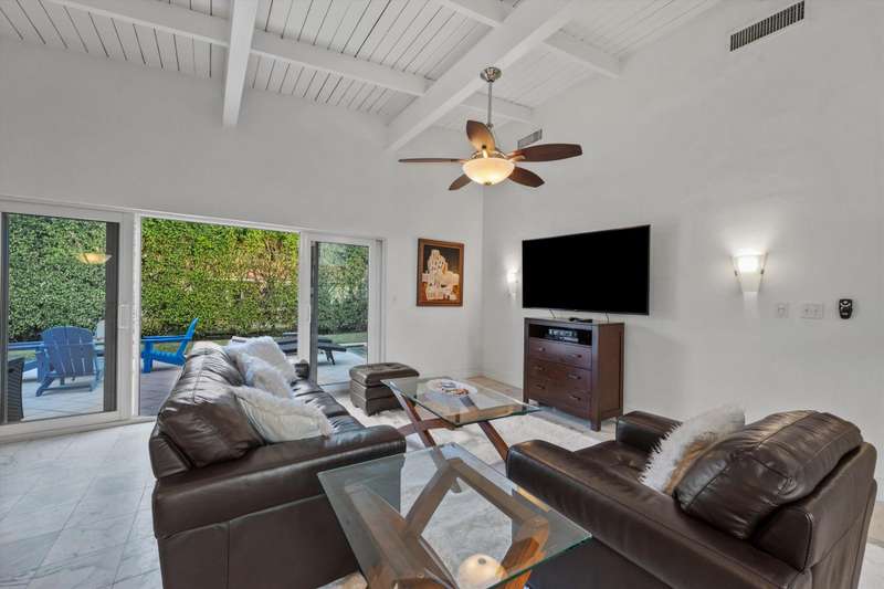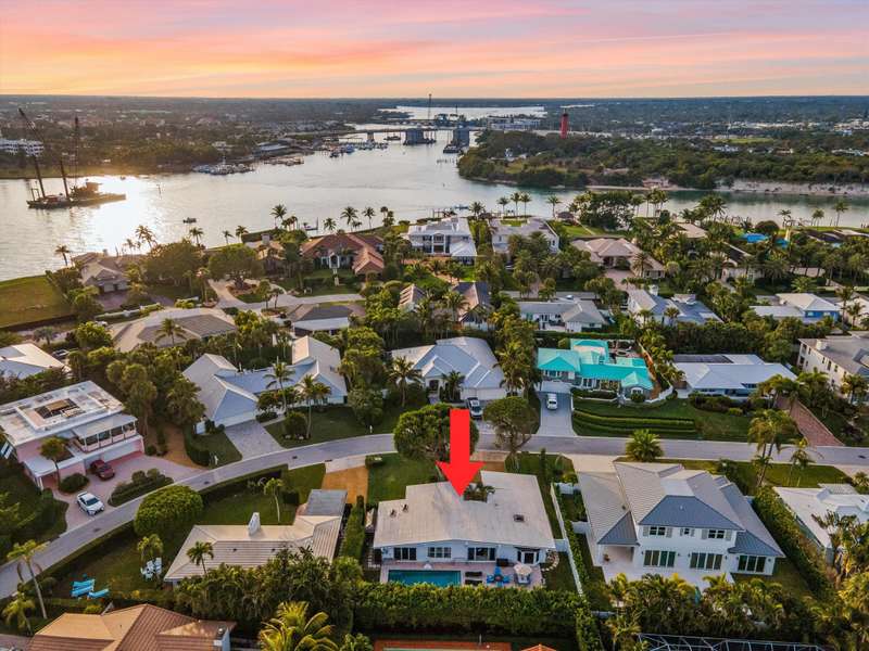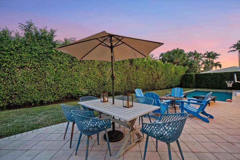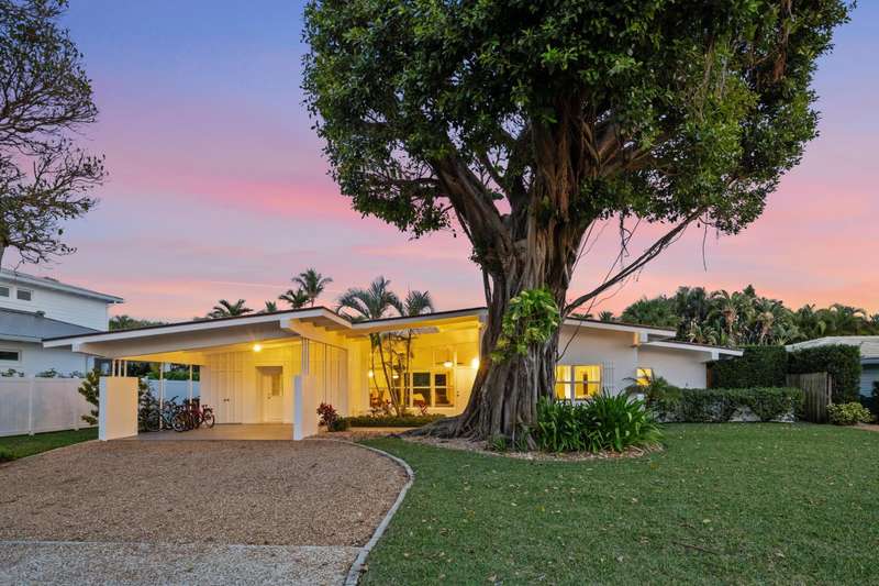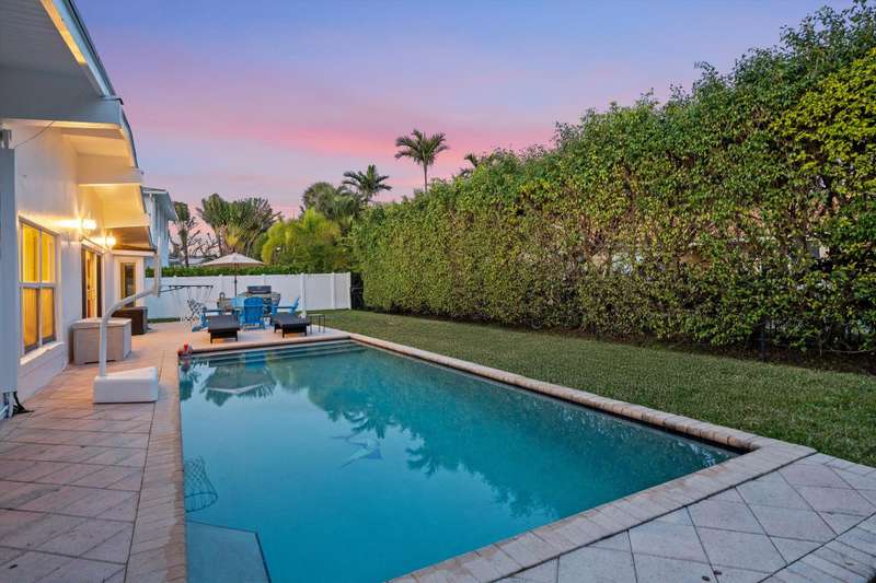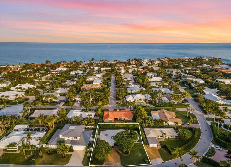 Just steps from the private, secured beaches of Jupiter Inlet Colony, this one-level Mid-Century coastal retreat sits on a prime interior lot, offering both charm and opportunity. Fully furnished and turnkey, this CBS-constructed home features 3 bedrooms, 2 baths, and an open floor plan where the kitchen seamlessly connects to the dining and living areas. With soaring volume ceilings, exposed beams, and all-impact windows and doors, the home is designed for both style and security. Outside, a lushly landscaped backyard oasis awaits, complete with a private pool enveloped by greenery. Offered at land value and sold as-is. This property presents a rare chance to build new or renovated in one of the most coveted beachside communities.