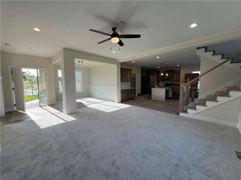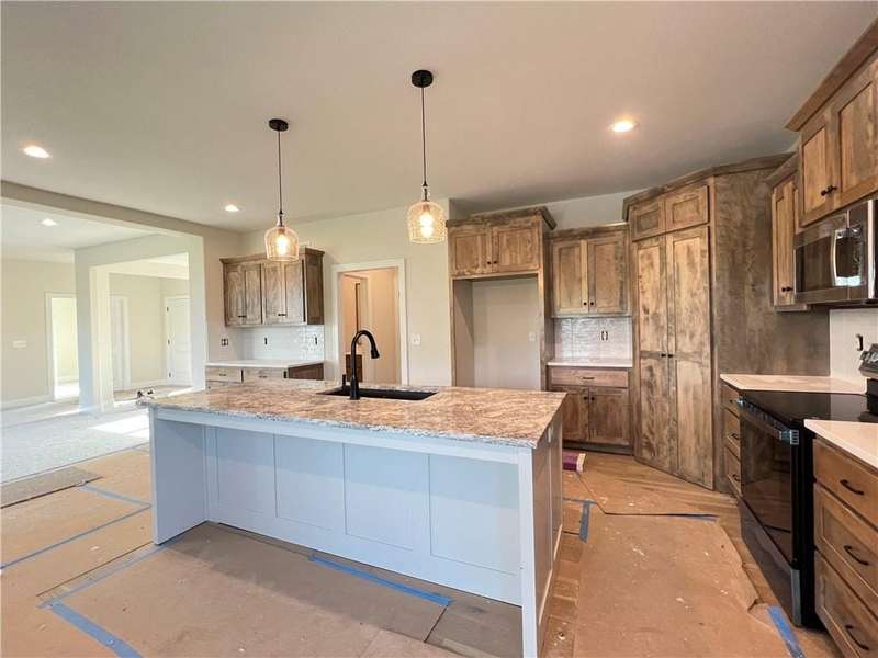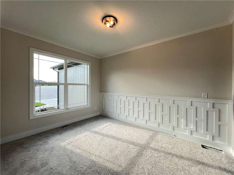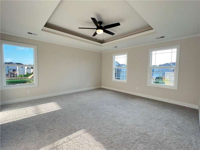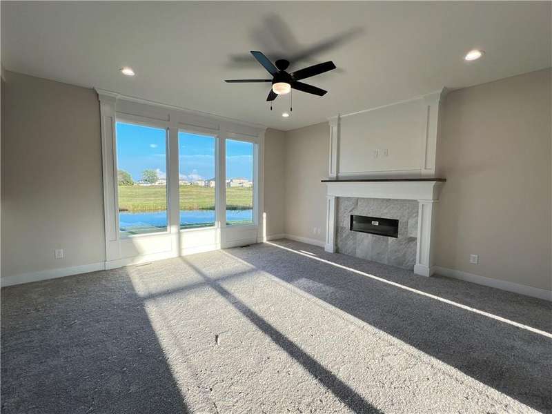 NEARING COMPLETION!! Final photos coming soon! Dream lot with the perfect balance of lake view and greenspace access. The 5th bedroom on the main floor could be the ideal place for a guest or office. Incredible kitchen with oversized granite island and upgraded, level 2 quartz tops. Grand prep-style pantry with tons of storage. Custom trim wainscot accent wall in the dining room. Soaring trim accent wall in the stairwell. Oversized Master Bedroom Suite includes an amazing a customizable lighted vault. Attached Master Bath includes an oversized vanity with a custom framed mirror, quartz vanity top upgrade, and matte black plumbing faucets. Sleek freestanding tub and 3 vertical levels of storage in the master closet with custom-designed shelving. Large secondary bedrooms, all with walk-in closets. Secondary baths also include matte black plumbing upgrades and quartz vanity top upgrades. A sprinkler system is included in the sodded areas with remote port access. Custom 2-inch faux wood blinds are included. Garage door openers and a keypad is also included. Taxes and Square footage are estimated.