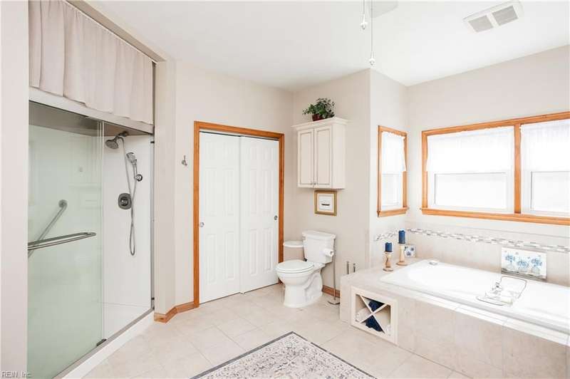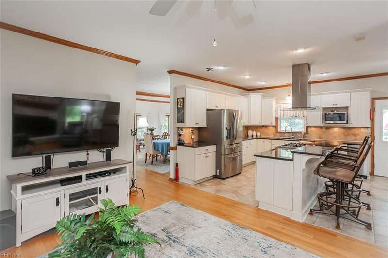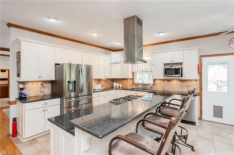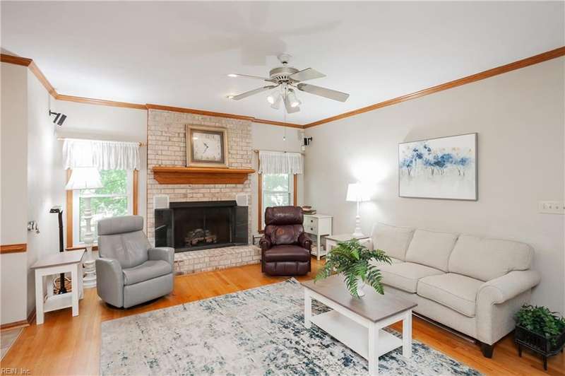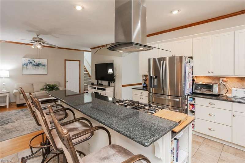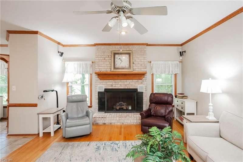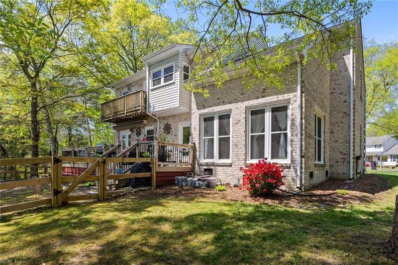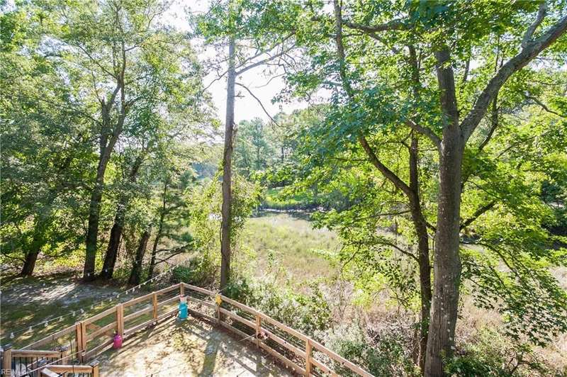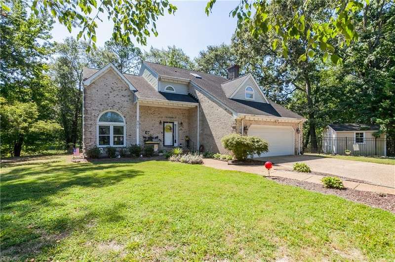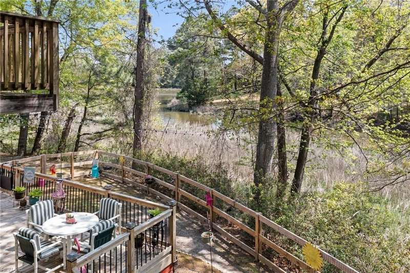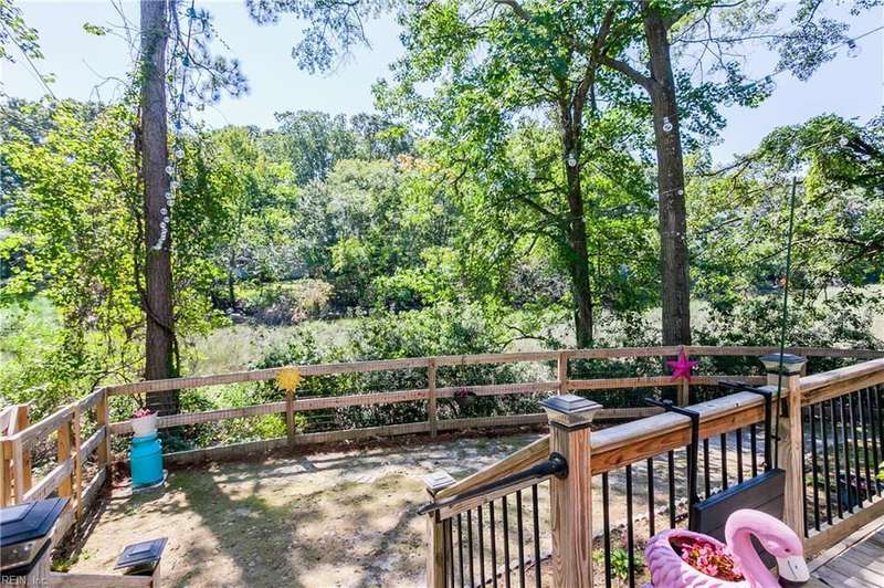LOVE where you live! Looking for peace & quiet, yet close to all that VA Beach has to offer? This beautiful brick 2 story has quiet, peaceful location on a small tributary of the Elizabeth River, surrounded by trees, nature, views of the marsh & river. Enjoy an open, easy to live with floorplan that is not the typical "cookie cutter" style. No HOA! You'll find peace of mind too, with all the current updates including 2018 roof & skylights, 2020 sealed crawl space & windows, 2021 deck, 2 zone HVAC (one 2024), gorgeous, remodeled kitchen, remodeled huge primary bath, 2023 partial new flooring. 1st floor bedroom currently used as an office with nearby full bath, bar stools convey, wet bar in LR, 2 sheds, under counter lighting, fenced backyard. Great home for gatherings! Come and see for yourself the lifestyle you could be living!