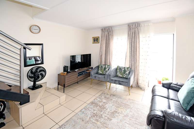 The perfect 3 bed 2 bath apartment with ultimate space. Open plan kitchen, with granite tops, extra cupboards. Open plan lounge and dining room that opens out onto the balcony. All reception areas are fully tiled. Kitchen has space for the dishwasher and a large fridge. 2 bedrooms downstairs with laminate flooring, that share a full bathroom. An extra large shower with a bathtub. Space for the washing machine in the passage. Main bedroom upstairs also with laminate flooring with an en suite bathroom with a full shower. The main bedroom opens out onto a huge balcony that has amazing views of the Sandton / Waterfall skyline. Complex has a swimming pool and club house. 24 hr security. A great starter unit that has been renovated to exceptional standards