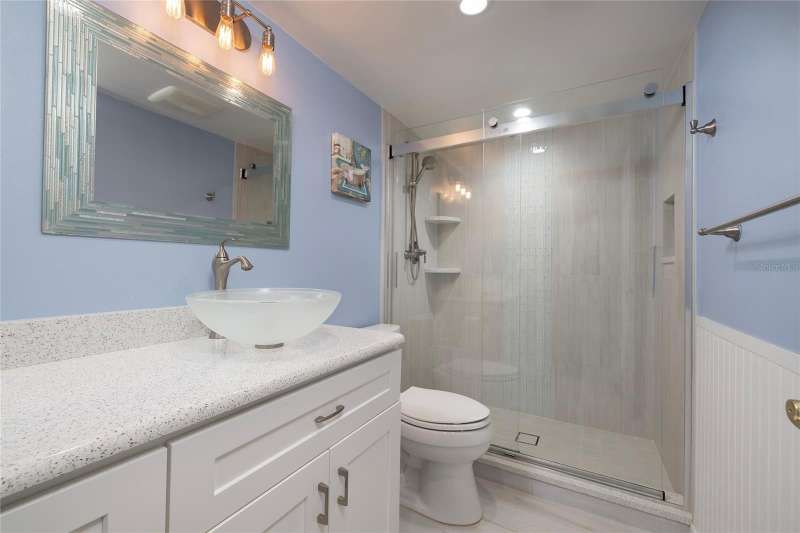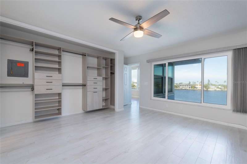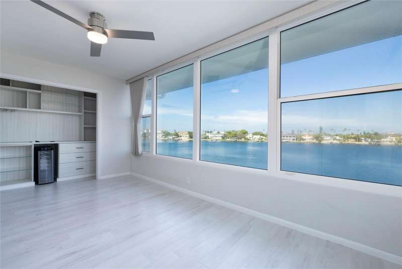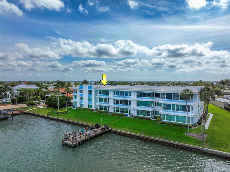 Washer and Dryer in unit! HIGH AND DRY! Light and bright, this STUNNING top-floor unit holds the best views in the building! You'll find 180 degrees of intracoastal waterway views as soon as you walk into this home. A large Florida Room sits off the Living Room, with a built-in dry bar. This space is perfect for ending the day with a sunset and a glass of wine. The Master Bedroom shares the same stunning views, also with its own access to the Florida Room space. Each closet has beautiful built-ins, and every surface is updated! This building is well-cared for, with fresh paint in 2022, a 2018 Roof, and 2022 Building Elevators. Easy living is ensured with the new water heater, A/C 2015, updated windows 2016. Assigned parking with a covered parking space and storage unit! Don't miss out on this exceptional unit! Pet restrictions to be voted on in May, and it is very possible that pets will be allowed. Service pets are already allowed.