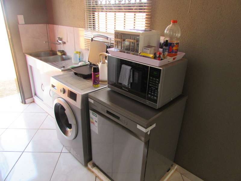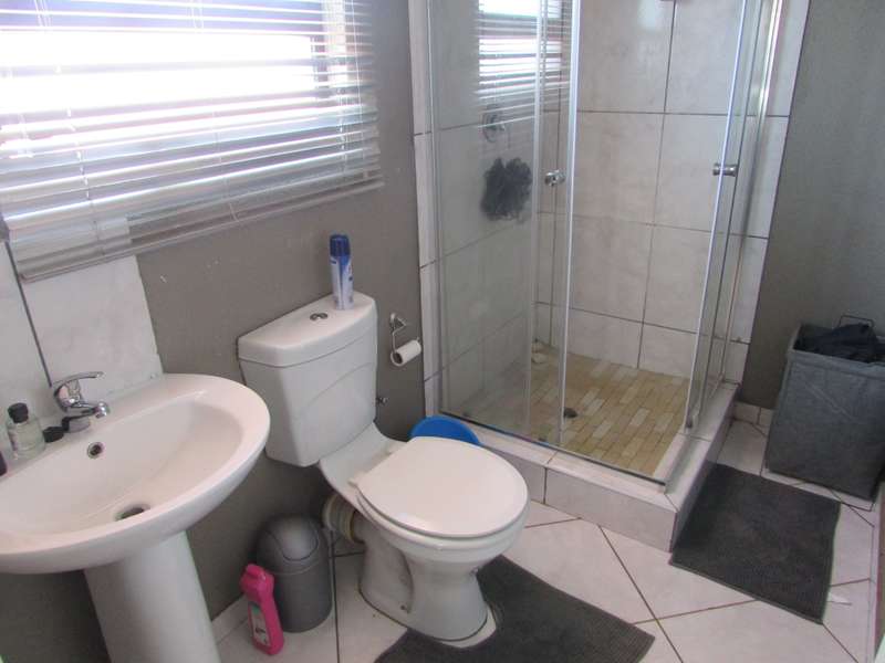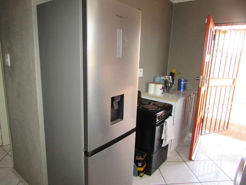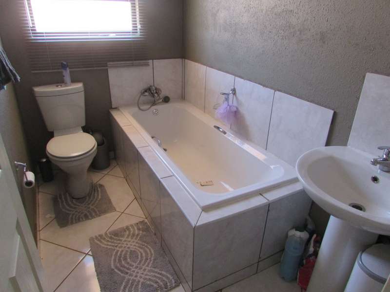 A nice starter home, just put your own stamp on it.!!! What A Charming family home with neat finished, just arrived on the market. The Property is neatly tiled throughout. Boasts 3 well sized bedrooms with 2 Bathrooms one (mes). 1 Open plan reception area. A kitchen with stove and fittings for washing machine. Pre paid water and electricity. Burglar alarm with trelidours in front of windows and security doors. Fenced property. 1 Lock up garage. Close to all amenities. Well!!!!!