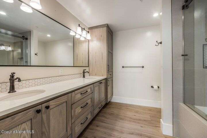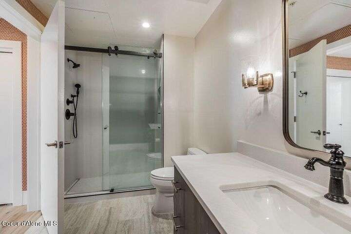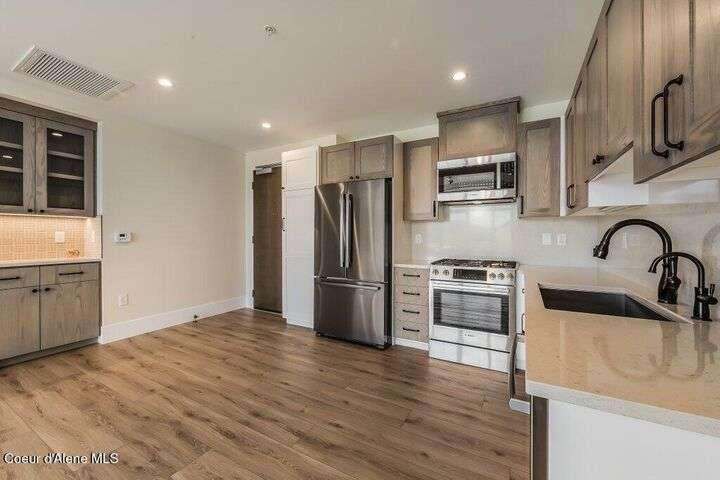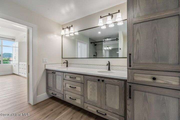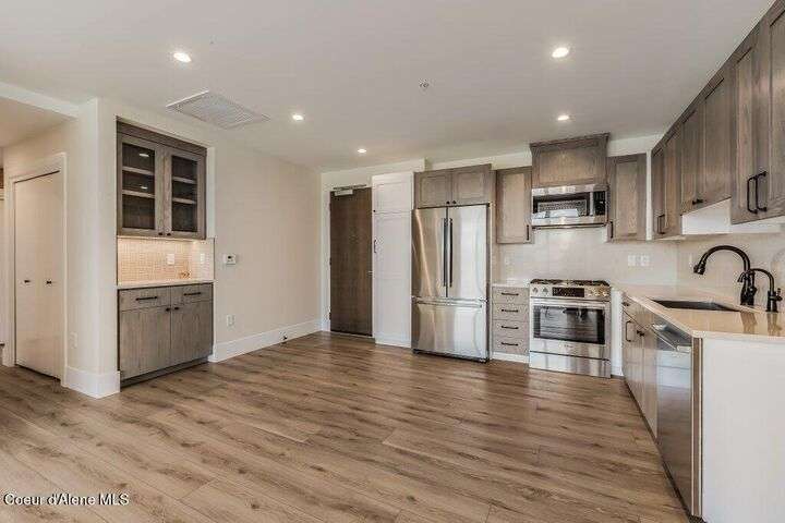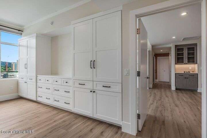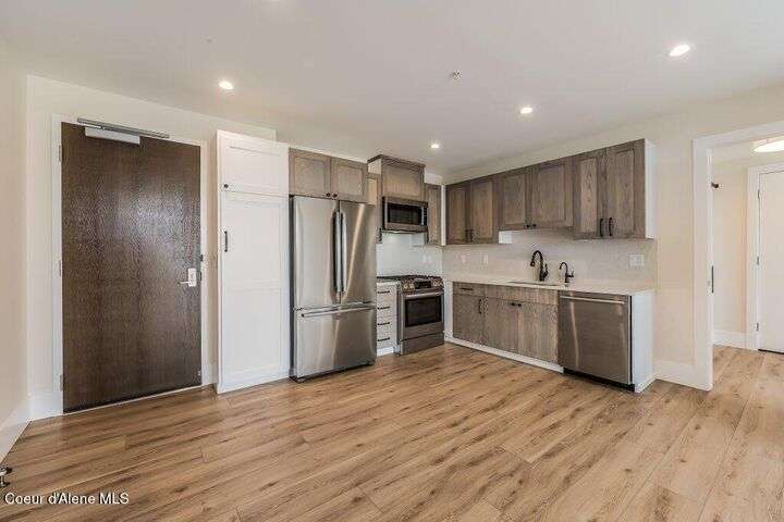 Loaded with upgrades, this 2-bedroom, 2-bathroom condominium in the prestigious One Lakeside building in downtown Coeur d'Alene features new waterproof LVP flooring throughout, custom kitchen & bathroom cabinetry & closet packages with ample storage, and stunning lake, city and mountain views. The serene master suite is complete with a new luxurious en-suite bathroom. A second bedroom & bathroom offers flexibility for guests or a home office, ensuring comfort and convenience for every lifestyle. One Lakeside offers a roof top deck with a hot tub and lake views, a large fitness center and the security of a concierge service and private parking for 2 cars plus a 50 SF secure storage unit. Featuring close proximity to the lake, parks, and restaurants, this is urban living at its finest. Don't miss the opportunity to make this downtown Coeur d'Alene condo in a fantastic location your new home or getaway. Schedule your private tour today.