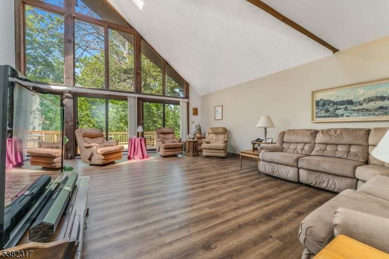 Welcome to your peaceful escape on the Delaware River! This beautifully maintained 3 bedroom, 2 bath A-Frame home offers stunning water views, serene surroundings and direct river access. Perfect for year-round living or a weekend getaway. Step inside to a spacious light filled family room with soaring ceilings and panoramic views of the river with all Anderson windows. The large eat-in kitchen is perfect for gathering, while the first floor laundry room adds convenience. A versatile second floor loft overlooks the main living space and can easily serve as a fourth bedroom, home office or creative space. Enjoy 100 feet of private river frontage from the expansive deck-ideal for outdoor dining, entertaining or simply soaking in the natural beauty. Follow the private steps down to the river where your own dock awaits for fishing, kayaking or launching your boat. Tucked away in scenic Columbia, NJ this home blends rustic charm with modern comforts. Home is NOT in a mandated flood zone.