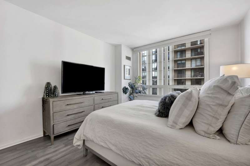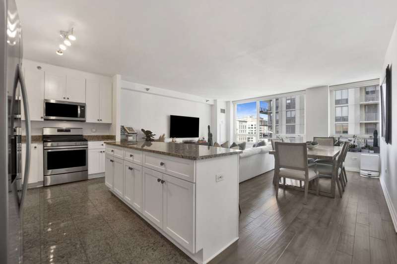 Welcome to this beautifully renovated 2-bedroom, 2-bath residence in one of River North's premier full-service high-rises. Designed for modern living, this spacious home features an open floor plan with exceptional flow and stylish, high-end finishes throughout. The sleek white kitchen is a chef's dream, featuring stainless steel appliances, custom lighting, and an oversized island that offers extra seating and prep space-perfect for entertaining. Updated flooring runs throughout the entire unit, complemented by Hunter Douglas automatic custom window treatments for added comfort, privacy, and style.The oversized primary suite is a true retreat, offering expansive his-and-hers professionally organized closets and a spa-inspired en-suite bath with dual vanity, soaking tub, and elegant marble tile. The spacious second bedroom is perfect for guests or a home office, and the updated guest bath features modern finishes.This home also includes in-unit washer/dryer, generous storage, and a storage locker. One parking spot available for an additional $25,000.Enjoy full access to premium building amenities: 24-hour door staff, package delivery to your door, fitness center, pool, sundeck, party room, conference room, and on-site dry cleaners.Located in the vibrant heart of River North, you're just steps from the Magnificent Mile, Nordstrom, Eataly, Whole Foods, Trader Joe's, and some of the city's best dining and shopping. With a Walk Score of 99 and easy access to the Loop, public transit, and expressways, this is true city living at its finest.