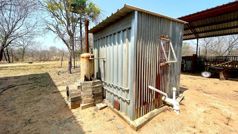 Small Holding/Plot close to Thabazimbi Town Two large sheds measuring 10m x 18m and 10m x 12m, ideal for storage, workshops, or agricultural use Separate bathroom Dedicated storage room Three boreholes on the property, with two equipped and operational via generator 5000L water storage tank installed Fully game-fenced perimeter, providing excellent security and suitability for livestock or wildlife No Eskom power connection – off-grid potential with generator or solar setup Kleinhoewe/Plot naby Thabazimbi Dorp Twee groot skure van 10m x 18m en 10m x 12m, ideaal vir berging, werkswinkels of landboudoeleindes Afsonderlike badkamer Toegewyde stoorruimte 3 Boorgate op die eiendom, waarvan twee toegerus is en werk met 'n kragopwekker 5000L water tenk Eiendom is volledig wildomhein – bied uitstekende sekuriteit en geskiktheid vir vee of wild Geen Eskom-kragverbinding nie – opwekker of sonkrag moontlik
