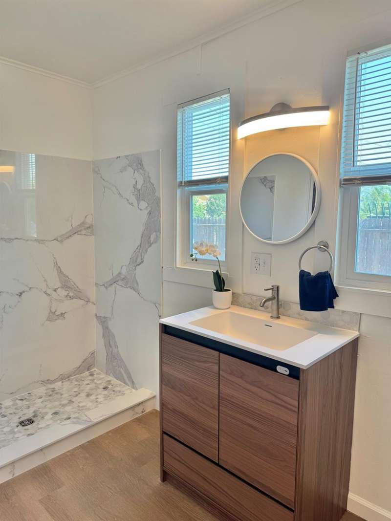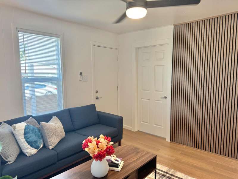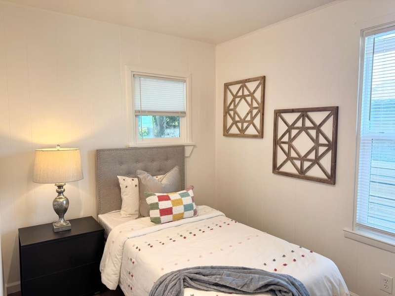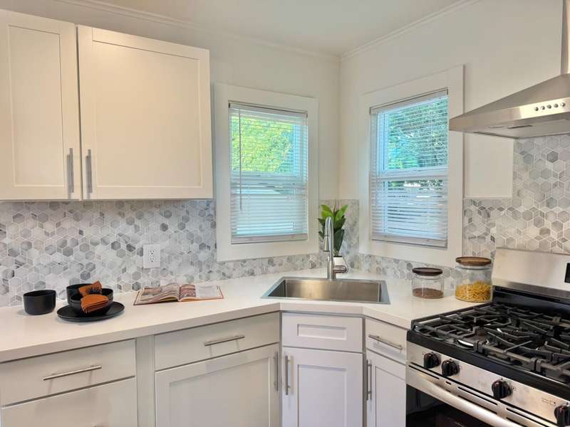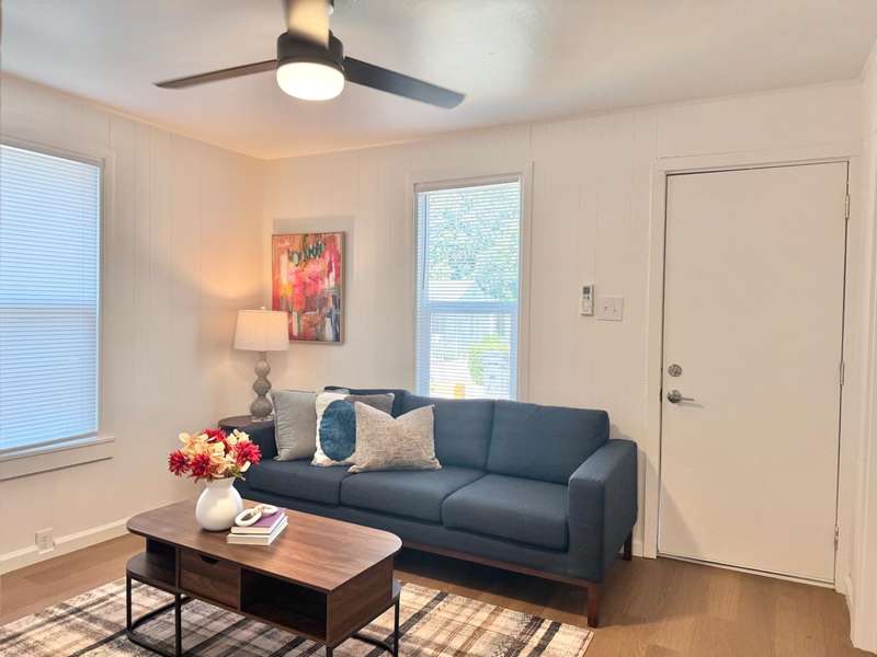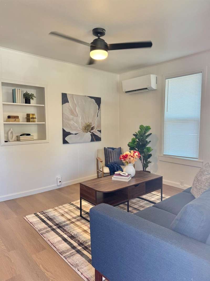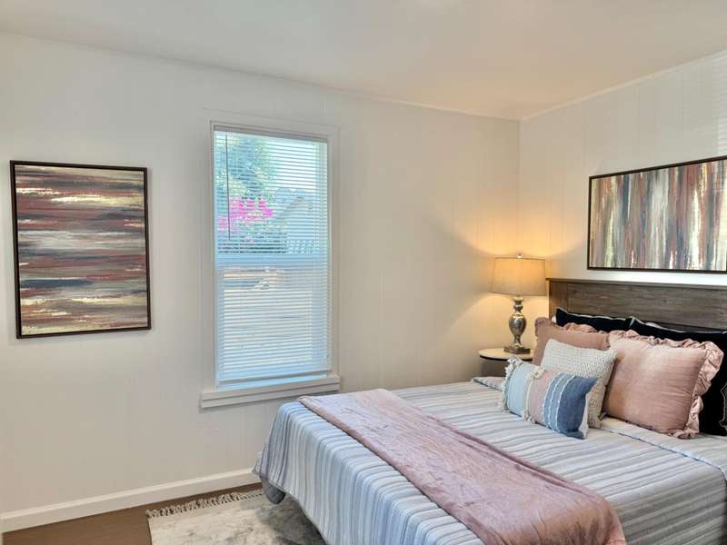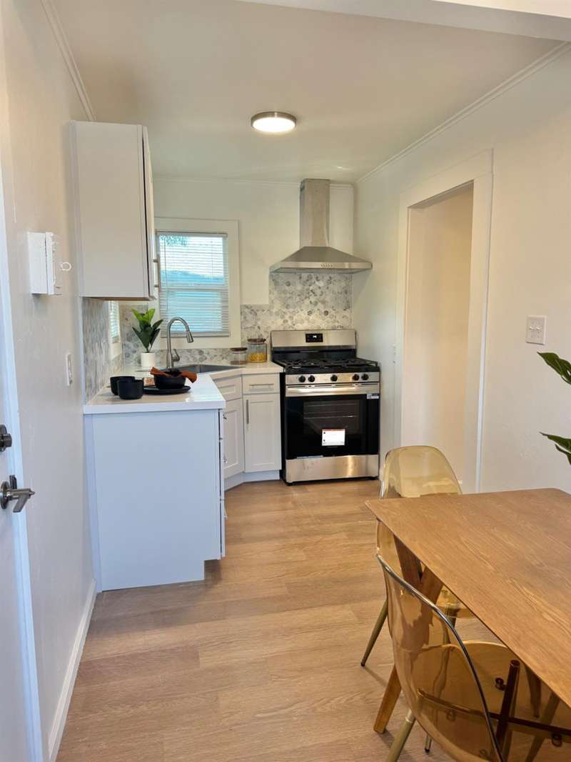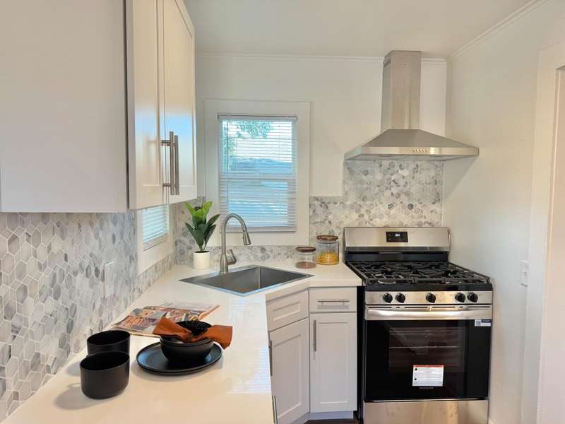 This move-in ready 2 bed, 1 bath home offers modern upgrades and smart design in a compact 651 sq. ft. layout. Situated on a fully fenced 5,000 sq. ft. lot, it features a sleek kitchen with quartz counters, new stainless steel appliances, and custom backsplash. The bathroom is beautifully updated with a walk-in shower and modern vanity. Enjoy designer finishes throughout, luxury vinyl plank flooring, fresh paint, and stylish touches like slatted wood style panels. Perfect for first-time buyers or investorsclose to schools, parks, and freeway access! Seller willing to help with a rate buy down with an accepted offer.