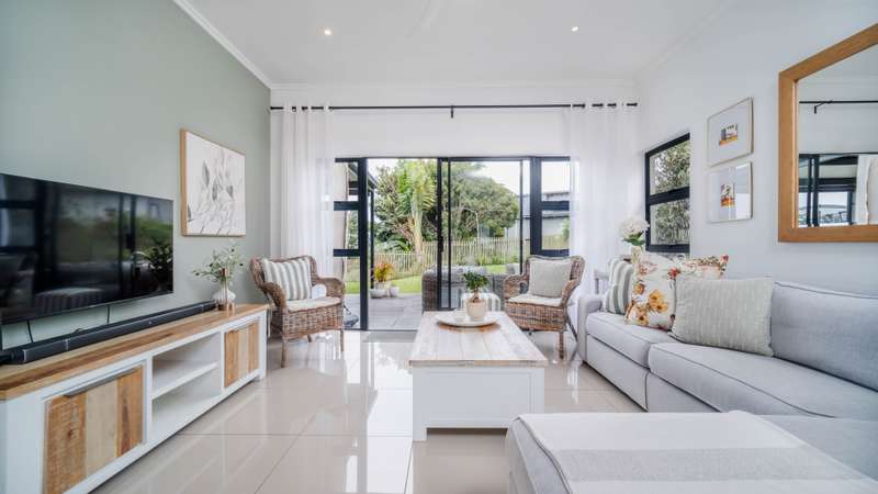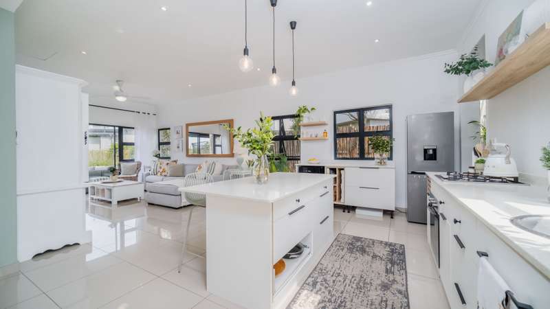 SOLE MANDATE! Your dream home awaits! Welcome to this beautifully designed, modern three-bedroom home located in the highly sought-after Palm Lakes Family Estate on the North Coast. Perfect for families, pet lovers, and entertainers alike, this home offers the best of contemporary living with smart, sustainable features. Bedrooms · 3 Generously sized bedrooms · Main bedroom with ensuite bathroom · Plenty of natural light and built-in storage · Modern finishes throughout Living Area · Stunning open-plan kitchen, lounge & dining area · Quartz countertops & centre island – perfect for cooking & entertaining · A separate scullery with direct access to the front of the house · Light-filled spaces designed for modern living Outdoor & Garden Space · Covered & open paved patio – ideal for relaxing or entertaining guests · Expansive, well-maintained garden – perfect for kids and pets · There is space to easily add a splash pool if desired Energy-Efficient & Load Shedding Proof · Equipped with 6 solar panels · Stay powered during outages with load shedding protection · Designed with sustainability and convenience in mind Estate Living at Its Best Palm Lakes Family Estate offers 24-hour security, walking trails, clubhouses, swimming pools, and a family-friendly atmosphere, all just minutes from the beach and top schools. Don’t miss this opportunity to own a slice of paradise in one of the North Coast’s most loved family estate. Contact your resident agent to view this home today!