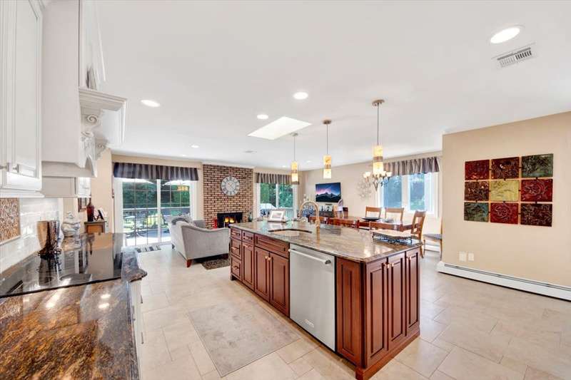 Nestled on a quiet cul-de-sac, this charming Ranch-style home offers a perfect blend of comfort and style. From the beautifully landscaped front yard to the inviting double-door entry, youll feel at home the moment you arrive. The two-car garage and additional paved driveway make parking a breeze.Step inside to a bright and open living room and formal dining area, flowing effortlessly into a stunning kitchen perfect for entertaining. With granite countertops, soft-close cabinets, stainless steel appliances, and three skylights, this space is as practical as it is beautiful. The adjacent family room with fireplace creates a cozy spot for relaxing with family. Convenient first-floor laundry adds ease to everyday living.The home features three sunny bedrooms, including a spacious master suite with plenty of natural light and a stylish master bath. Hardwood floors lie beneath the carpeting, and theres even the potential to create a fourth bedroom if needed. Three-zone heating, central air, and a central vacuum system add convenience and comfort throughout.The finished basement is versatile, currently set up as an office, with high ceilings, abundant storage, and a cedar closet. With its impeccable condition, thoughtful upgrades, and inviting layout, this home is ready for you to move in and make it your own. Plus, youll enjoy access to nearby Anthony Veterans Park, featuring multiple pools for children and adults, tennis and pickleball courts, and a vibrant senior center.