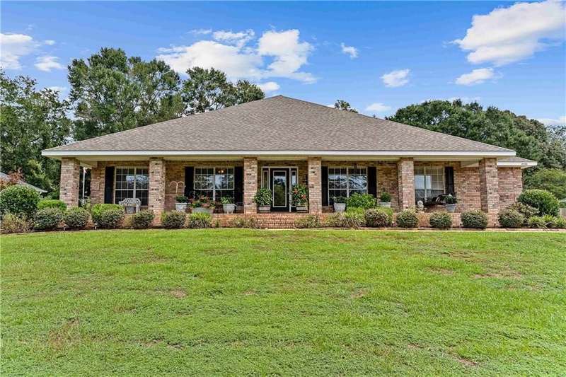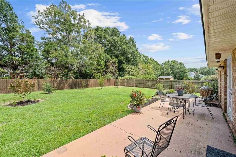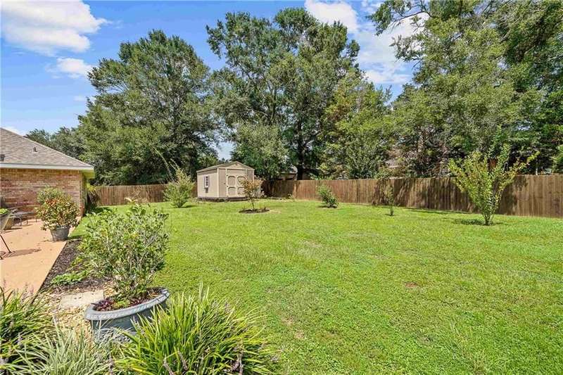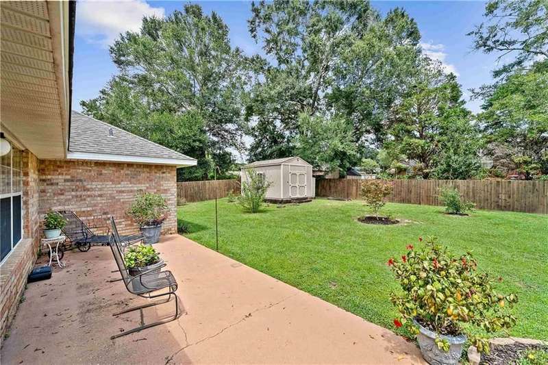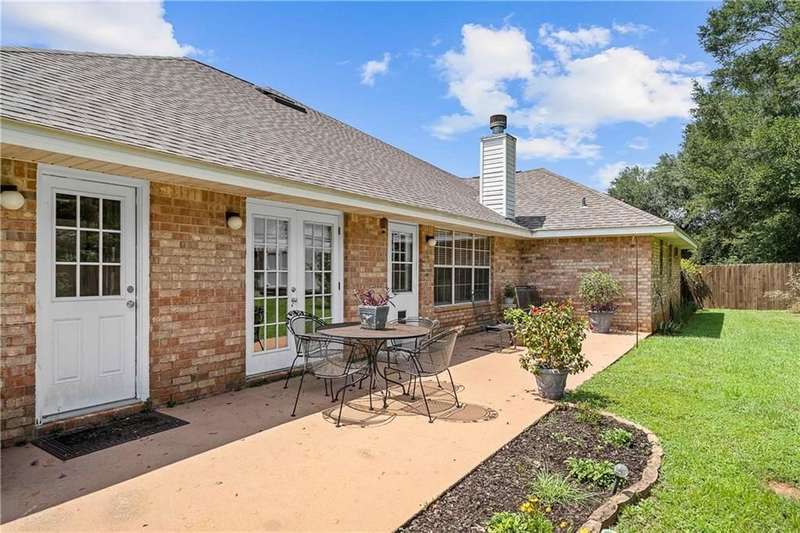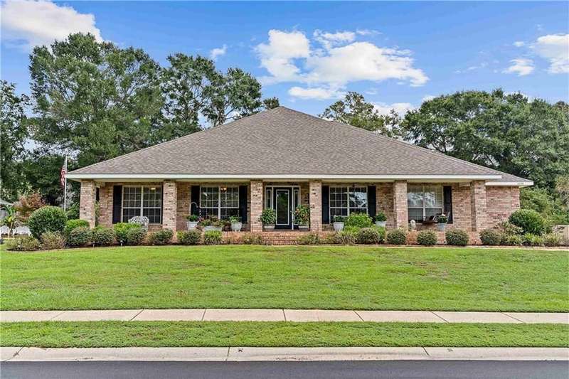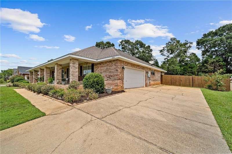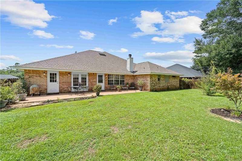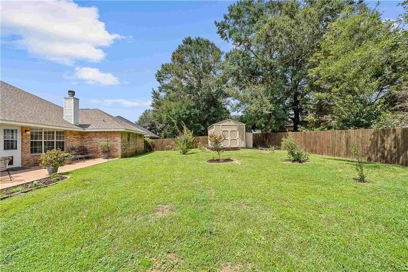 Move-in ready spacious one-level brick home in Bay Branch with all NEW PLUMBING in 2024, NEW ROOF in 2020, Grinder pump 2019, HVAC in 2018, plus storage building! NO CARPET, LVP and Tile throughout. Expansive front porch and versatile floor plan with 4 bedrooms, 3 full bathrooms with a great FLEX SPACE, would make a great office. Updated kitchen with granite counter tops and island, abundant white cabinetry, stainless steel appliances, a walk-in pantry, and soft-close custom cabinets. The open-concept design creates the perfect flow for entertaining, with a large gathering room complete with a wood burning fireplace, plus formal dining and office space. The expansive primary suite includes a spa-like en-suite bath with dual vanities, soaking tub, separate shower, and a generous walk-in closet. Additional bedrooms and flexible spaces provide options for a nursery, office, or guest rooms. Luxury vinyl plank flooring and tile throughout. Outdoor living is just as inviting, with French doors opening to a large patio overlooking the fully fenced yard with double gates and storage building. Don't miss the best value per square foot in the neighborhood, with low HOA fees, community pond and a convenient location close to the interstate, shopping, dining! Buyer to verify all information during due diligence.