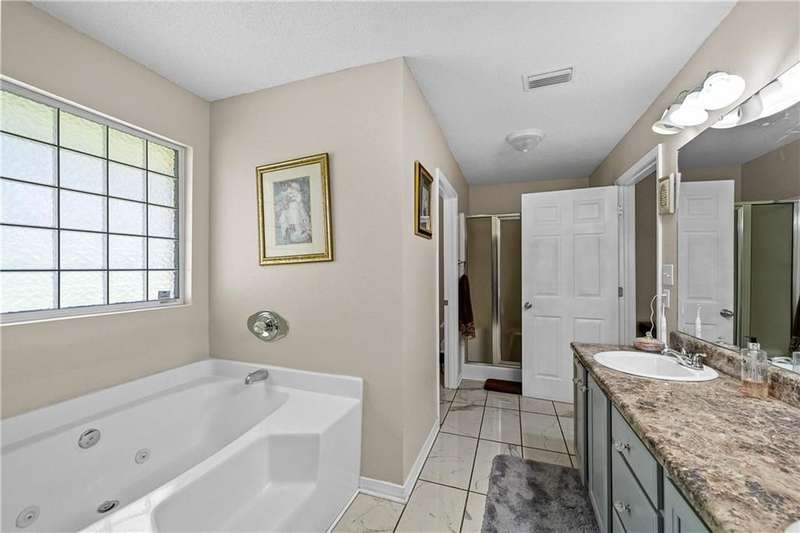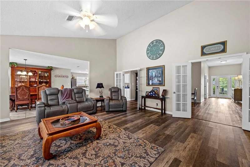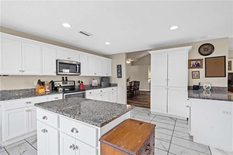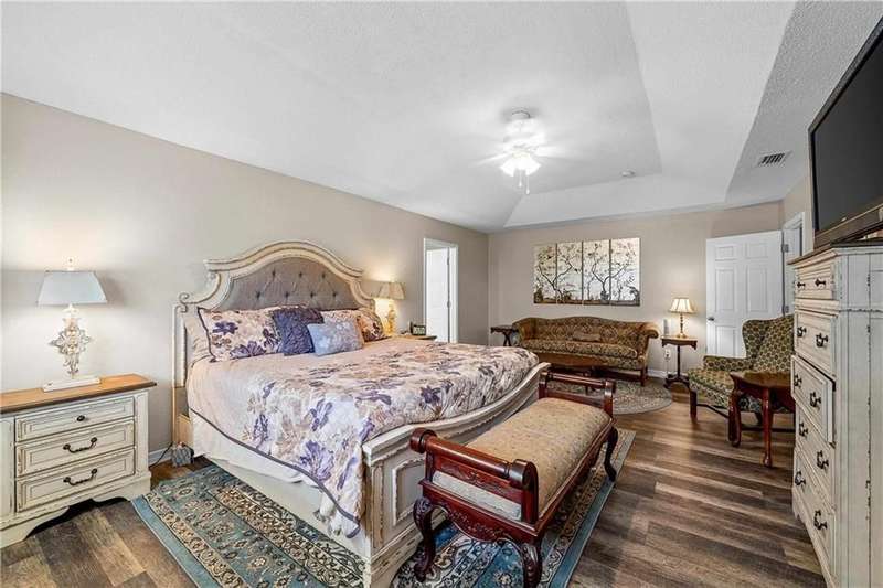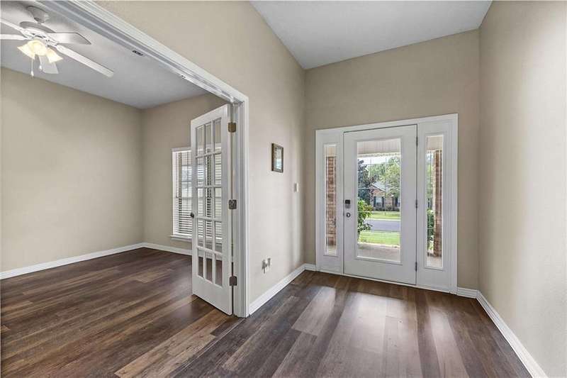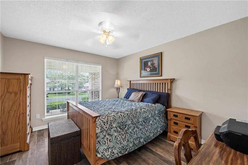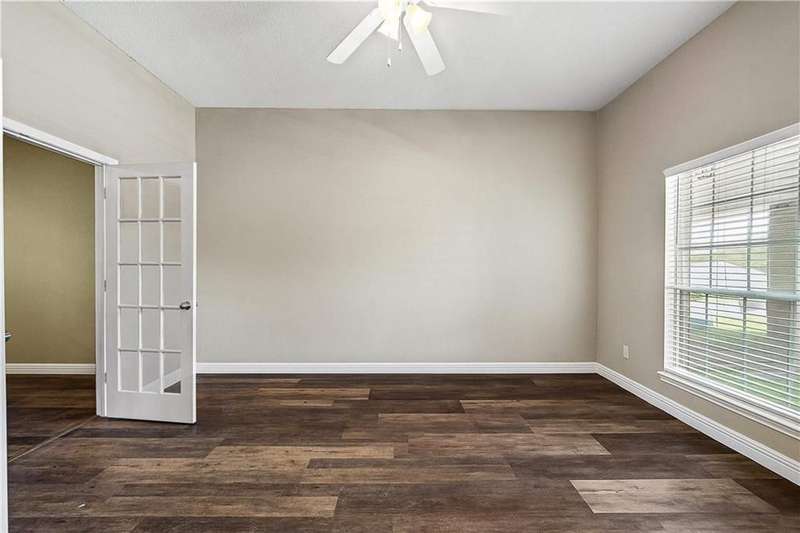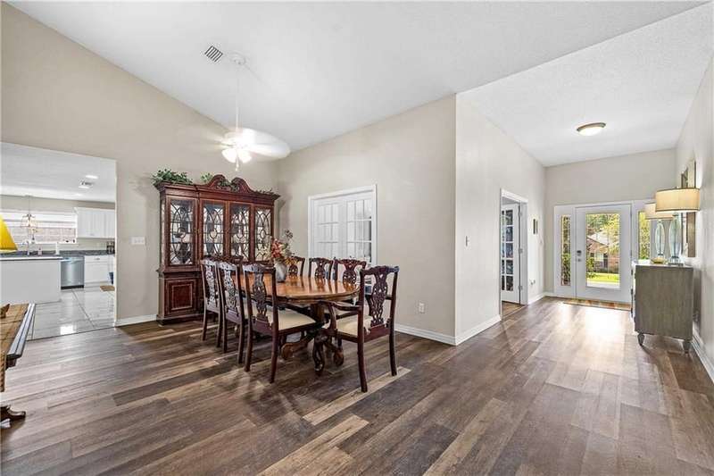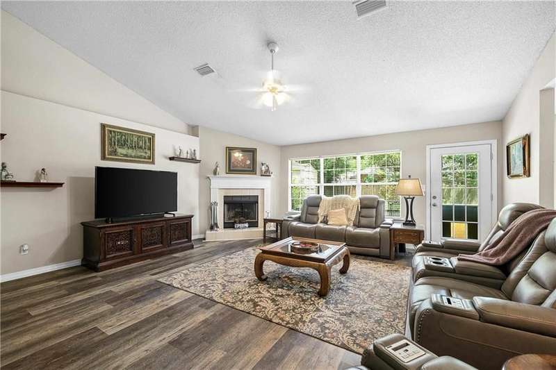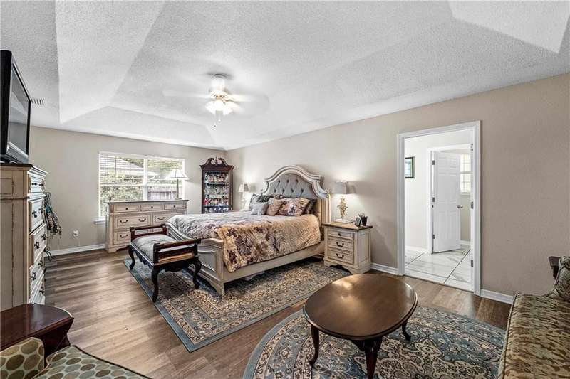 Move-in ready spacious one-level brick home in Bay Branch with all NEW PLUMBING in 2024, NEW ROOF in 2020, Grinder pump 2019, HVAC in 2018, plus storage building! NO CARPET, LVP and Tile throughout. Expansive front porch and versatile floor plan with 4 bedrooms, 3 full bathrooms with a great FLEX SPACE, would make a great office. Updated kitchen with granite counter tops and island, abundant white cabinetry, stainless steel appliances, a walk-in pantry, and soft-close custom cabinets. The open-concept design creates the perfect flow for entertaining, with a large gathering room complete with a wood burning fireplace, plus formal dining and office space. The expansive primary suite includes a spa-like en-suite bath with dual vanities, soaking tub, separate shower, and a generous walk-in closet. Additional bedrooms and flexible spaces provide options for a nursery, office, or guest rooms. Luxury vinyl plank flooring and tile throughout. Outdoor living is just as inviting, with French doors opening to a large patio overlooking the fully fenced yard with double gates and storage building. Don't miss the best value per square foot in the neighborhood, with low HOA fees, community pond and a convenient location close to the interstate, shopping, dining! Buyer to verify all information during due diligence.