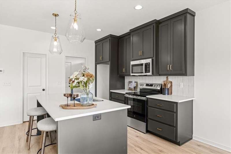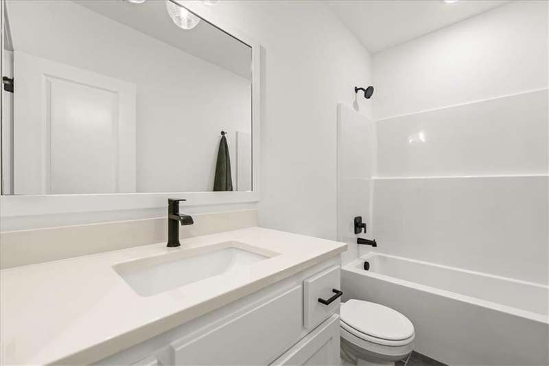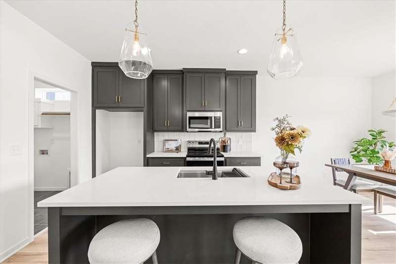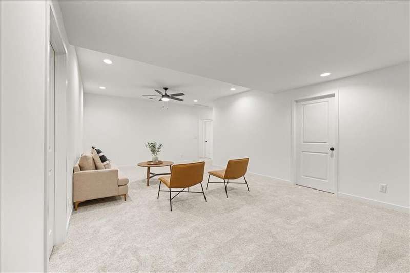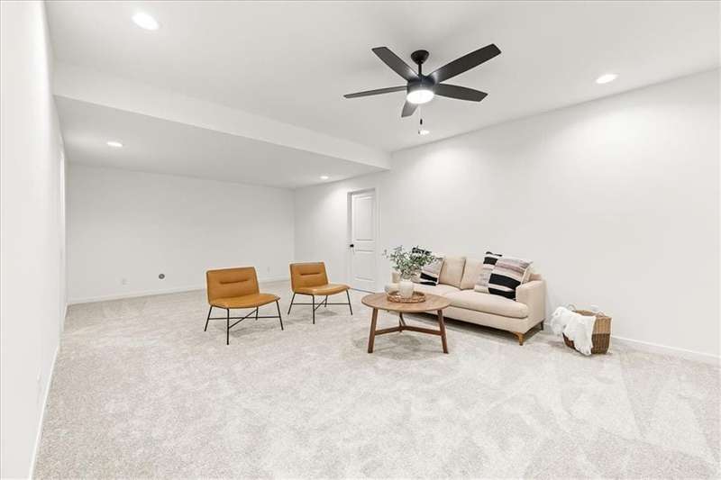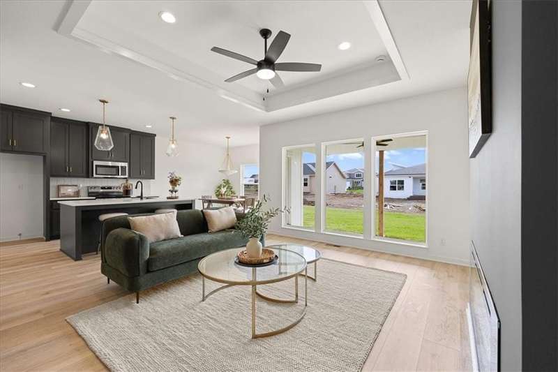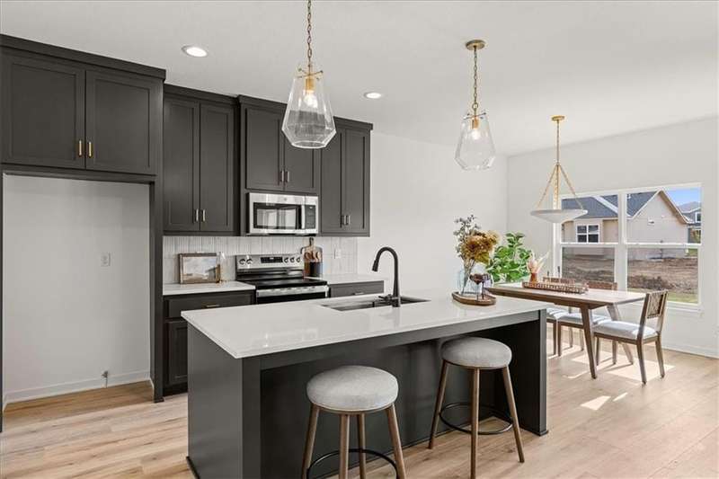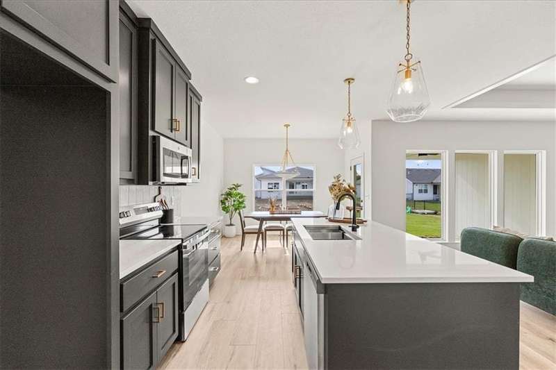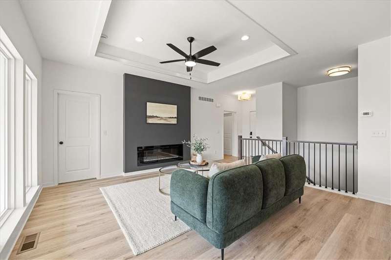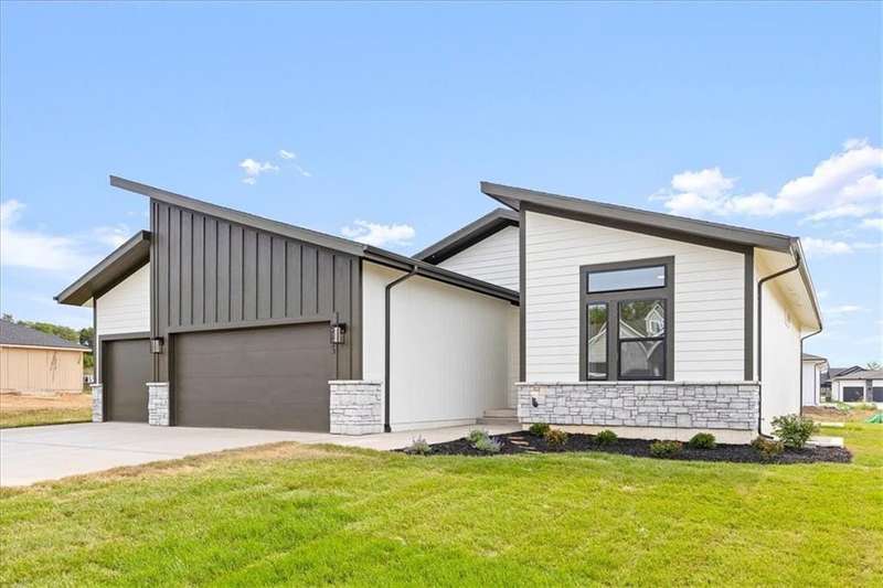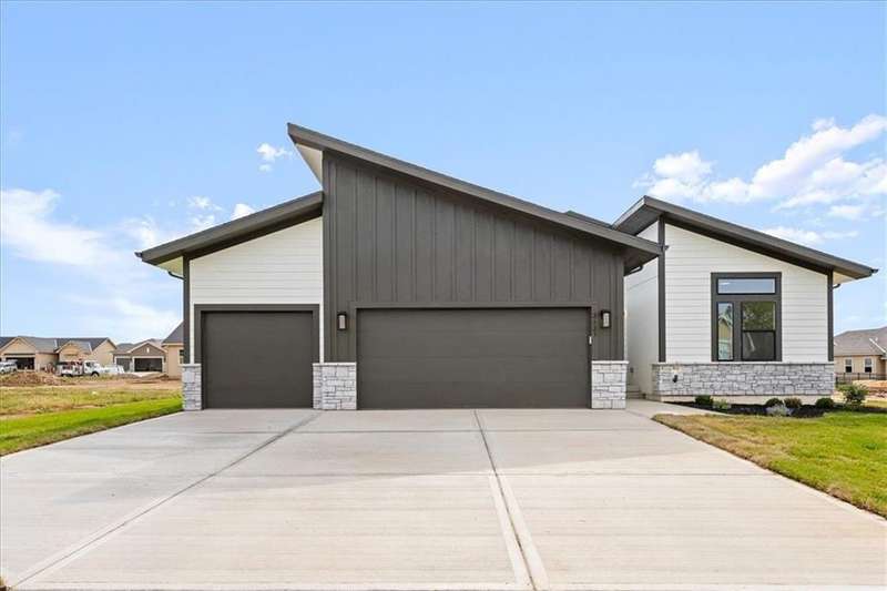 The Greystone - Modern by Elevate Design + Build is a 4-bedroom, 3-bathroom home on a flat lot showcasing a sleek modern design with an open layout flooded with natural light. The home includes a unique linear fireplace and a covered back deck. The spacious finished lower level is perfect for lower-level living room perfect for entertaining. This builder highlights the craftsmanship and attention to detail that elevate new construction in Lees Summit.