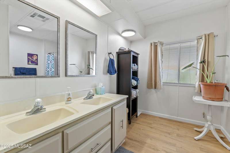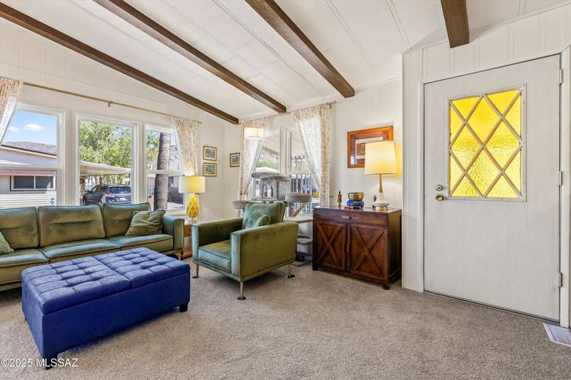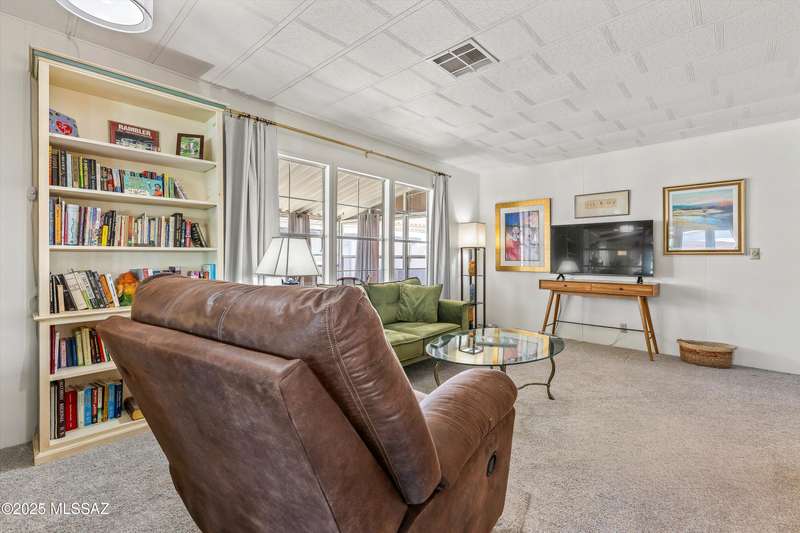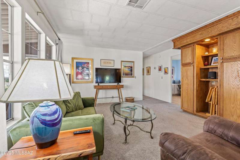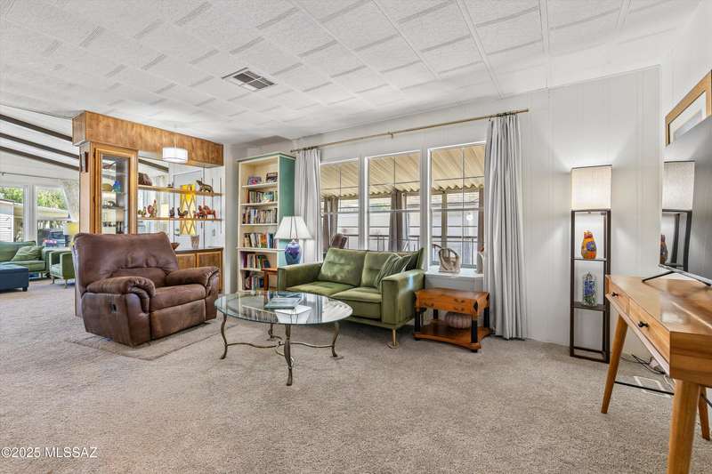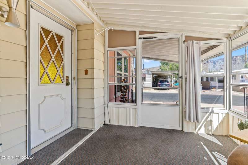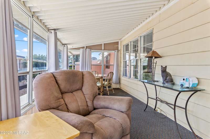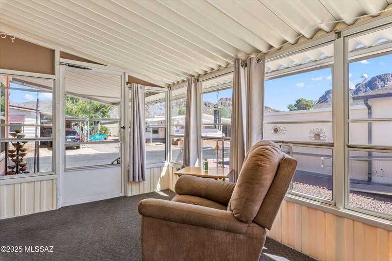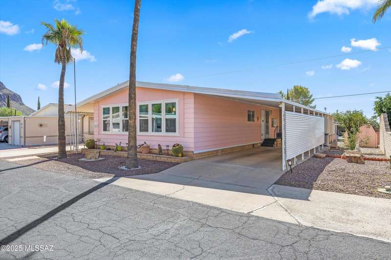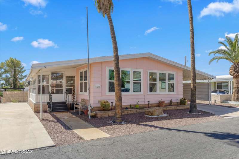 Escape to sunshine and serenity in this 2 bed, 2 bath, 1,536 sq. ft. manufactured home on owned land--no lot rent! Spacious 5-car parking for visitors, toys and maybe a golf cart? Enjoy indoor-outdoor living with two screened-in porches, and stay cool with dual-pane UV-coated front windows. Fast-growing TEP trees offer future shade. All located in a vibrant 55+ community loaded with resort-style amenities: 2 pools, hot tub, tennis, pickleball, golf, fitness center, clubs, socials, hiking and more--all for just $208/month! RV parking available to rent.Whether you're wintering in the sun or discovering Tucson for the first time, this home offers easy, affordable living in a quiet community nestled near stunning desert parks with downtown Tucson just 20 minutes away!