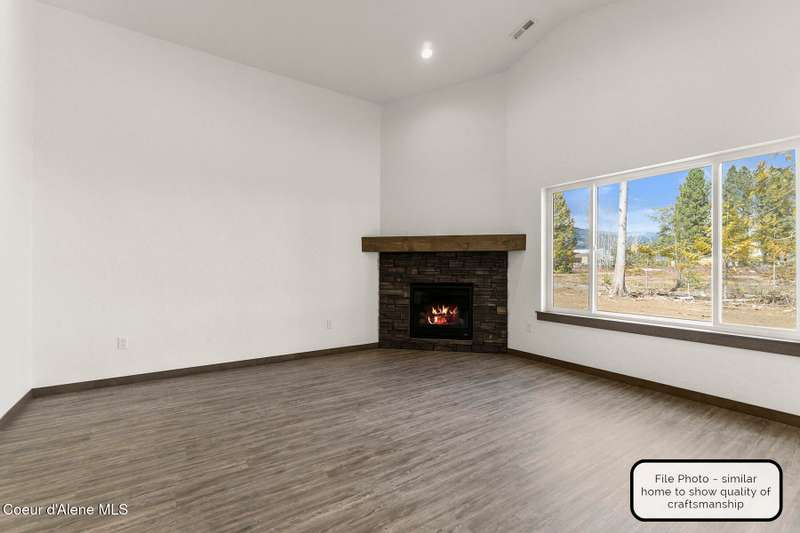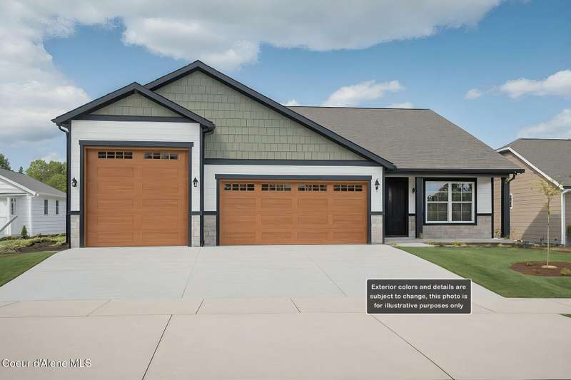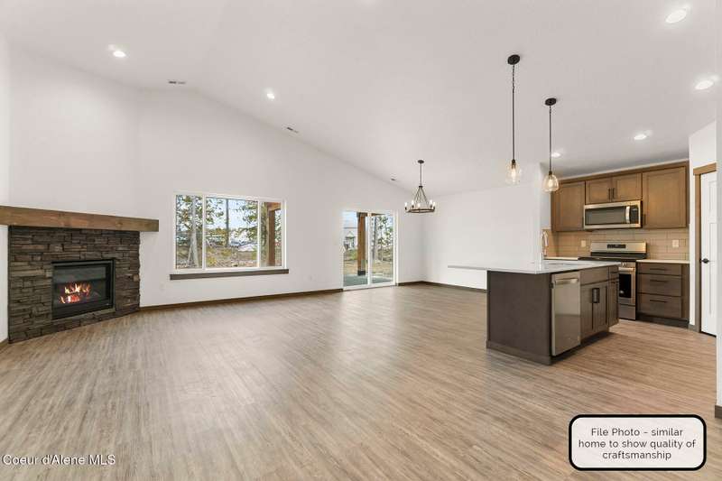 Under construction. 3rd Bay garage is 12 wide and 30 feet deep exterior measurement with a 10X10 garage door with opener, gas fireplace, quartz countertops throughout, covered front and rear patio, vaulted ceilings, 95% gas furnace, Nest thermostat, tankless gas water heater, gas to rear patio, gas range, LVP flooring every where except bedrooms and closets, garage door opener, garage man door and front yard landscaping and sprinkler system. Return home to style and elegance every day when you make this beautiful abode your own. There's an impressive 1,437 sqft of living space with a bright and open-plan layout that invites you to rest and relax. The owner's suite enjoys a private position, complete with an ensuite bath and an abundance of closet space. The two guest bedrooms are serviced by the hall bath. When friends drop by, you can flow freely from the living room, into the dining room and the kitchen beyond. A breakfast nook set under a statement chandelier light.