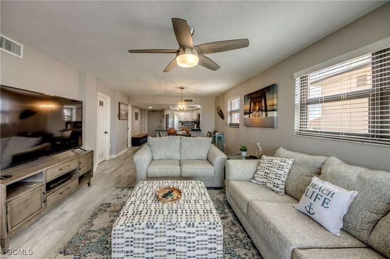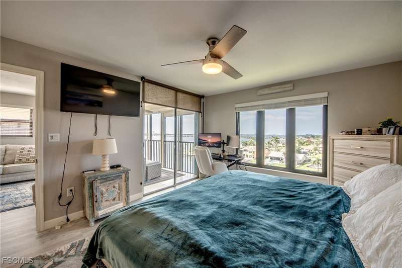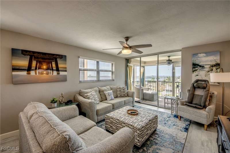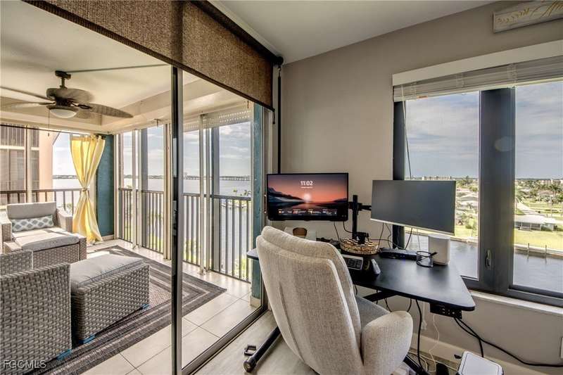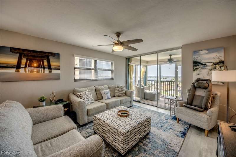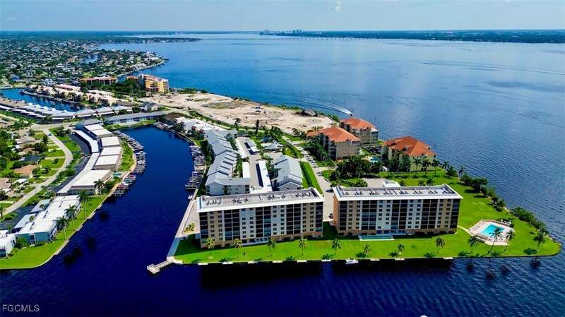 Elegance meets comfort in this Stunning Waterfront Condo that's tastefully decorated with amazing views of the wide intersecting canal and the Caloosahatchee River. Truly a Beautiful Condo! Wake up to awe-inspiring river and canal views from every room in this impressive, spacious 2-bed, 2-bath condo. Elevate your lifestyle on the 7th floor, so peaceful, free from the hum of A/Cs and offering the perfect balance of comfort and tranquility. Upgraded, high-end kitchen will bring out the Chef in you which features granite countertops, SS appliances & stylish tile backsplash. Start each day inspired as you awake to gorgeous views from your luxurious primary suite. Furnishings Negotiable! New Wi-Fi-enabled AC in 2022. Condo has premium LVP flooring throughout, open floor plan, large laundry room for your convenience with FULL size washer & dryer, split bedrooms, built-in cabinets with Murphy bed & pretty screened balcony to enjoy all year round plus you can watch the Fourth of July fireworks from your Lanai. Hurricane impact-resistant windows provide added peace of mind, while two elevators ensure quick and easy access to your unit. Relax by the sparkling Pool which has one of the best locations with panoramic views of the RIVER, enjoy the calming water and boats traveling out to the Gulf. Direct Access, No Bridges! Located at the end of Beach Parkway, this quiet and desirable location is just a short walk to the soon-to-be-completed $16 million renovated Jaycee Park. River Towers Condo is an active 55+ community offering a variety of amenities, including a heated riverfront pool, shuffleboard, a Tiki area perfect for relaxing while watching dolphins and manatees, a BBQ area, 2 community rooms, shuffleboard courts & a library. Each unit is assigned a parking spot with plenty of guest parking & an additional 10x10 storage unit. The HOA includes water & cable, with complete restrictions on pets, smoking, and rentals for the first three years of ownership. Imagine waking up every day to world-class fishing, vibrant marine life, and endless opportunities for exploration. Whether you're looking for a serene second home or a permanent residence, River Towers provides an unbeatable blend of prime location, care-free living and top-notch community amenities. This beautiful condo is your gateway to the ultimate Florida lifestyle.