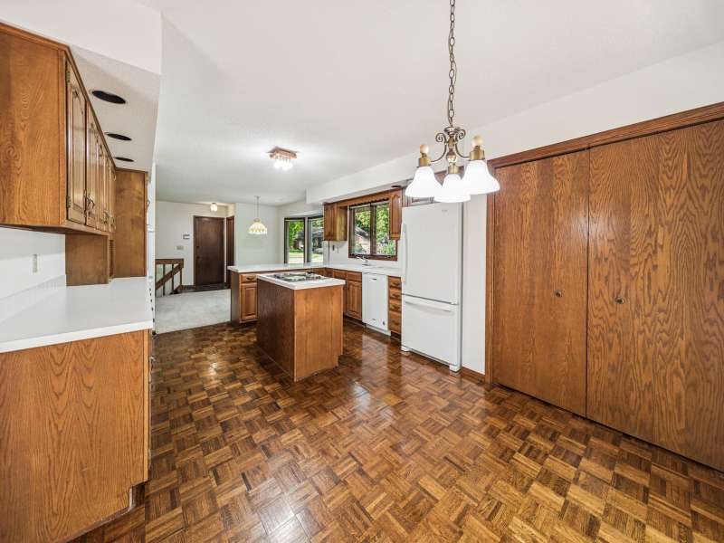 One owner 3,759 SF walk-out ranch on a quiet wooded cul-de-sac .48 acre lot. The main floor has 3 BRs, 2 full baths, formal living room, formal dining room, family room with wood burning fireplace, eat-in kitchen with island and lots of cabinets, primary bedroom with walk-in closet, primary bath with separate tub and shower, full hall bath with tub/shower. The walk-out basement has two more BRs, bath, a large 1,156 SF family room with second wood burning fireplace, walk-behind wet bar with refrigerator and laundry with washer and dryer. Outdoor living includes a 390 SF deck and a130 SF patio. The home is immaculate and well-cared for; just ready for some updates. This street was featured in the annual home show in 1983. Updates are roof (2019), furnace (2010) & air conditioner (2010).