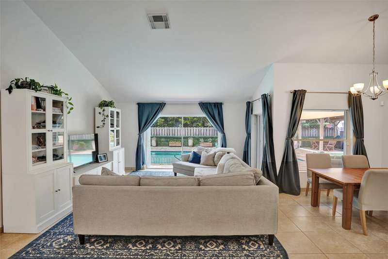 Let’s start from the top- this stunning Cooper City home is getting a new roof before closing! Tucked under beautiful trees in Cooper's Place, this 3-bedroom, 2-bath home with a den/office (or 4th bedroom) is beautifully updated with vaulted ceilings, lots of natural light, and a spa-worthy primary bath. Outside, your newly renovated private retreat awaits with heated saltwater pool and jacuzzi. Relax or entertain while enjoying the privacy landscaping and shaded cooking, dining and lounging areas. You'll love the charming neighborhood with park a short walk away and A-rated schools- fishing fans have fun at the pond next door. Move fast, you could be living your new life here by year’s end!