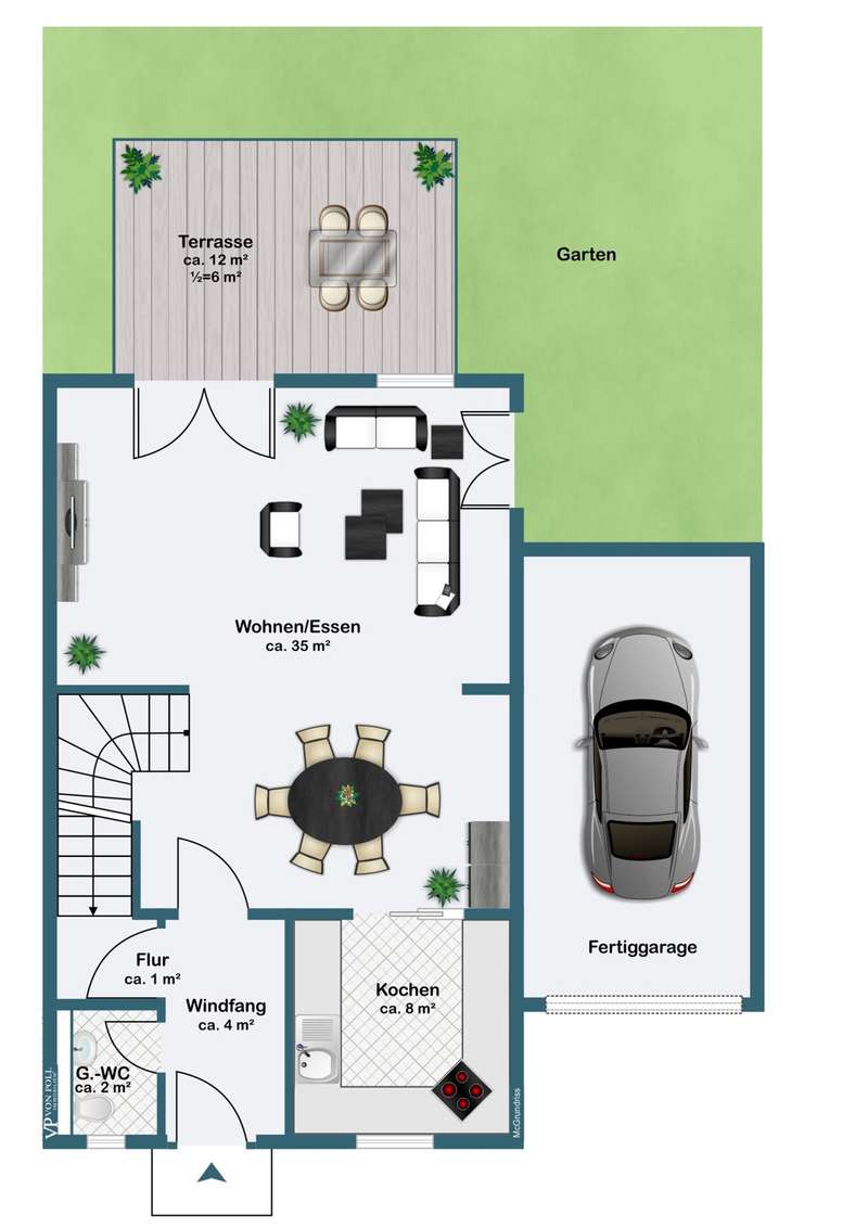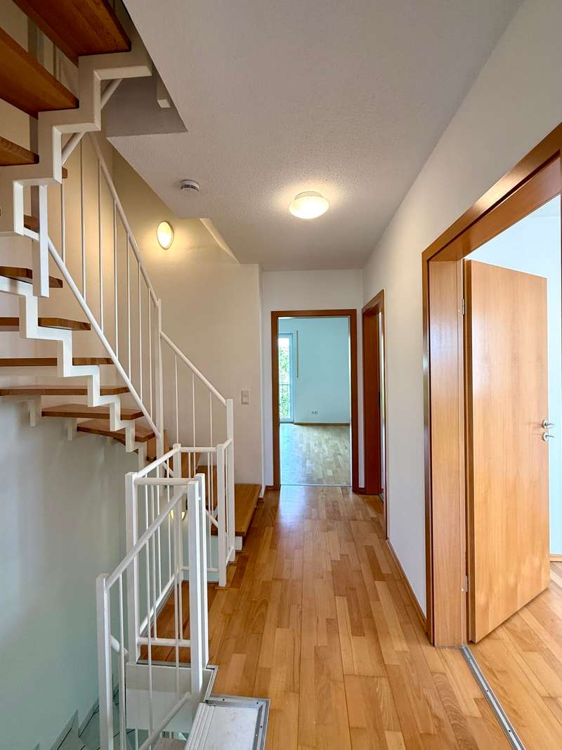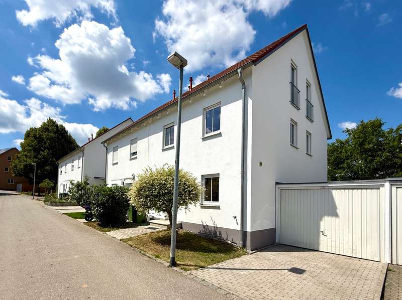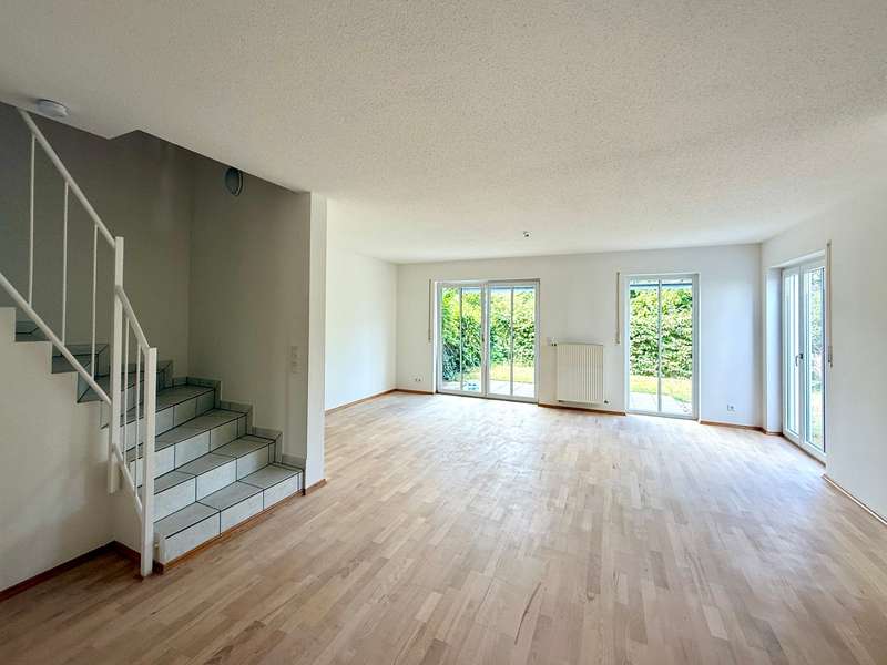 In a prime residential location in the south of Regensburg, quietly situated in a well-kept residential street without any through traffic, this extraordinary semi-detached house presents itself as a true home with character, style and a lot of feeling. Situated at the end of the last row of houses, it opens up a spacious living environment with approx. 145 m² of living space, spread over two floors and a converted attic studio - nestled in a lovingly landscaped garden that nestles gently around the house. Even the first impression is impressive: a small front garden with the option of a charming seating area welcomes residents and guests alike. The modern glass front door with triple locking leads into an inviting entrance hall, which not only offers space for a wardrobe with built-in cupboards, but also provides access to a bright guest WC with natural light. Elegant borders and tasteful tiles create a stylish accent that runs like a common thread through the entire property. Inside, the light-flooded living and dining area opens up - the heart of the house. The high-quality parquet flooring lends warmth and elegance to the spacious room, while floor-to-ceiling windows provide a view of the idyllic garden. Living, living and relaxing blend harmoniously here: whether it's cozy evenings with the family, dinner with friends or simply quiet moments with a book - this place offers space for everything that makes life beautiful. Adjacent is the stylish fitted kitchen, which is already fully equipped - with ceramic hob, oven, stainless steel extractor hood, sink and fridge. The combination of light-colored fronts and warm wooden accents creates a modern, homely atmosphere. Generously proportioned and functionally planned, this room invites amateur chefs to let off steam creatively. A practical sliding door provides a direct transition to the dining area - short distances, great effect. A real highlight is the spacious west-facing terrace, which is complemented by a stylish glazed roof. It provides reliable protection from the wind, sun and rain without restricting the view outside. This area thus becomes an extended living space - ideal for outdoor breakfasts, relaxed reading sessions or convivial barbecue evenings, regardless of the weather. The adjoining garden delights with decorative elements, secluded seating areas and plenty of space for children or green hobbies. The result is a very personal oasis of well-being - in the middle of the city and yet wonderfully quiet. An elegant tiled staircase with a white metal handrail leads to the upper floor, which impresses with its bright rooms and well thought-out floor plan. The modern daylight bathroom is equipped to a high standard with a shower, bathtub and washbasin - a place to take a deep breath and relax. The bedroom offers enough space for a large bed and other pieces of furniture, while two further rooms with floor-to-ceiling windows and French balconies create a pleasantly open feel. Whether as a children's room, guest room or home office - there is space here for every phase of life. The impressive staircase with real wood steps takes you up to the 2nd floor in style." Another highlight of the property unfolds in the converted attic studio: the high, open room with rustic wooden beams and two floor-to-ceiling French windows with French balconies offers a very special ambience. Whether as a studio, playroom, retreat or creative space - this is your very own personal favorite place. The prepared cable routing even opens up the possibility of adding a small bathroom to this area and thus using it as an independent living unit. The basement is also impressive: a spacious hobby room offers space for sports activities, creative hobbies or a cool bedroom on hot summer days. The basement is complemented by a large storage room and a functional laundry and boiler room - well thought-out, practical and ready for your individual needs. A private garage right next to the house rounds off the offer and provides comfort and security in everyday life. This stylish semi-detached house combines high-quality fittings, a generous room layout and an exceptionally quiet location to create a very special overall package. Whether as a family nest, retreat or life project - this is not just a new home, but a place to arrive, feel good and stay. Sale against bid in a bidding process - minimum offer 445,000 euros. Viewing possible on Saturday, 19.07.25 at 14.00 hrs. Please register in advance for the viewing. Let yourself be inspired by this special property during a personal viewing - we look forward to hearing from you.
