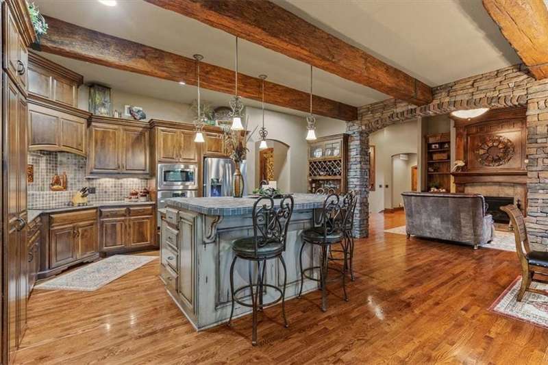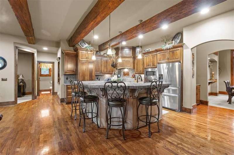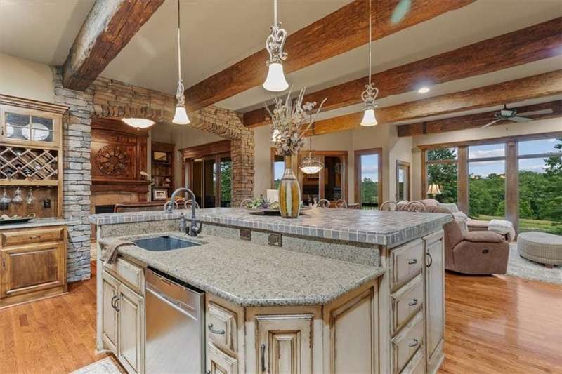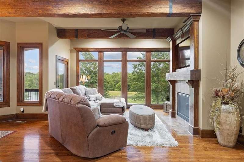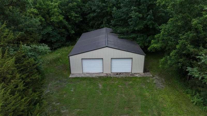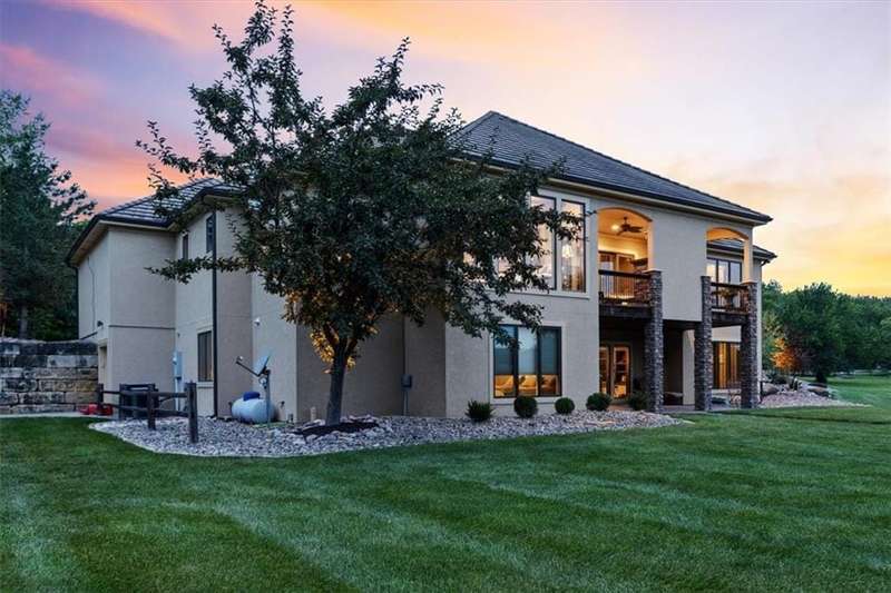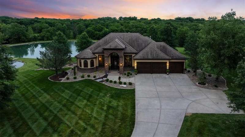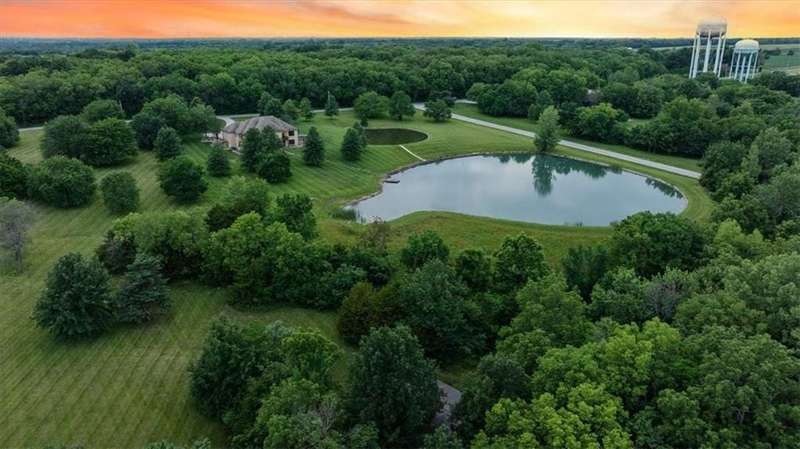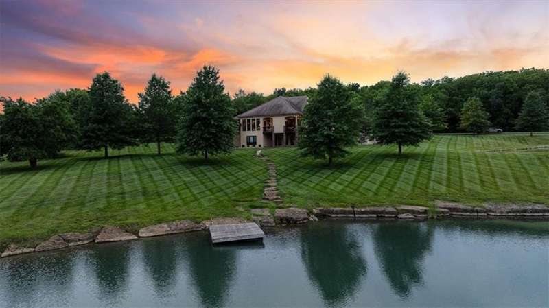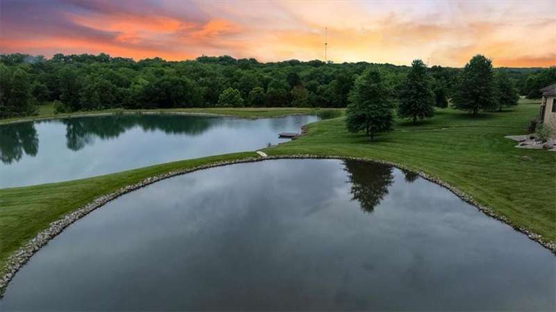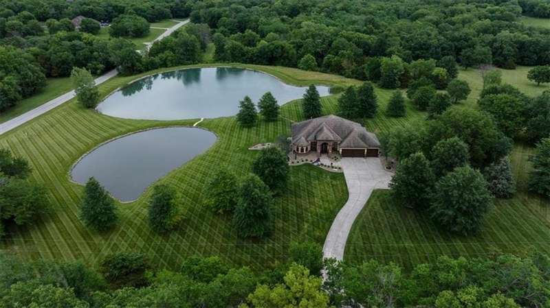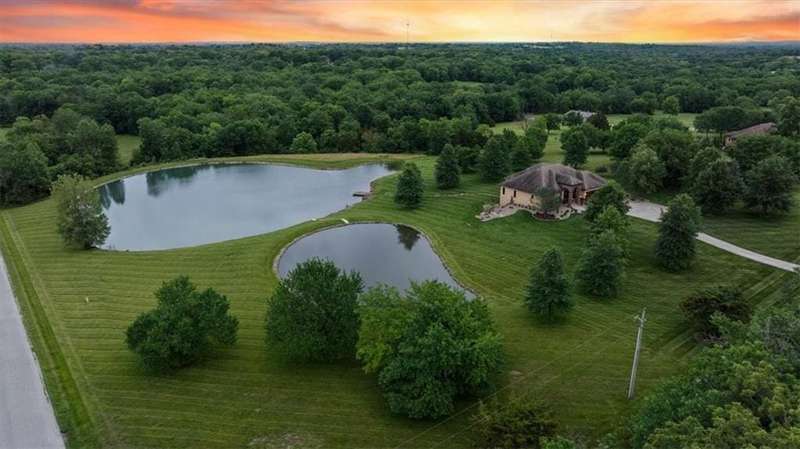Tucked away in a serene, park-like setting, this stunning custom-built estate offers a rare blend of privacy, luxury, and breathtaking natural beauty. Perfectly positioned on just over 10 acres, the home overlooks picturesque, fully stocked ponds surrounded by mature trees, meticulously maintained grounds, and a backdrop of nature. A covered deck with an outdoor fireplace provides the perfect place to unwind while enjoying the peaceful views, and expansive windows throughout the home bring the beauty of the outdoors in. Inside, youll find high-end finishes, an open-concept layout ideal for entertaining, and a walkout lower level that leads to a private patio and dock. The thoughtfully designed layout allows plenty of space to add a pool, garden, or additional outdoor features to truly make this your own. A detached 36x48 outbuilding provides the perfect space for a workshop, storage, or hobby area. Whether youre sipping coffee on the deck, casting a line from the dock, or enjoying an evening under the stars, this property is designed for both relaxation and entertainment. With convenient access to Raymore, Lees Summit, and Kansas City, it offers the best of both worldssecluded countryside living with city amenities just minutes away. This one-of-a-kind property is a rare opportunityschedule your private tour today!