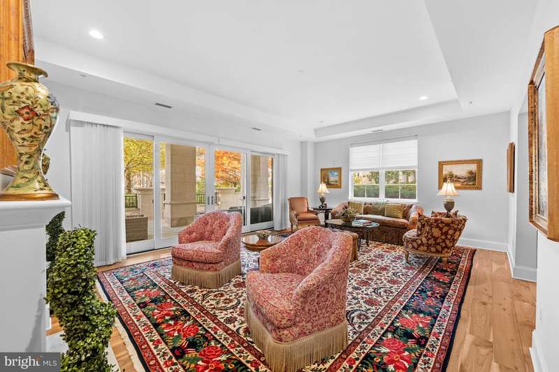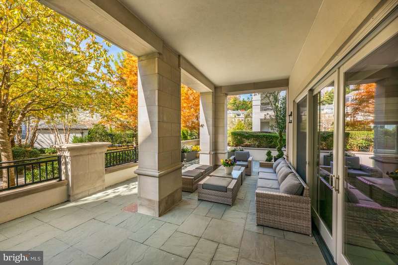A once in a lifetime opportunity to own this stunning and rarely available Quarry Springs main level luxury true 3 bedroom condominium with three landscaped terraces surrounded by the gardens of the property. This residence lives as if it were a one story home with artfully crafted room sizes and an exciting floorplan.The captivating room sizes are expanded by the outdoor living spaces seen from almost every room. Top of the line finishes and mouldings, along with top of the line appliances are the hallmarks of this very special residence. The entry foyer has a gallery feel with more than ample space for artwork. A welcoming living room with fireplace opens to the full size dining room, The spacious gourmet kitchen, flooded with light will delight you with marble countertops, and an oversized marble island that is adjacent to an expansive family room opening to one of the 3 terraces. The primary suite with spacious bath and more than ample closet space opens to its own terrace. Two additional bedrooms and a shared bath along with an elegant powder room and separate laundry room complete the main level.Quarry Springs is a private gated luxury community with clubhouse, pool and 24 hour security at the gatehouse and a 24 hour concierge in the lobby of the building. Luxury living at its finest in a secure gated community. Two car assigned garage parking is included with the residence and has elevator access to the lobby of the building. Approximately 25 minutes to Dulles and Reagan airports, and the White House. All the benefits of luxury living with a minimum of maintenance. Hurry this home is special!