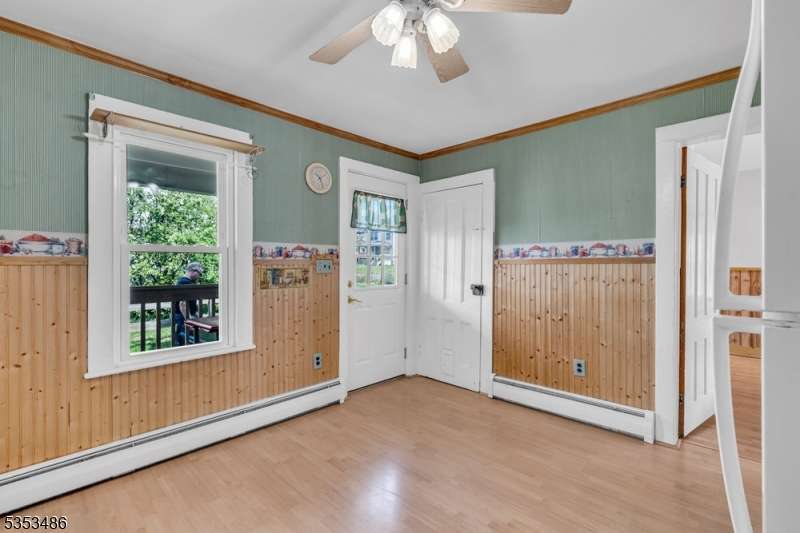 Welcome to this spacious 4-bedroom Colonial offering a blend of classic charm and thoughtful updates. This older home features three generously sized bedrooms upstairs, all with brand-new flooring and ceiling fans, plus a custom-built hallway closet and an updated full bathroom. A convenient fourth bedroom is located on the first floor and is fully handicap accessible perfect for guests. Enjoy relaxing in the oversized living room or on the cozy front porch. The formal dining room features recessed lighting and laminate flooring, while the large eat-in kitchen provides plenty of space for daily meals and gatherings. An oil furnace located in the basement provides efficient heating and also supplies the home's hot water. Additional highlights include a covered deck with built-in lighting ideal for entertaining and pull-down stairs leading to the attic for extra storage. A handicap ramp makes entry easy and accessible. This home has room to grow and adapt to your needs!