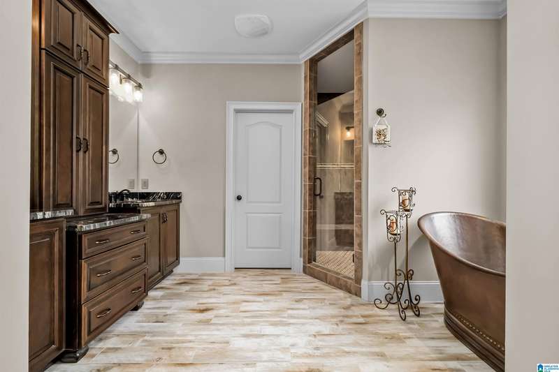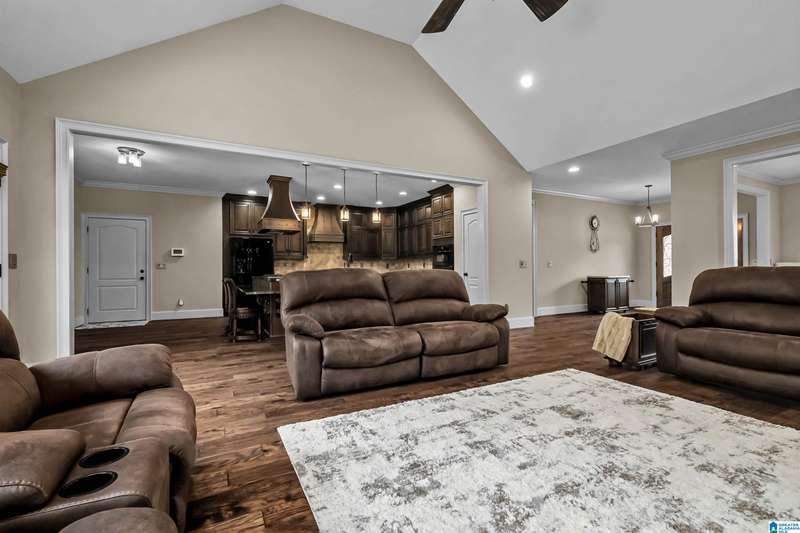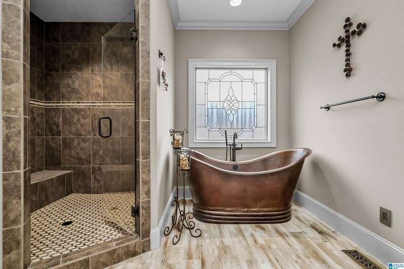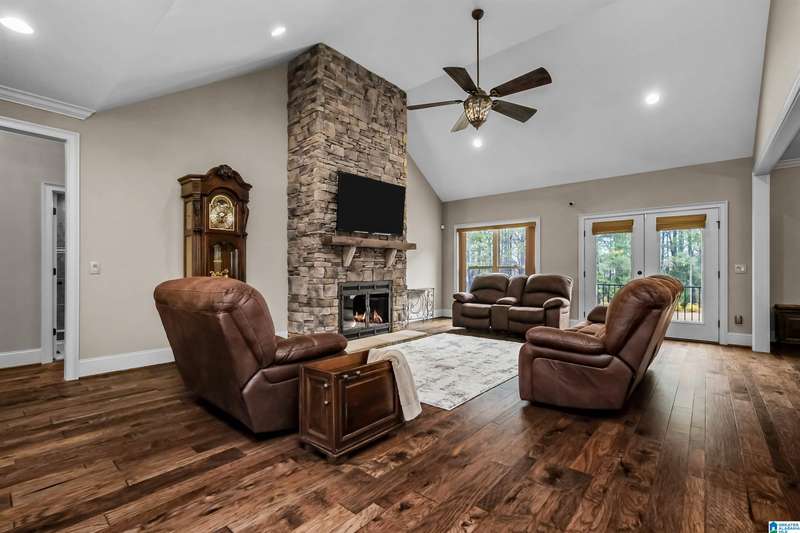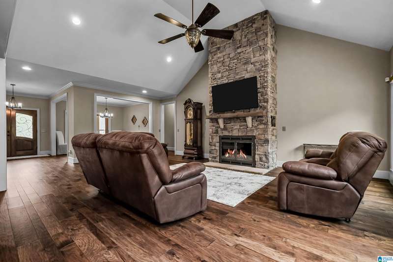 NEW PRICE! Discover over 2,600 square feet of single-level luxury living on prime real estate in the heart of Calera! This incredible home combines convenience with acreage, and sits just minutes from grocery stores and tons of dining options. High-end finishes include a gourmet kitchen featuring stunning copper sink, Wolf built-in deep fryer and grill, granite countertops and rich hardwood flooring throughout. HUGE master suite bedroom with walk-in closets, custom built in shelving & gorgeous master bathroom filled with everything you could possibly want! This home boasts an oversized garage with 12' tall doors and TONS of parking, perfect for your camper or specialty vehicles. Meticulously landscaped with irrigation system and landscape lighting, this property is ideal for the outdoor lover, perfect for entertaining, gardening, or simply enjoying your own private sanctuary. Experience the perfect blend of luxury living on 2.6 acres, but still SO close to everything!