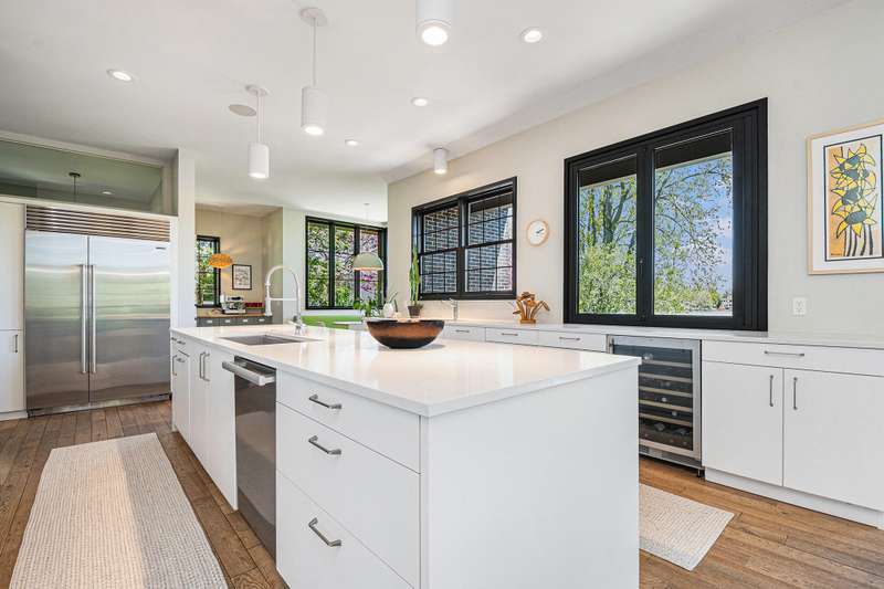 Very rare East Grand Rapids offering that includes two houses: a newer generation 4,900+ square foot custom-built waterfront main house and a 1,100+ square foot guest house that was originally part of the Blodgett Estate. The homes are separately deeded but are being sold together. The combined site is 2.4 acres with 310 feet of frontage on Fisk Lake and the channel leading to Coldbrook Creek. The setting is spectacular with enormous open space and sweeping views of the lake and creek. Fisk Lake, a private lake in the heart of East Grand Rapids, is an 80-foot-deep, spring fed, all-sports lake. Enjoy amazing sunrises from the main house, which is a modern masterpiece designed by Via Design with views from nearly every room. When you walk in the front door, you are immediately drawn in by the gleaming waters of Fisk Lake. The sunken living room is a light-filled space with corner windows, a gas fireplace, stone hearth, exposed beams, sliders to the patio, and a cozy reading nook; the gourmet kitchen features Leicht cabinetry, a huge island, 48" Subzero, 48" Five Star range, Miele dishwasher, wet bar with beverage fridge, a walk-in pantry, breakfast nook, coffee bar with filtered water dispenser, and a private office/planning space; the back hall has a huge walk-in coat closet, powder room, and mudroom. Upstairs you'll find a generous primary suite with vaulted ceilings, private deck with a gas fireplace, two walk-in closets, and private bath; three additional ensuites with private baths; and a central laundry room with custom cabinetry. The finished lower level offers a family room, wet bar with beverage fridge, full bath, and exercise room plus outdoor stairs for easy access to the lake. There was no expense was spared in the use of materials and build quality. The Gatehouse is absolutely charming and perfect for guests or use as a rental. See extensive media and attached "Features" sheet for more details. Sale includes Main House at 1950 Robinson Rd SE & Gatehouse at 1990 Robinson Rd SE (PP#41-14-28-376-020). Road frontage, acreage, taxable value, assessed value, property taxes, square footage, bedroom/bath count, garage spaces, etc. are a TOTAL of both properties. Seller is licensed real estate agent in the State of Michigan.