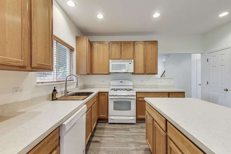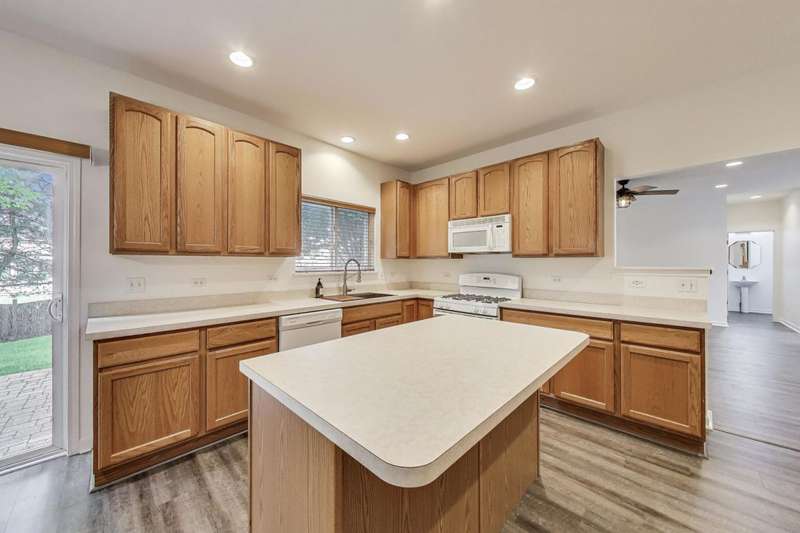 Spacious and beautifully maintained 2,712 sq. ft. Colonial in a sought after neighborhood! Features 4 bed/2.5 bath including newer laminate floors, neutral decor, and a large island kitchen with 42 cabinets, and a generous eating area. The inviting family room boasts a cozy fireplace, while the main floor offers a private study, 9' ceilings, bay windows, and convenient laundry. The king sized primary suite includes a walk-in closet and a luxurious bath. Enjoy the professionally landscaped, and fully fenced yard. Full unfinished basement with tall ceilings, nearby park, and new roof/gutters (2023). An exceptional value for the space!