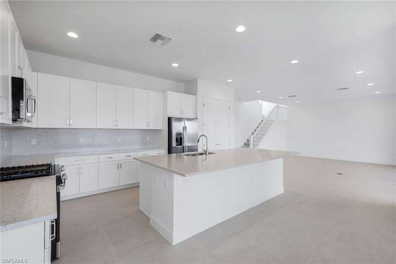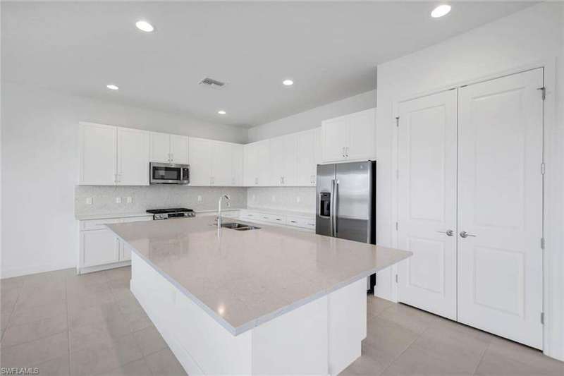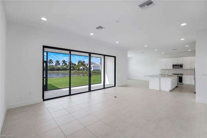 New construction available for Immediate Occupancy! This "Denali" home with Lake View offers Impact Resistant Windows throughout and has 4 Bedrooms plus a Loft, 4 Baths, and a 2-Car Garage, an open kitchen with stainless steel GE Appliances including Gas Cooktop and Quartz Countertops. The master bedroom offers a coffered ceiling, spacious closets and master bath. Other features include: upgraded window coverings, modern exterior with cultured stone, and room for a future pool if desired. RiverCreek is Estero's hottest new gated community and features numerous amenities for everyone including a 12,000 square foot Clubhouse with Resort-style pool, event room, fitness center, indoor sports court, tennis, pickleball, basketball and more!