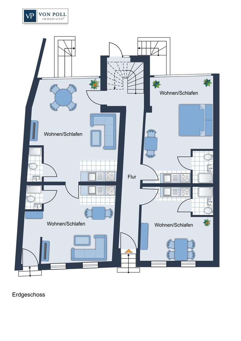 This extensively modernized apartment building combines generous living space, flexible floor plans and high-quality fittings. With approx. 290 m² of living space and a plot of approx. 1,117 m², the property opens up a wide range of possible uses - whether as a multi-generational home, shared apartment, with small apartments that can be rented separately or as an attractive investment. As part of the core refurbishment, the building was extended and the roof, windows, doors, all pipes and the heating system were replaced. The newly designed floor plans are geared towards modern living requirements and create bright, optimally usable rooms. A total of 13 rooms are available, including 10 bedrooms, complemented by 8 high-quality bathrooms. This means that three to eight separate residential units can be created, either as spacious family apartments or smaller, separately rentable apartments, depending on requirements. The furnishings impress with their timeless elegance and high level of comfort: underfloor heating, modern floor coverings and a stylish fitted kitchen create a pleasant living ambience. A spacious terrace with a permanently installed fireplace and an outdoor kitchen with a separate toilet invite you to enjoy sociable evenings outdoors. A digital intercom system with code entry provides additional security and convenience. Large windows ensure optimal lighting, while the new roof not only increases energy efficiency but also improves living comfort on the upper floors. The outdoor area also opens up numerous possibilities. In addition to the spacious terrace, the property offers space for garden lovers, play and leisure areas or the creation of a natural retreat. This property thus combines contemporary living quality with a high degree of flexibility and future security. This modernized apartment building offers well-designed living space with upscale furnishings on several levels. The combination of many bedrooms and bathrooms as well as the possibility of creating several residential units make this property particularly interesting for discerning buyers. If you are interested in viewing the property, we will be happy to answer any questions you may have in advance about the layout and possible uses. An energy certificate was not yet available at the time of the exposé.
