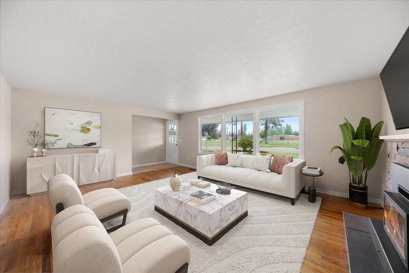 Welcome to this fully renovated rancher in the sought-after Kokomo neighborhood featuring 4+ bedrooms and 3 bathrooms with an attached 2-car garage situated on an oversized lot. The main floor boasts a large new kitchen with stainless appliances and hard-surface counters, dining area, living room with fireplace, bathroom and three bedrooms including a master suite with private bath. The finished basement offers a spacious family room with fireplace, bedroom with full bath, ideal as a second master, plus an office/bonus room and laundry with lots of storage. Outside, enjoy your private oasis on the covered back patio, perfect for entertaining. Recent upgrades include all new kitchen, new flooring, fresh interior/exterior paint, gutters, light fixtures, HVAC system and a new garage door. Conveniently located just steps from University Elementary, Browns Park, Dishman Hills Conservancy and the Centennial Trail with easy access to shopping, dining, and downtown Spokane.