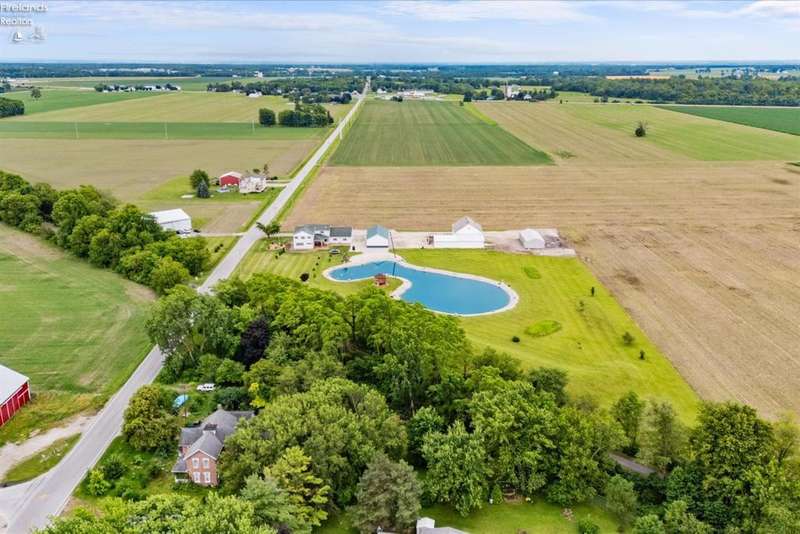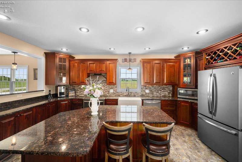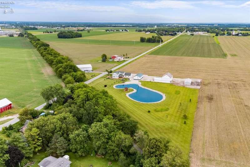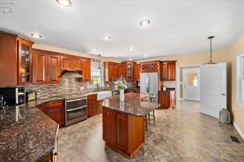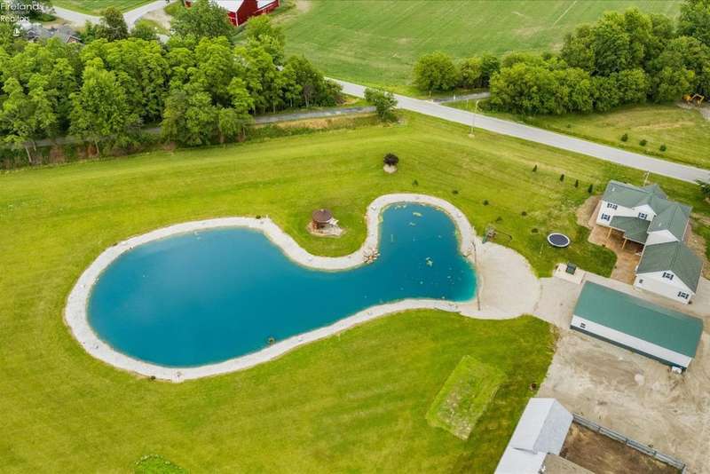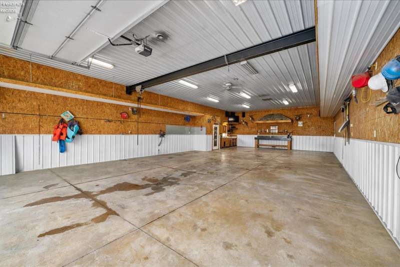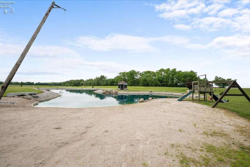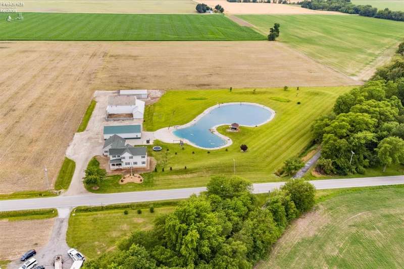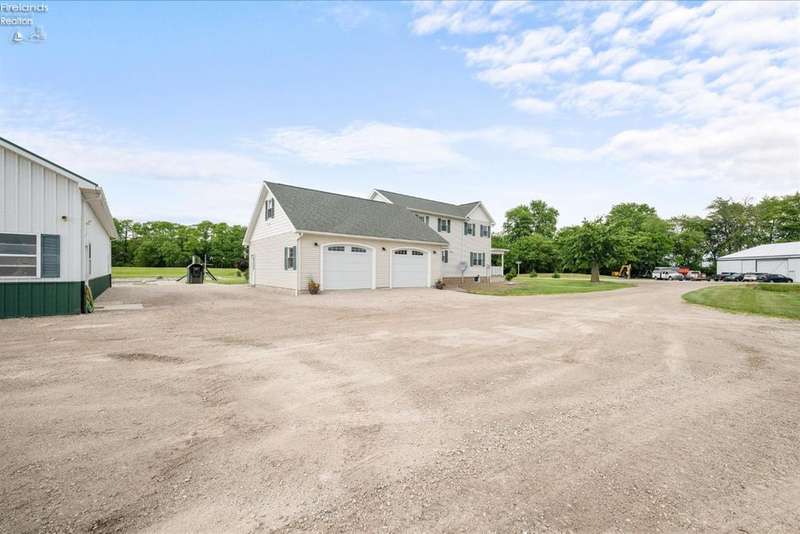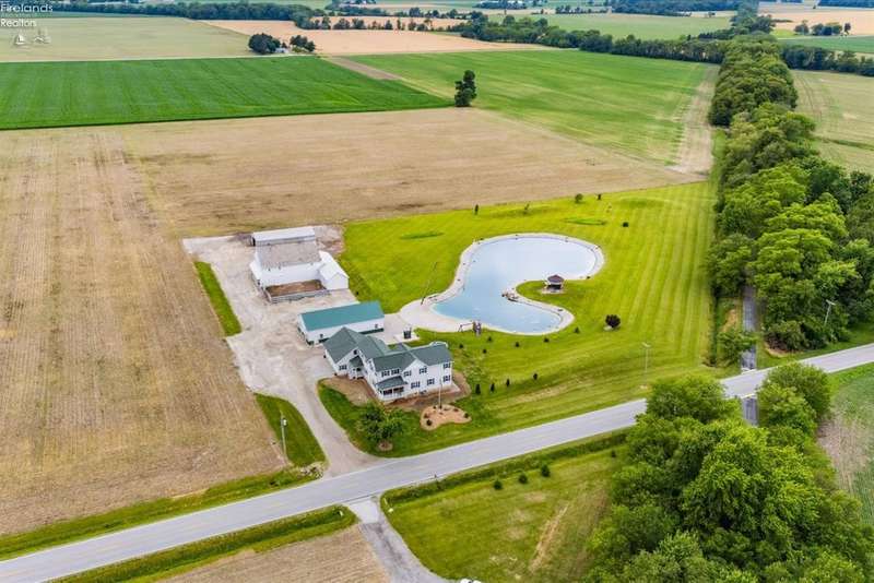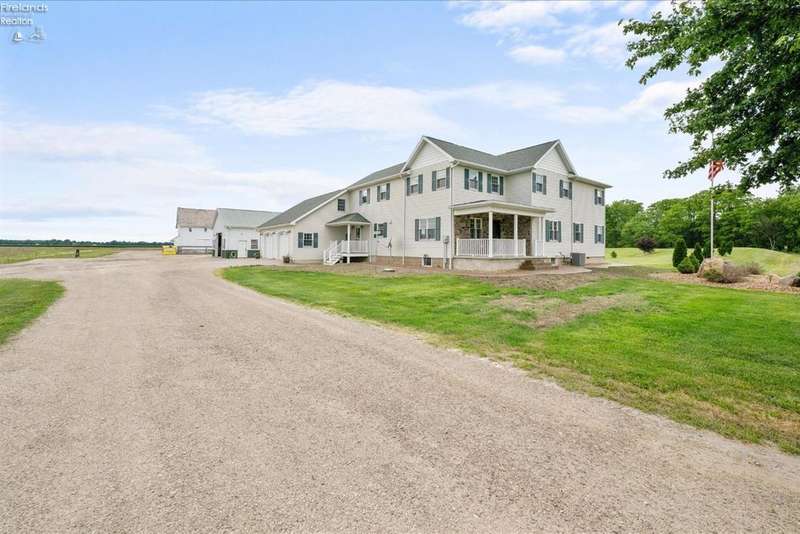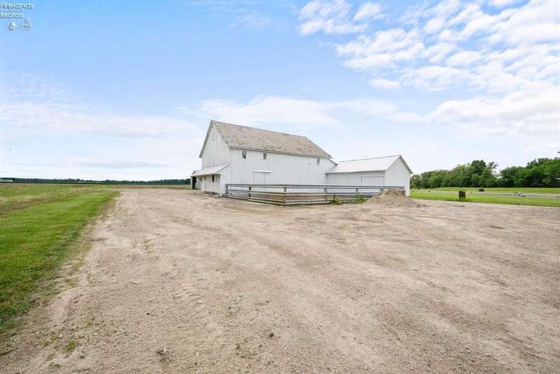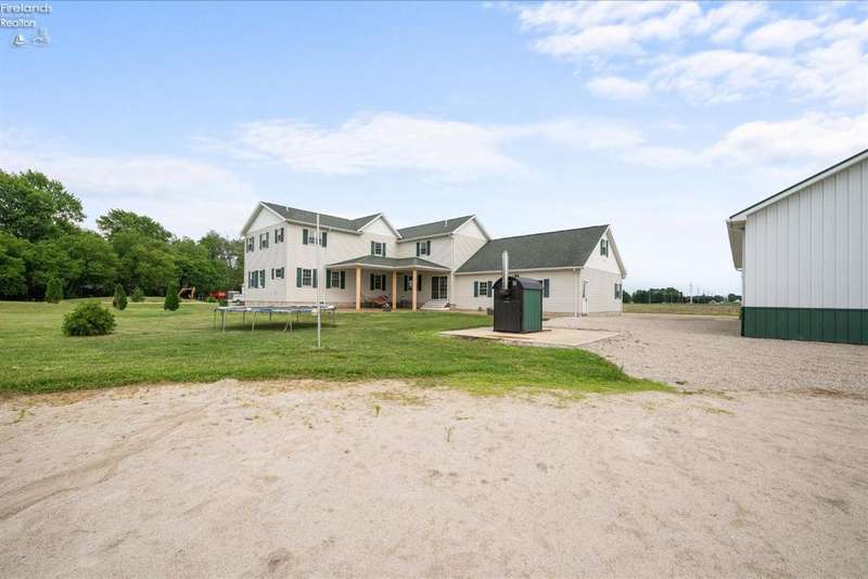 Discover your dream property that checks all the boxes! This stunning estate features a charming grain bin gazebo, a sandy beach, 4.7+ acres and a spacious 60x30 heated shop complete with concrete flooring, water, and a bathroom. The large wooden barn is perfect for animals or extra storage. Inside, the 4-bedroom, 2.5-bath home boasts over 3,000 sq ft of living space, highlighted by a cozy living room with a stone gas fireplace and custom wood beam mantle. The master suite is a true retreat with a clawfoot tub, walk-in closet, and shower. Enjoy cooking in the beautiful kitchen featuring rustic cherry cabinetry, granite countertops, and a porcelain farm sink, plus a convenient walk-in pantry and eating island. With formal dining, an office above the garage, and three covered porches connected by stained stamped concrete sidewalks, this property is a perfect blend of luxury and functionality. Plus, it's right next to the North Coast Inland bike trail for outdoor enthusiasts!