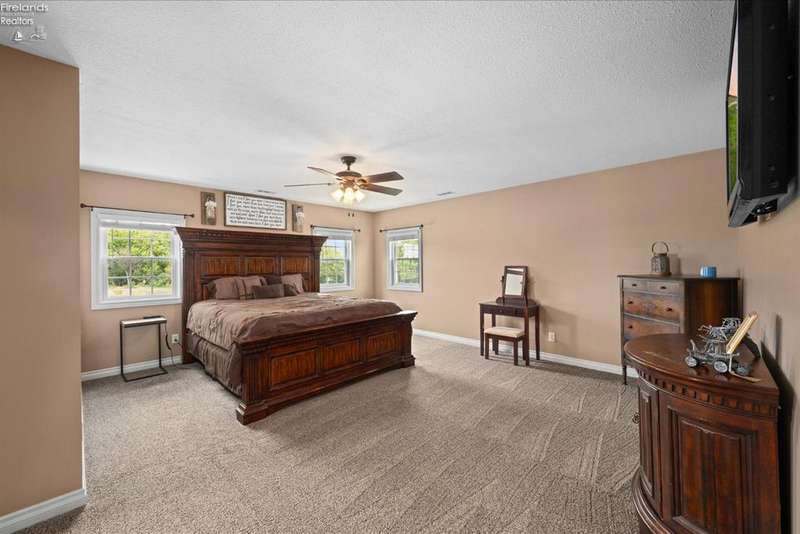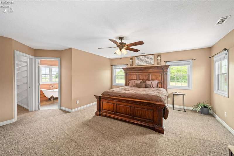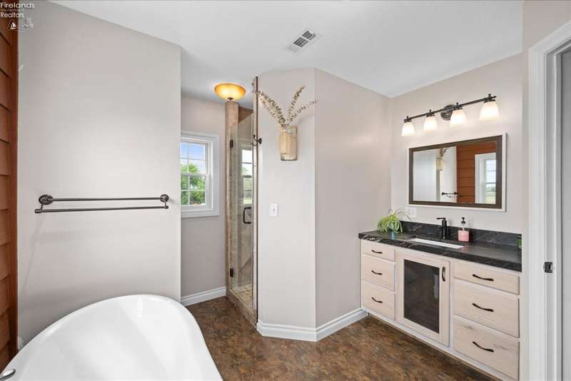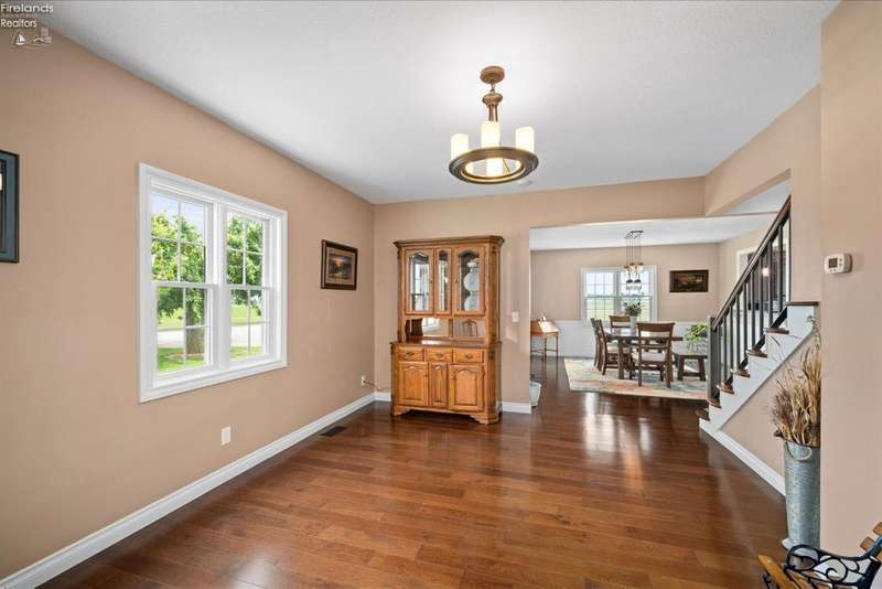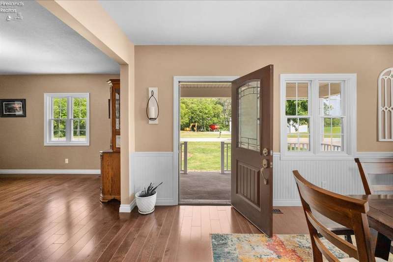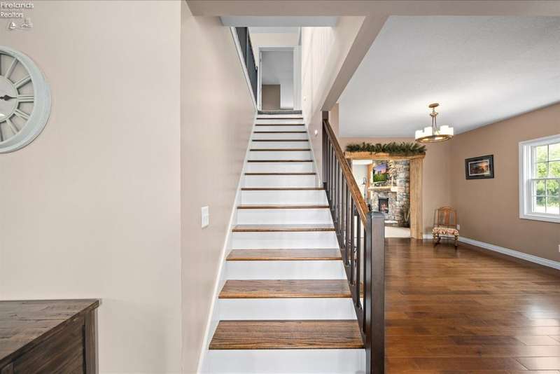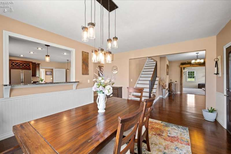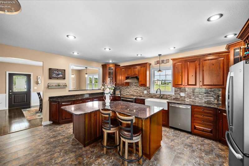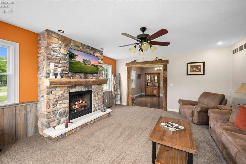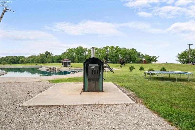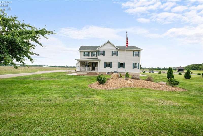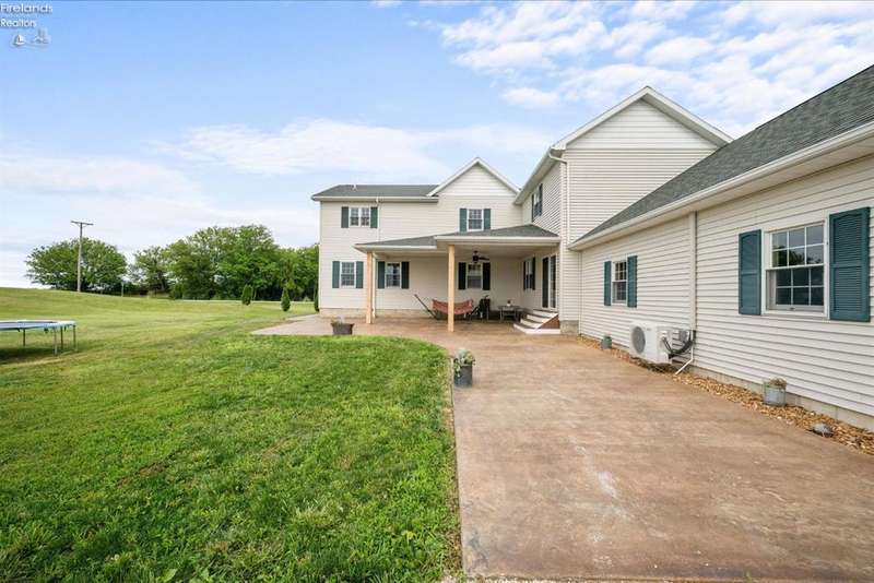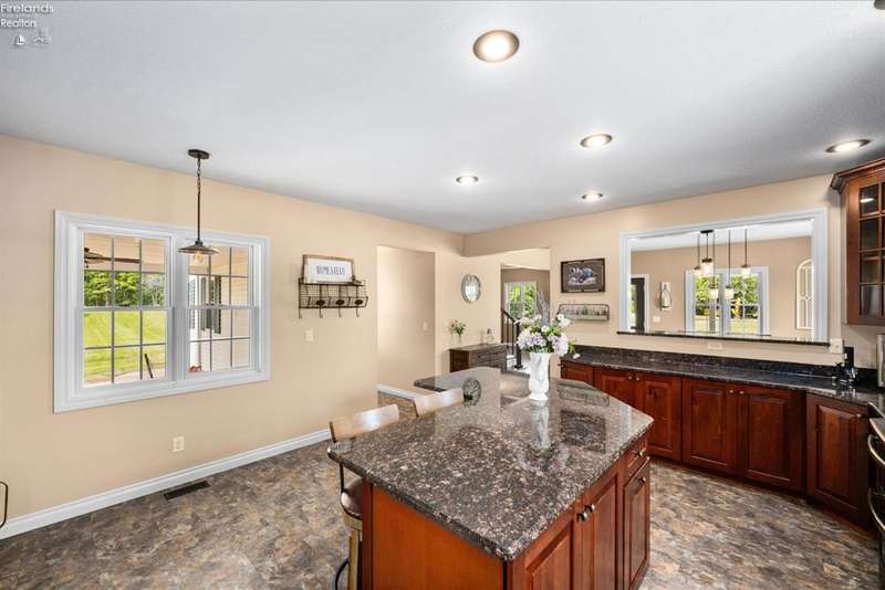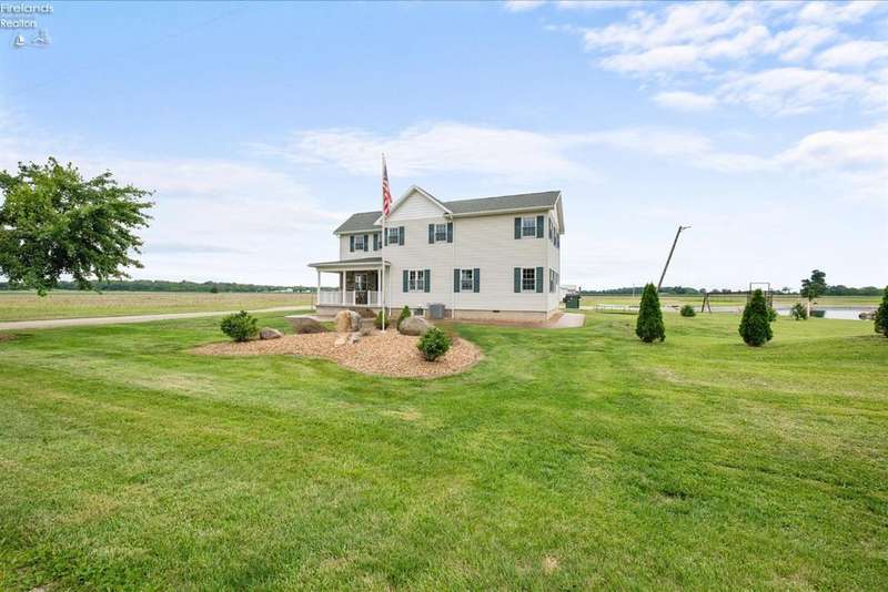 Discover your dream property that checks all the boxes! This stunning estate features a charming grain bin gazebo, a sandy beach, 4.7+ acres and a spacious 60x30 heated shop complete with concrete flooring, water, and a bathroom. The large wooden barn is perfect for animals or extra storage. Inside, the 4-bedroom, 2.5-bath home boasts over 3,000 sq ft of living space, highlighted by a cozy living room with a stone gas fireplace and custom wood beam mantle. The master suite is a true retreat with a clawfoot tub, walk-in closet, and shower. Enjoy cooking in the beautiful kitchen featuring rustic cherry cabinetry, granite countertops, and a porcelain farm sink, plus a convenient walk-in pantry and eating island. With formal dining, an office above the garage, and three covered porches connected by stained stamped concrete sidewalks, this property is a perfect blend of luxury and functionality. Plus, it's right next to the North Coast Inland bike trail for outdoor enthusiasts!