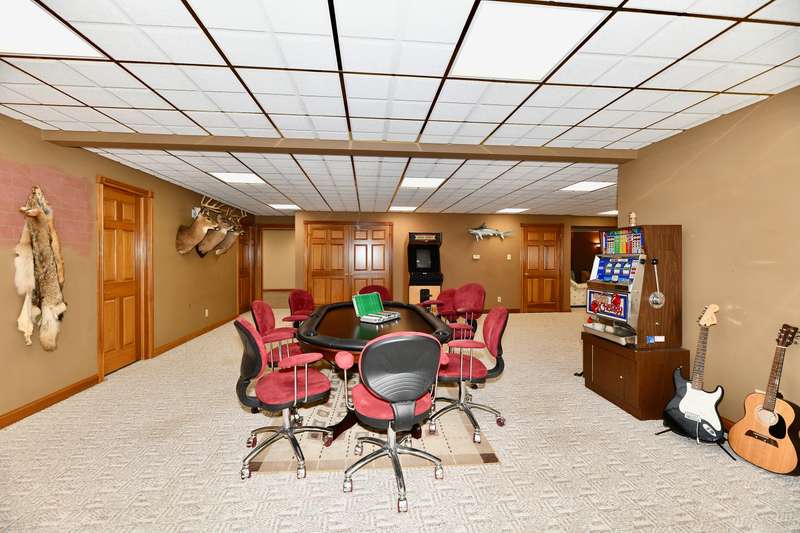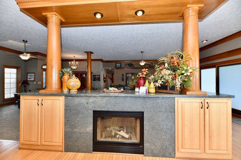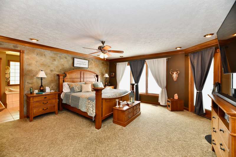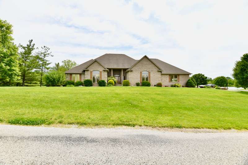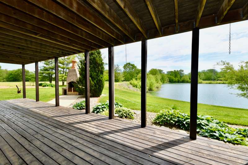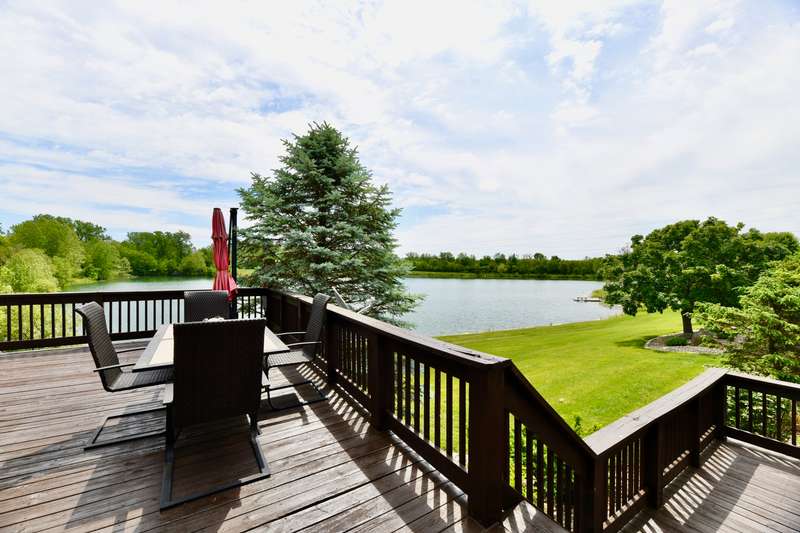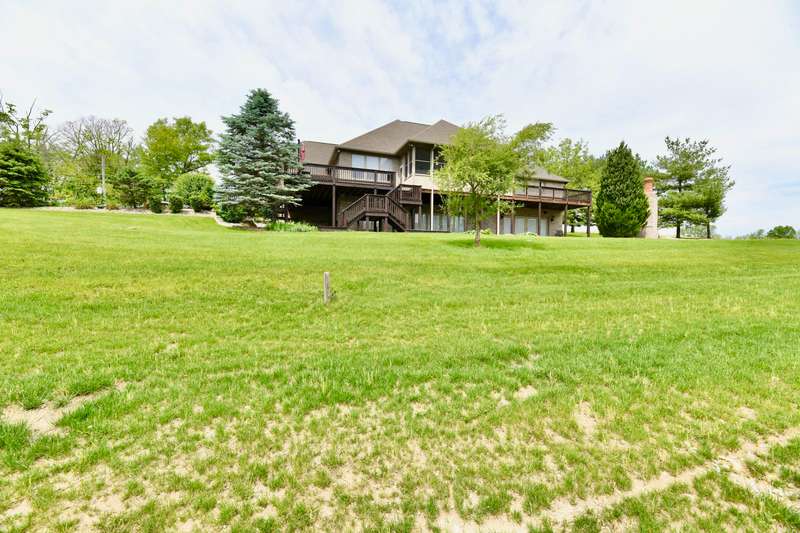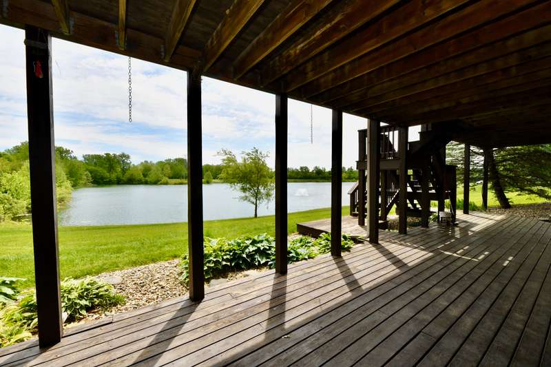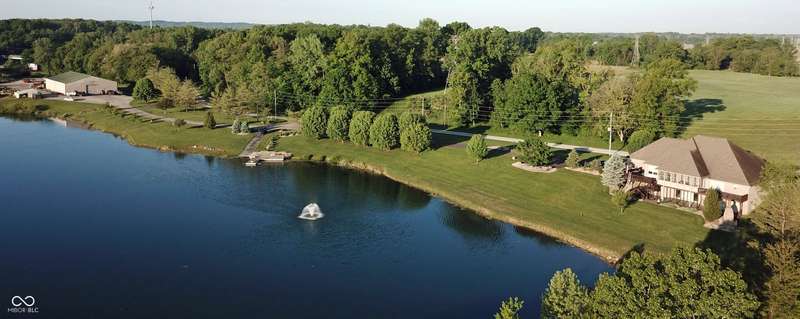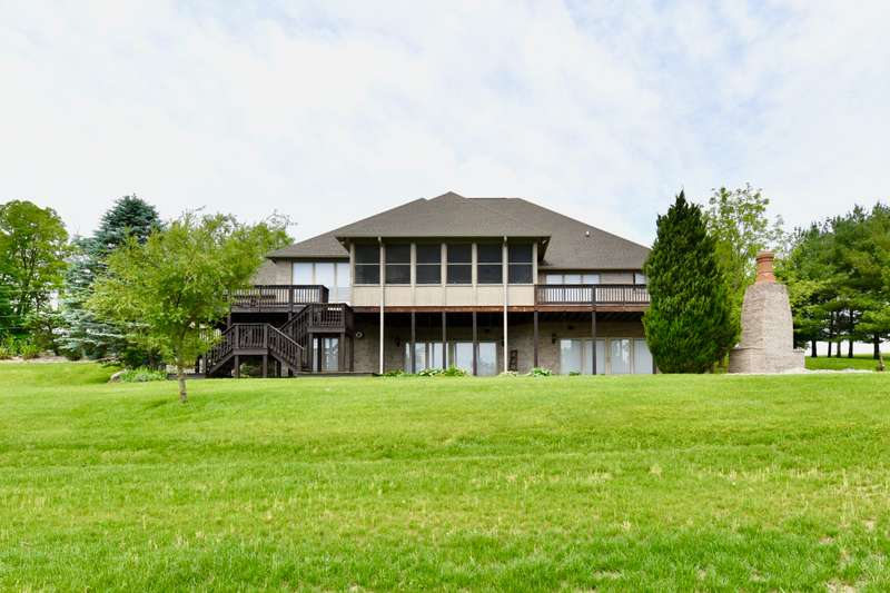 Welcome to your dream estate, a fisherman's paradise spanning over 30 acres. Dive into the peaceful 15-acre lake, hand-stocked and maintained for prime fishing, complemented by a private pond, dock, and boat ramp. This serene location is perfect for those seeking privacy and tranquility, while the versatile C4-zoned pole barn opens doors to various opportunities, whether for business or storage. Step inside to discover a beautifully designed open-concept layout that integrates the kitchen, dining, and great room, all centered around a striking two-sided fireplace. The kitchen's granite countertops and huge windows fill the space with natural light, offering breathtaking views of the lakefront. Each of the three bedrooms on the main level has its own full bath, ensuring comfort and privacy for family and guests. The lower level is an entertainer's dream, featuring a spacious recreation room, a dedicated theatre, and a wet bar and fourth bedroom. This level also includes an office, a bonus room with a closet and door for privacy, and a space for a gym-offering flexibility for work, hobbies, and fitness. Large 8-foot windows open to a paved patio, where you'll find a charming chimney fireplace, ideal for evening gatherings or outdoor dining. The upper level features a private deck, while the primary bedroom boasts its own balcony, creating a secluded retreat for relaxation and morning coffee. This extraordinary estate offers a harmonious blend of luxury, functionality, and natural beauty. Don't miss your chance to own this slice of paradise. Schedule a private tour today and start living the life you've always imagined. Can be bundled with adjacent 13 acre ag land blc 21978743