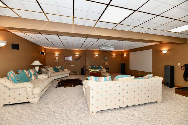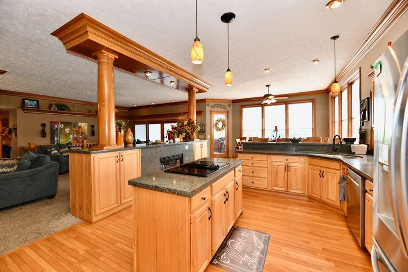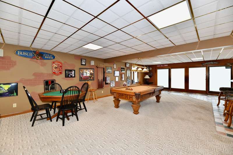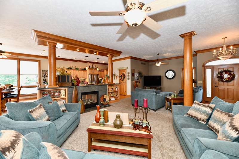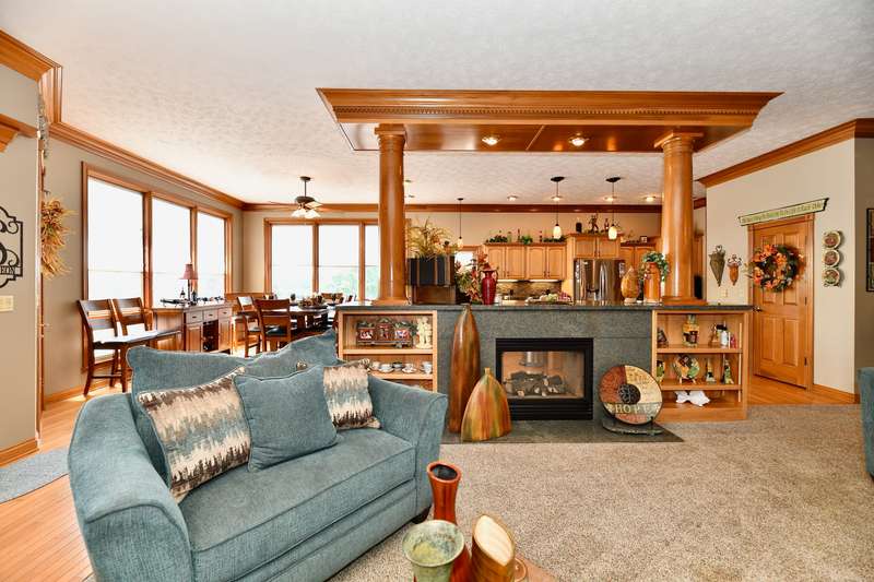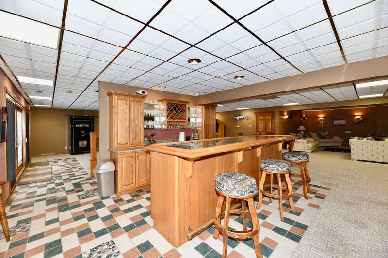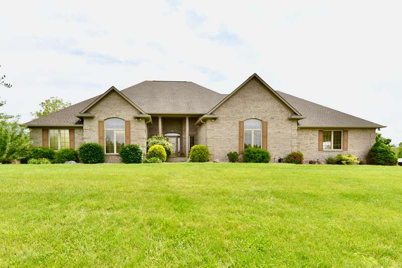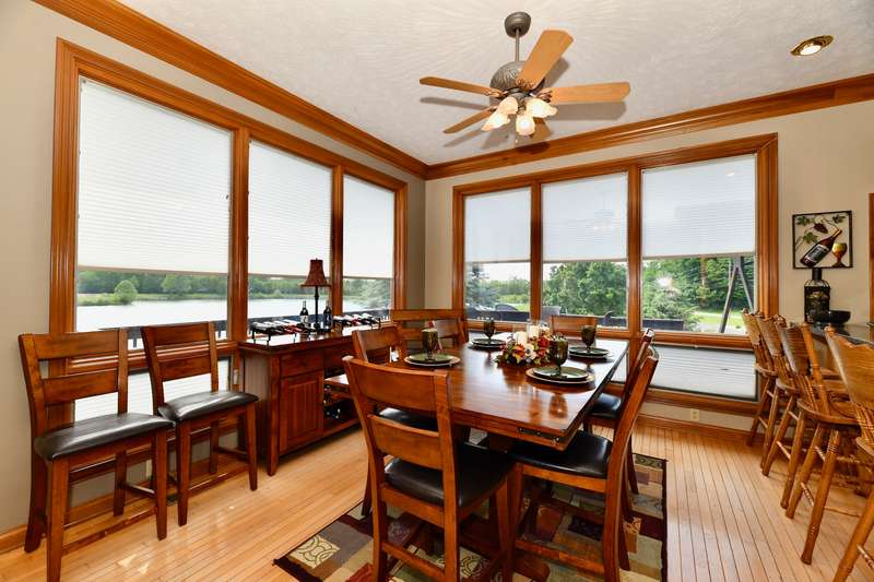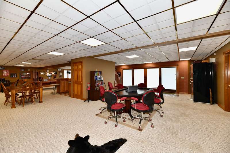 Welcome to your dream estate, a fisherman's paradise spanning over 30 acres. Dive into the peaceful 15-acre lake, hand-stocked and maintained for prime fishing, complemented by a private pond, dock, and boat ramp. This serene location is perfect for those seeking privacy and tranquility, while the versatile C4-zoned pole barn opens doors to various opportunities, whether for business or storage. Step inside to discover a beautifully designed open-concept layout that integrates the kitchen, dining, and great room, all centered around a striking two-sided fireplace. The kitchen's granite countertops and huge windows fill the space with natural light, offering breathtaking views of the lakefront. Each of the three bedrooms on the main level has its own full bath, ensuring comfort and privacy for family and guests. The lower level is an entertainer's dream, featuring a spacious recreation room, a dedicated theatre, and a wet bar and fourth bedroom. This level also includes an office, a bonus room with a closet and door for privacy, and a space for a gym-offering flexibility for work, hobbies, and fitness. Large 8-foot windows open to a paved patio, where you'll find a charming chimney fireplace, ideal for evening gatherings or outdoor dining. The upper level features a private deck, while the primary bedroom boasts its own balcony, creating a secluded retreat for relaxation and morning coffee. This extraordinary estate offers a harmonious blend of luxury, functionality, and natural beauty. Don't miss your chance to own this slice of paradise. Schedule a private tour today and start living the life you've always imagined. Can be bundled with adjacent 13 acre ag land blc 21978743