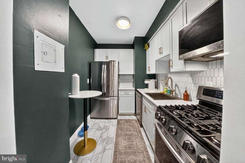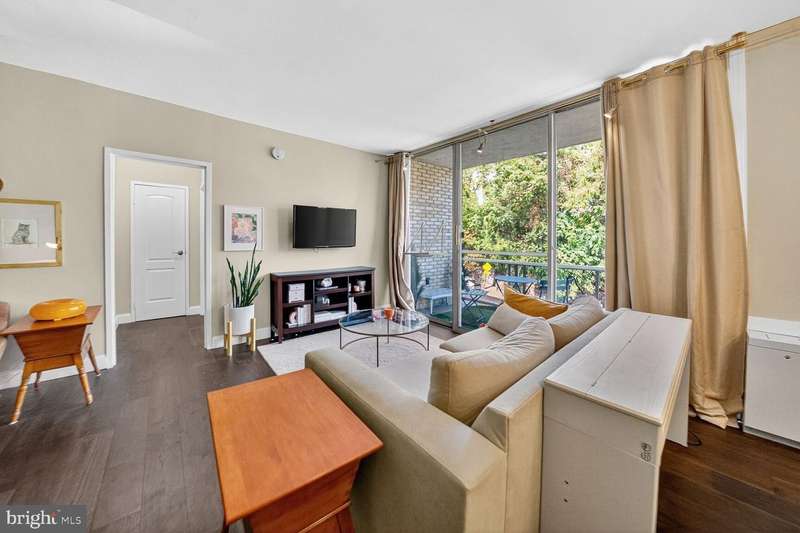 NOT A FIRST FLOOR ! This is one gorgeous fully renovated 812 sq ft condo with pleasant green views of trees and Porter street on the quiet back side of the building! Wonderful layout with nice entry foyer leading to a large spacious living room with sliders to a huge balcony and a dedicated dining space off the fully updated kitchen. Large and bright bedroom with good closet space and a clean newly renovated hall bath. Other fine features include warm wide plank flooring, an open lay out, high ceilings, a chef's kitchen and a location to dream about! Literally steps to a multitude of shops, restaurants, the metro, & so much more! Condo fee includes all utilities and the owner tells me she parks on Porter street which is not zoned for parking and walks right into the building! Priced to sell so don't delay!
