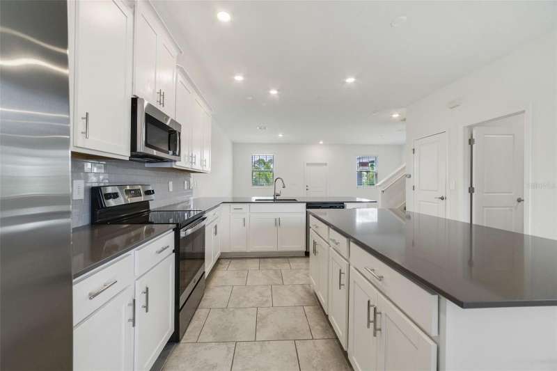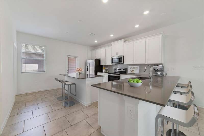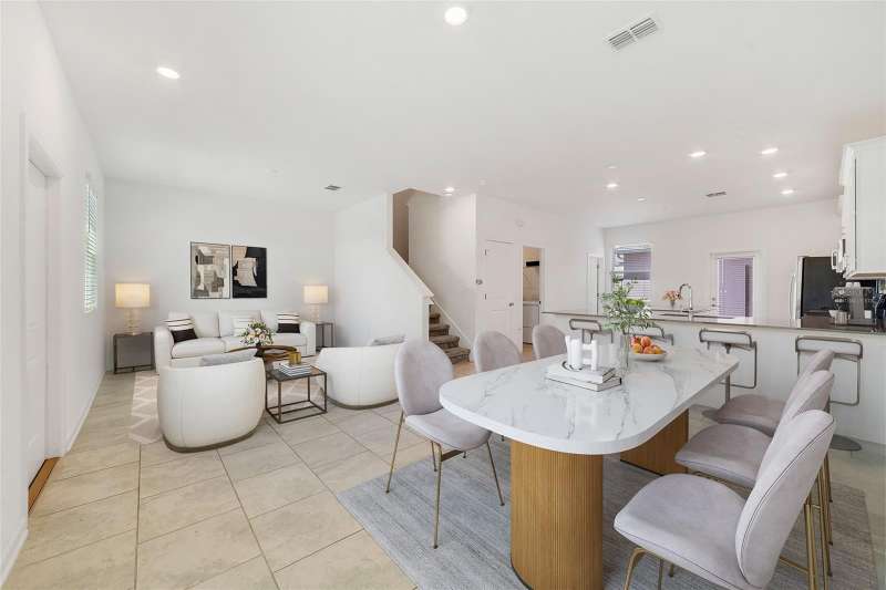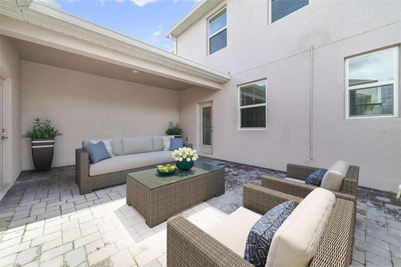 One or more photo(s) has been virtually staged. !! Ask about a lender provided RATE BUY-DOWN CREDIT on this home !! Seller may consider buyer concessions if made in an offer !! Built in 2023 and beautifully maintained, this MOVE IN READY townhome in the desirable Tohoqua community of Kissimmee combines modern comfort with everyday convenience! Offering fantastic curb appeal – each home has a unique exterior style – you will appreciate LOW MAINTENANCE LIVING in a friendly, AMENITY RICH area. Inside, the OPEN CONCEPT main floor awaits with all TILE FLOORING, an abundance of natural light, and field/green space views from the front. The chef’s kitchen is a standout: think a sleek modern color palette, crown molding topped cabinetry, must have STAINLESS STEEL APPLIANCES, an undermount sink, subway tile backsplash, and recessed lighting. You will love the large center ISLAND with bar seating, a separate breakfast bar, and direct access to the private courtyard patio – perfect for morning coffee or weekend grilling. The spacious pantry cleverly extends under the stairs, and a generously sized laundry room offers additional storage. Upstairs, you will find cozy carpeted bedrooms, including a bright and inviting PRIMARY SUITE that overlooks the green space. Your tranquil retreat features a sizable WALK-IN CLOSET and private en-suite bath for the perfect way to start and end your day. Additional highlights of this home include; a 2-CAR REAR FACING GARAGE with attic storage, a well-maintened exterior handled by the HOA (including the roof), and thoughtfully designed community features like a clubhouse, POOL, playground, tennis courts, and walking trails. Ideally located off Neptune Road with easy access to the Florida Turnpike and US-192, you are just a short drive from world-class THEME PARKS, attractions, Lake Toho and East Lake Toho for recreation, and a wide variety of shopping and dining options. The Orlando International Airport is also only minutes away. Whether you are seeking a full time residence or a lock and leave vacation home close to everything Central Florida has to offer, this home checks all the boxes. Call today to schedule a tour!