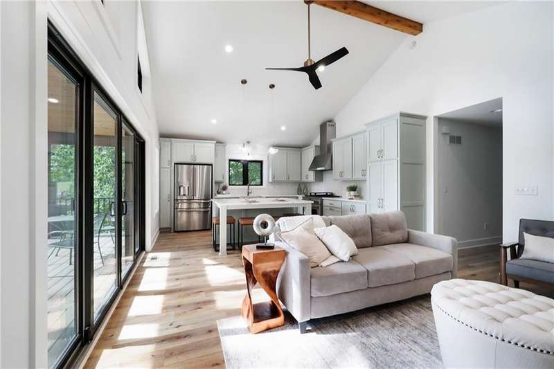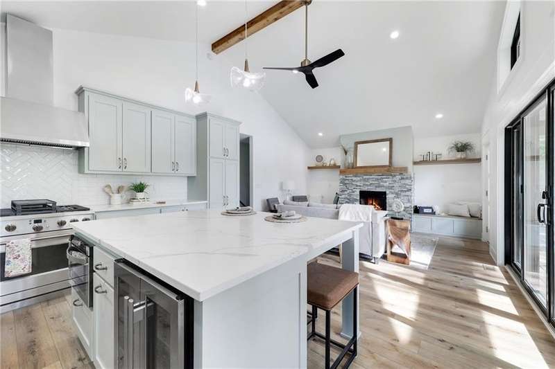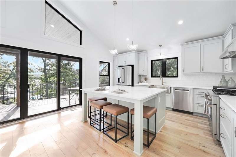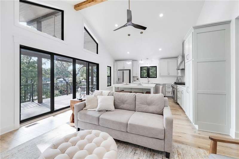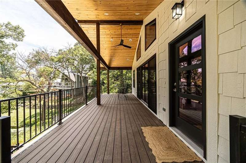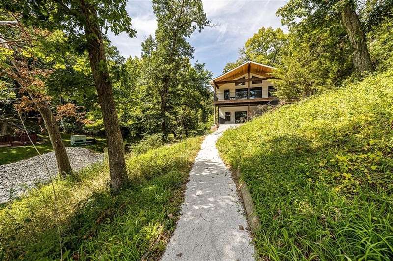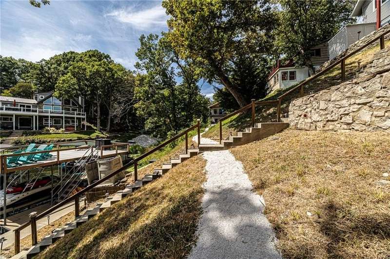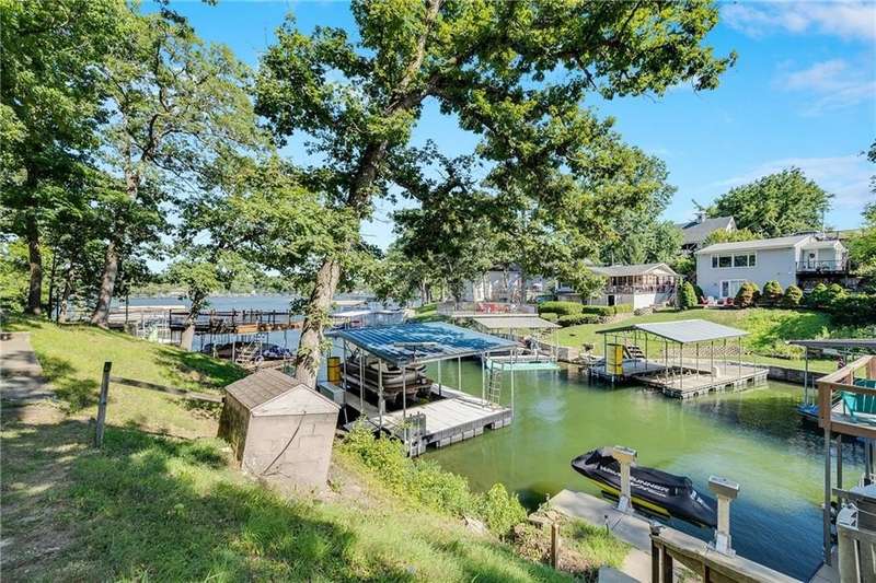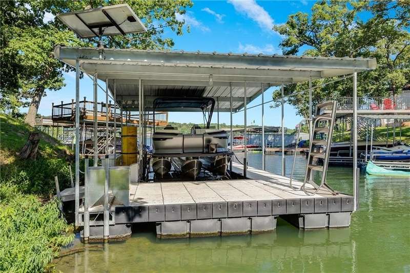 Can you say MOTIVATED? Sellers have now SLASHED the price of this pristine home by a total of 125k!! You can't beat this steal of a deal on Lake Lotawana. The sellers painstakingly built this beauty from the ground up, but have found their dream ACREAGE now and need to sell. Situated on 3.5 lots and the ONLY home facing the water in the coveted Broken Arrow cove, this private property boasts breathtaking views from every vantage point. With a wrap around covered deck AND covered patio below, entertain while surrounded by lakeside serenity w/both water & wooded views. Phenomenal interior finishes throughout. Kitchen features high end Café fridge & 6 burner gas stove w/stainless WiFi hood, wine fridge, built-in microwave drawer, dishwasher & custom soft closing cabinets. Under cabinet lighting illuminates the luxurious countertops & abundant enameled cabinetry, including a spacious pantry w/pull out drawers. The large center island was designed specifically w/ dining in mind, and main level entertaining is a delight w/open concept living/dining design. The vaulted ceiling w/ wood beams adds drama while the stacked stone fireplace flanked by built-in bench storage grounds the space. Take entertaining outdoors by simply stepping out the telescoping glass doors to enjoy al fresco dining on the large covered composite deck overlooking the lake. The main level also features a cozy pocket office & Owner's bedroom w/gorgeous trim wall & an ensuite w/stunning walk-in shower, bidet toilet & walk-in closet. Downstairs you'll find 2 additional bedrooms, a spacious rec room which walks out to a large covered patio with brand new sundeck & attractive stone wall. Spa-like full bathroom w/soaker tub & custom tile-to-ceiling shower. No cold feet w/radiant heat below the luxury vinyl plank flooring. Smart fans. BRAND NEW solar powered boat dock & lift PLUS new 3k dock box for all your toys! Option to purchase the next-to-new Manitou Tri-Toon boat, too! Lake living at its finest-WOW!