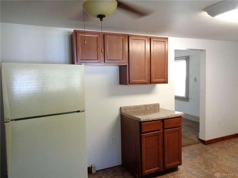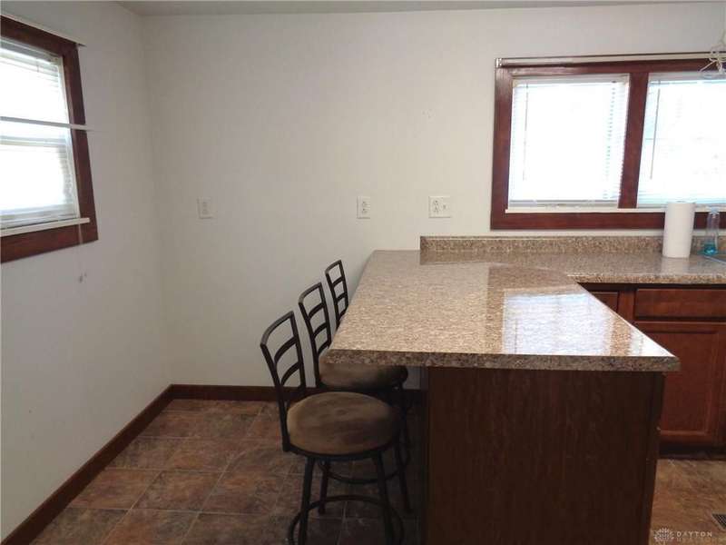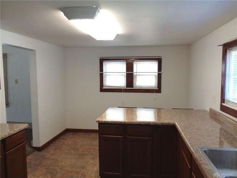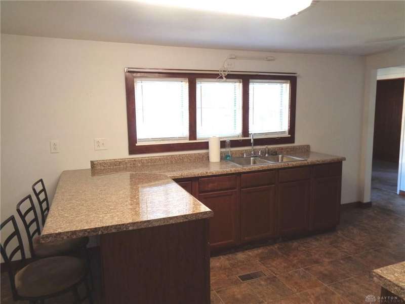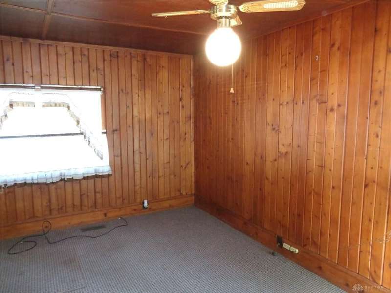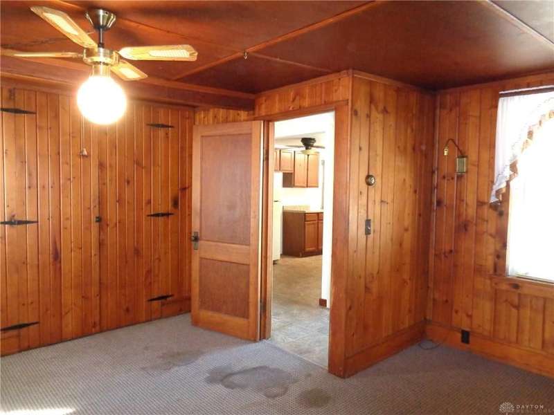 Hard to find 1-story, 3-bedroom 2 bath home in Eaton! Enjoy the covered front porch and brick patio in the back. Huge eat-in kitchen with breakfast bar, plus separate dining room. Laundry conveniently located off kitchen. Third bedroom has its own entrance so there';s options there. Large 2 car detached garage with room for storage and shop. The real deal is out back behind the garage. A peaceful serene setting that is all yours. Put a swing, a glider or a chair. You will never know you';re in town. Feels like the country. This home needs a little TLC and is being sold as-is…but the price is reflective. Call me for your private tour today!