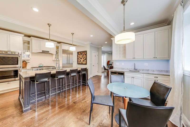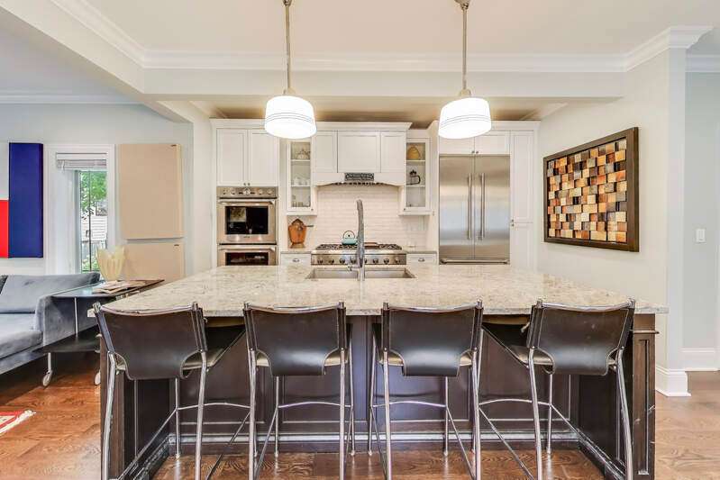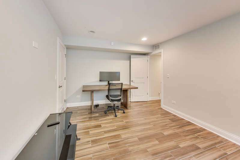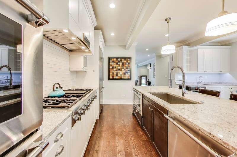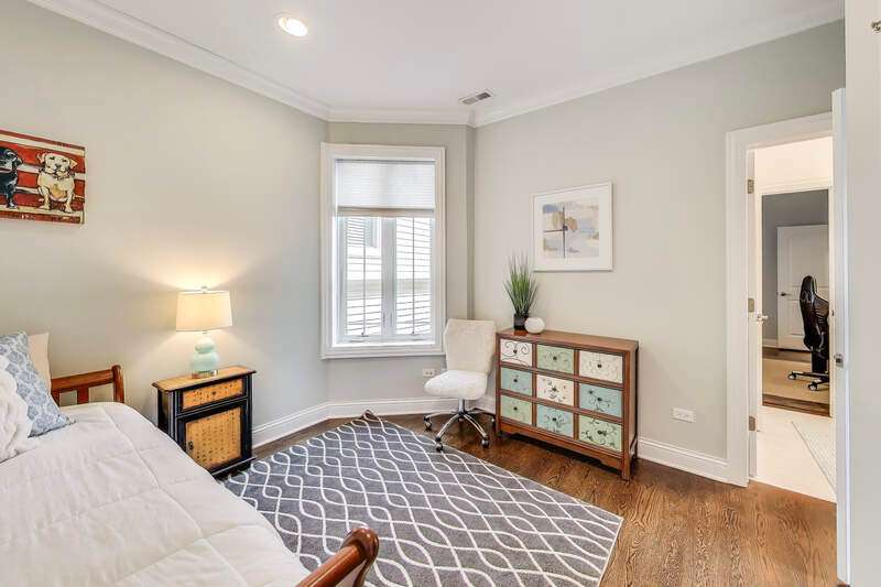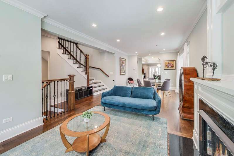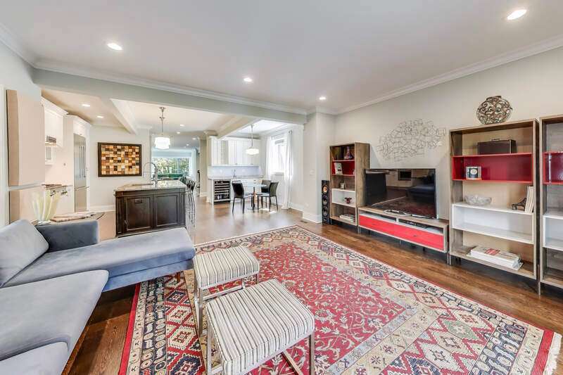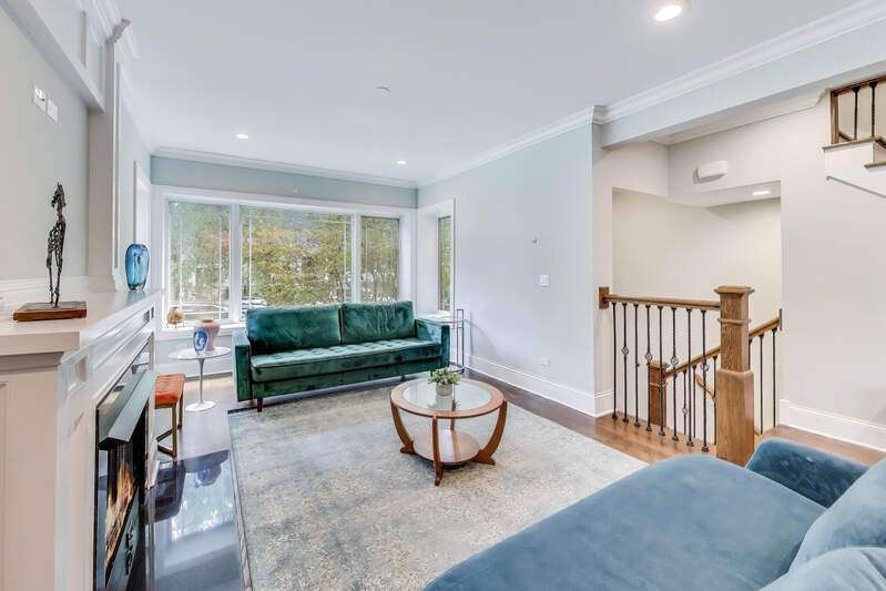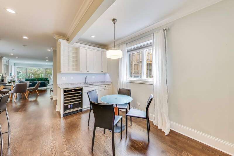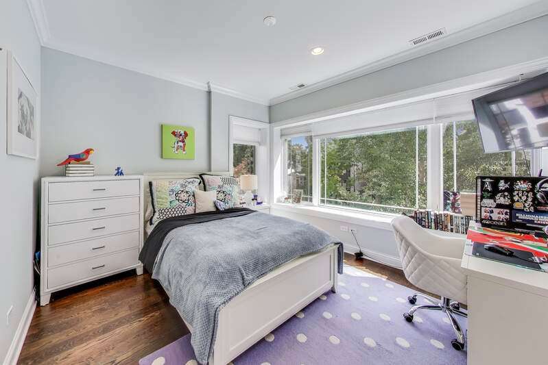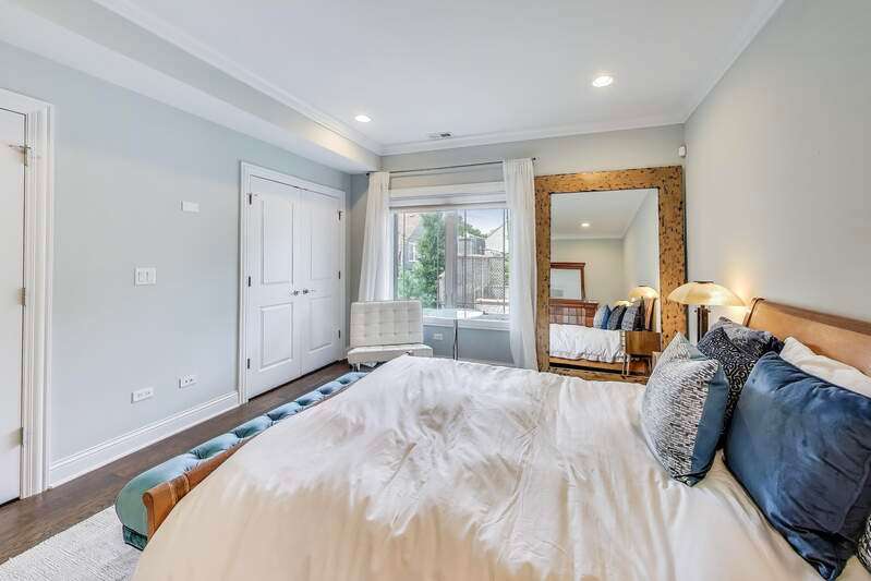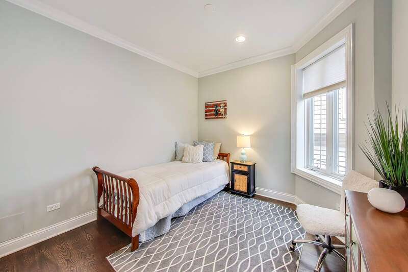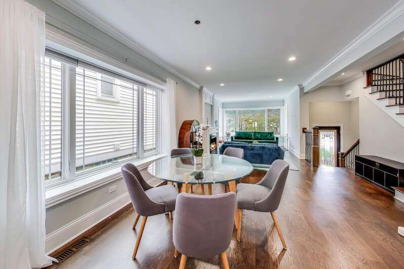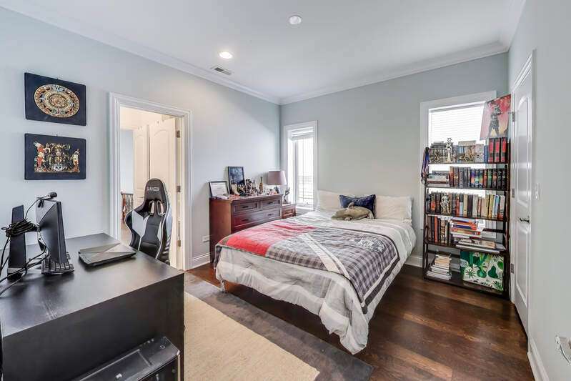 Spacious 6-Bedroom Roscoe Village Home with 4 Bedrooms Up in Coveted Audubon School District! Built in 2016, this 4,000+ sq ft residence combines modern elegance with thoughtful family design. The open main level boasts a chef's kitchen with Thermador appliances, quartz counters, and a generous island, flowing to a sun-filled family room with fireplace and access to a private deck and fenced yard. Upstairs, all four bedrooms are conveniently located together, including a serene primary suite with spa-inspired bath and walk-in closet. The lower level offers a large recreation room, wet bar, media room, two additional bedrooms, and dual laundry centers. Enjoy a rooftop deck over the 2-car garage and an unbeatable location near Roscoe Village's shops, dining, parks, and Brown Line.