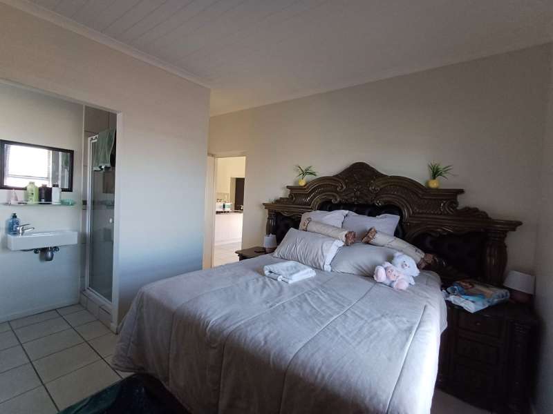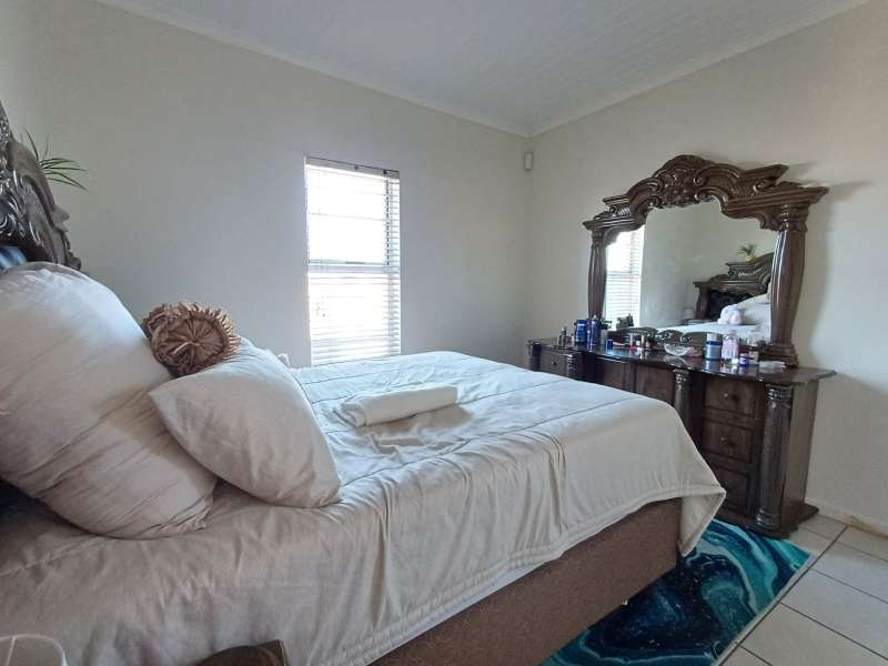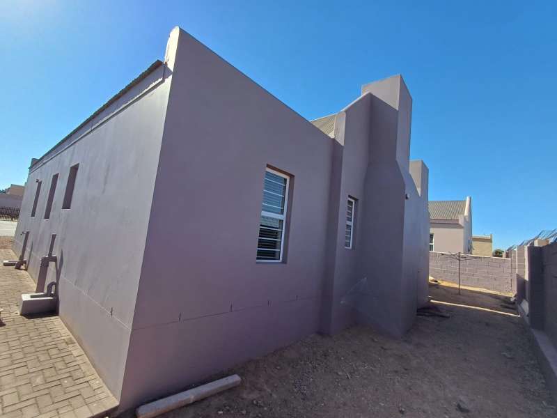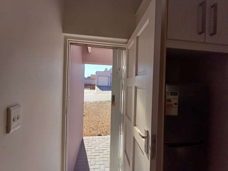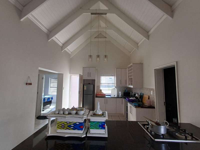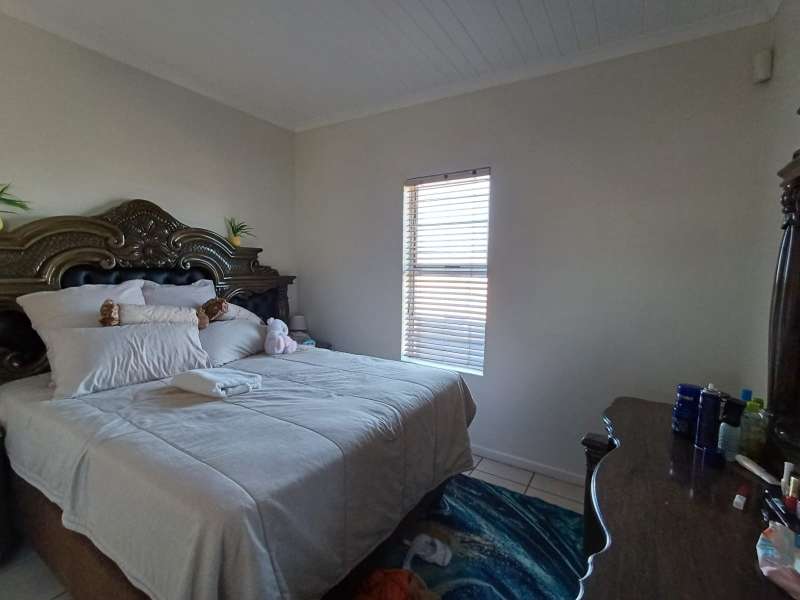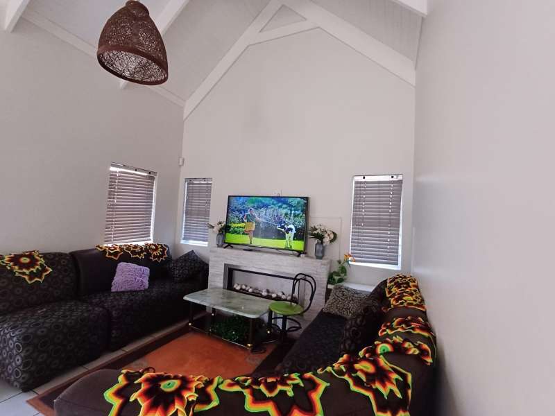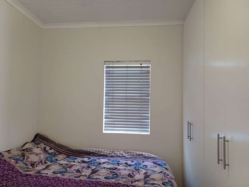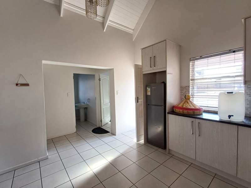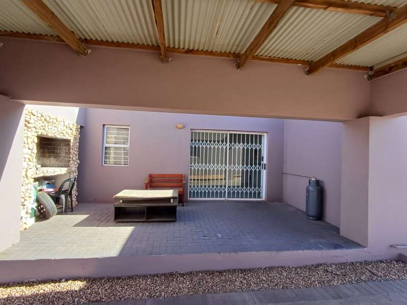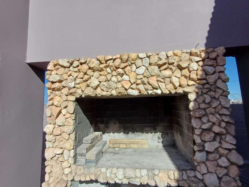 It is situated in a secure complex with gated access and fully walled around the complex. The house is in a cul-de-sac and are easily accessible from the entrance gate. From the front door you enter the house through the kitchen / open plan lounge area. On the right you have direct access to the single garage where there is a washing machine connection and geyser as well as extra cupboards for more storage space. The left-hand side of the kitchen is three bedrooms with built-in cupboards. The main bedroom is en-suite with a toilet, basin and bath. Family bathroom consists of a shower, toilet, bath and basin. A glass sliding door with security gate leads from the lounge to a small patio with an outside built-in braai. Burglar bars in front of all opening windows. Security gates in front of all doors leading to the outside. Built carport for extra vehicle parking.