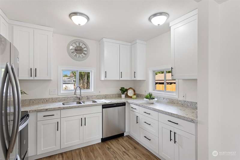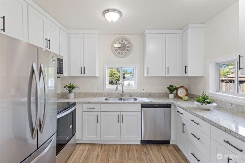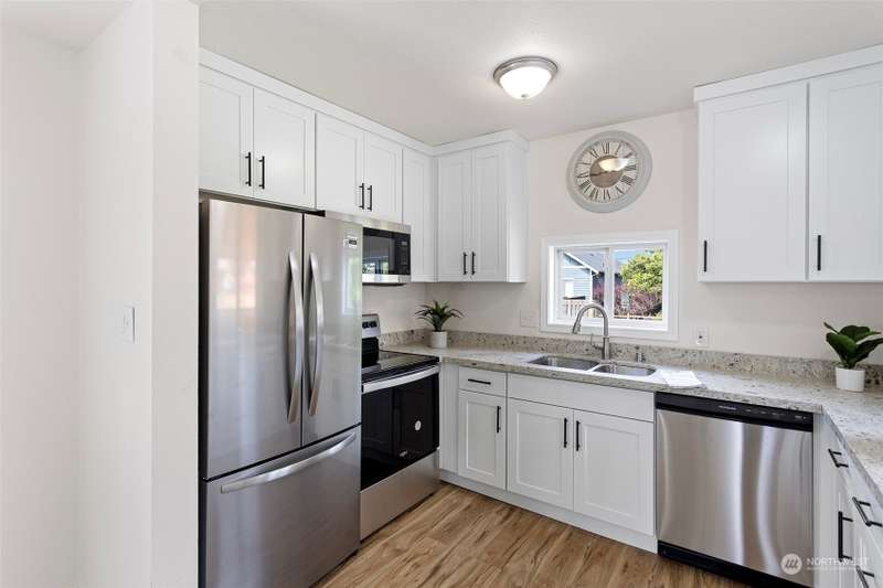 Beautiful remodeled 3 bedroom 1 and 3/4 bathroom home, featuring a freshly remodeled kitchen with new cabinets,new quartz countertops, new stainless-steel appliances, and more! Perfect for culinary enthusiasts' to work their magic! The home is freshly painted throughout and all new flooring ! Both bathrooms have been fully remodeled, this home is move-in ready, almost every surface has been touched! in addition to everything else there is a 1 year old furnace and a brand new hotwater tank! The home includes a large, detached garage with an attached shop, complete with electricity ideal for hobbies or extra storage. and a brand new driveway. A wonderful park across street and close to shopping and schools, you do not want miss this one!